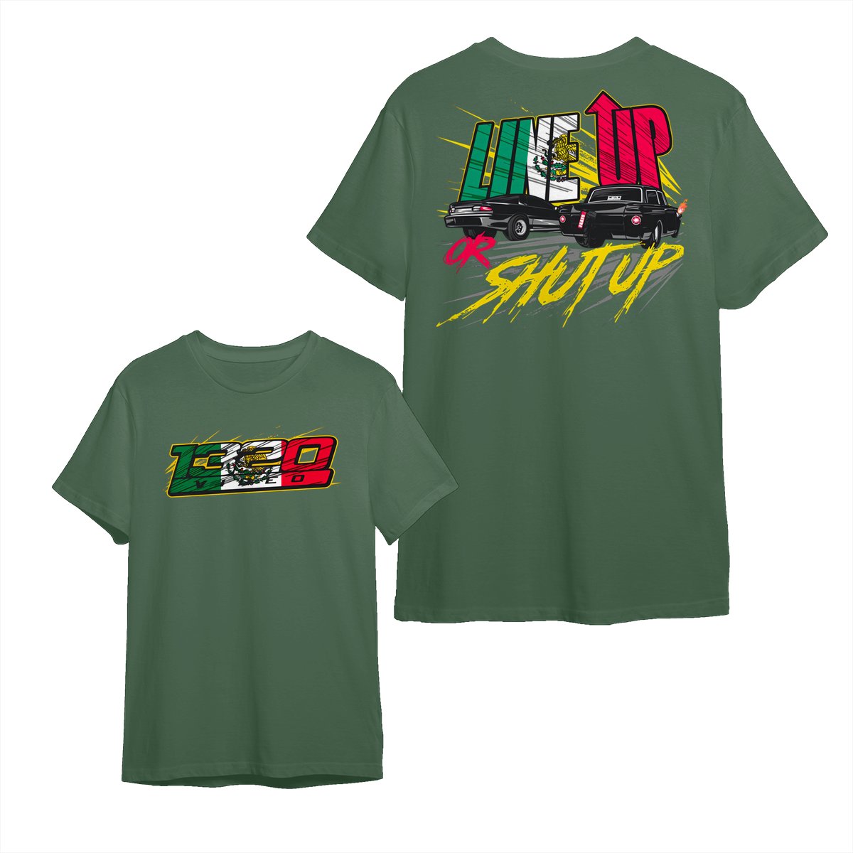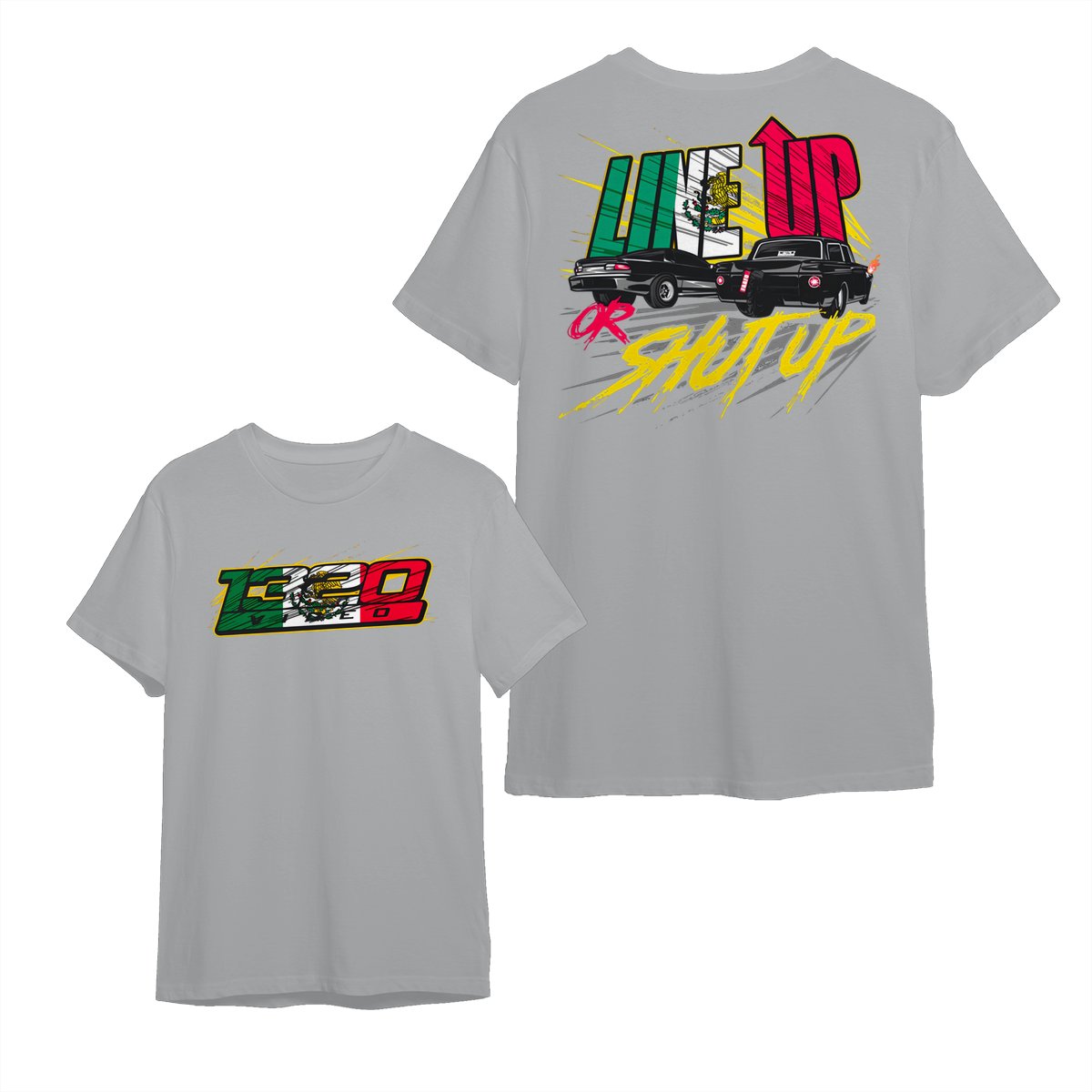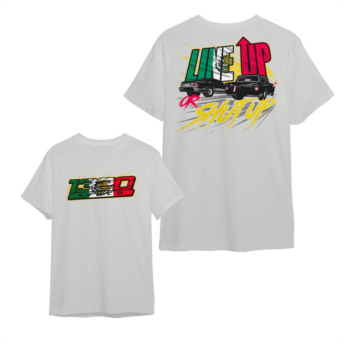 1320 VIDEO Live Up or Shut Up Graphic T-Shirt For Men For Women, Trendy Cotton Apparel Featuring Racing Cars and Mexican Flag Design, Casual Menswear Top, Perfect Gift For Car Enthusiasts and Motorsport Fans