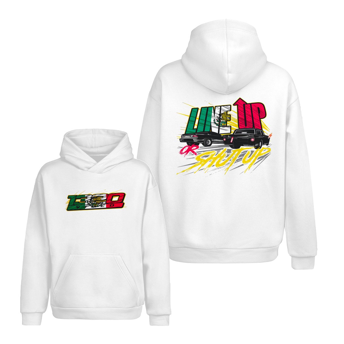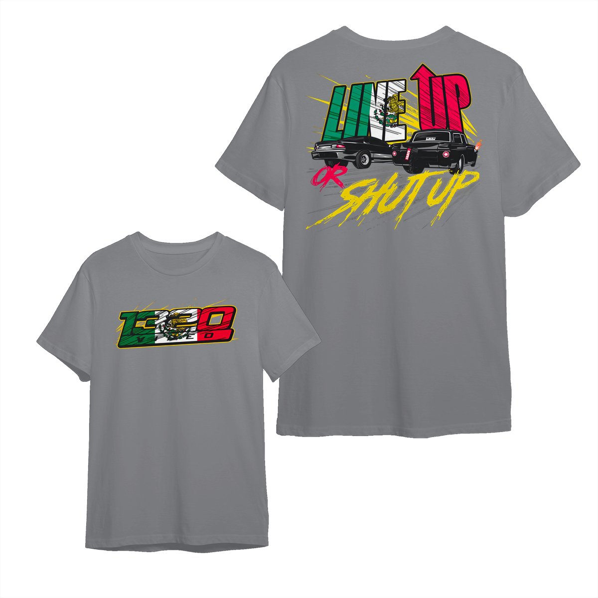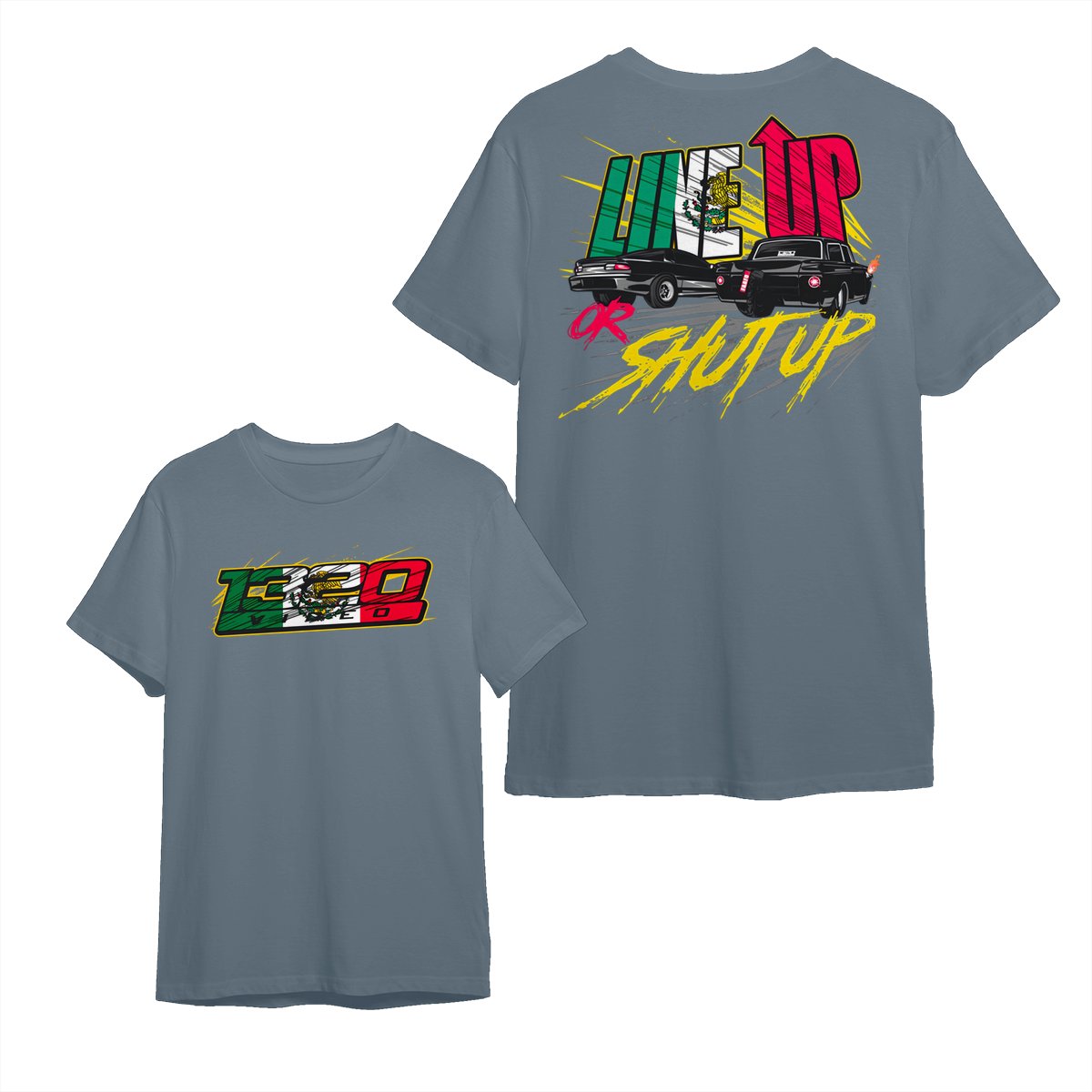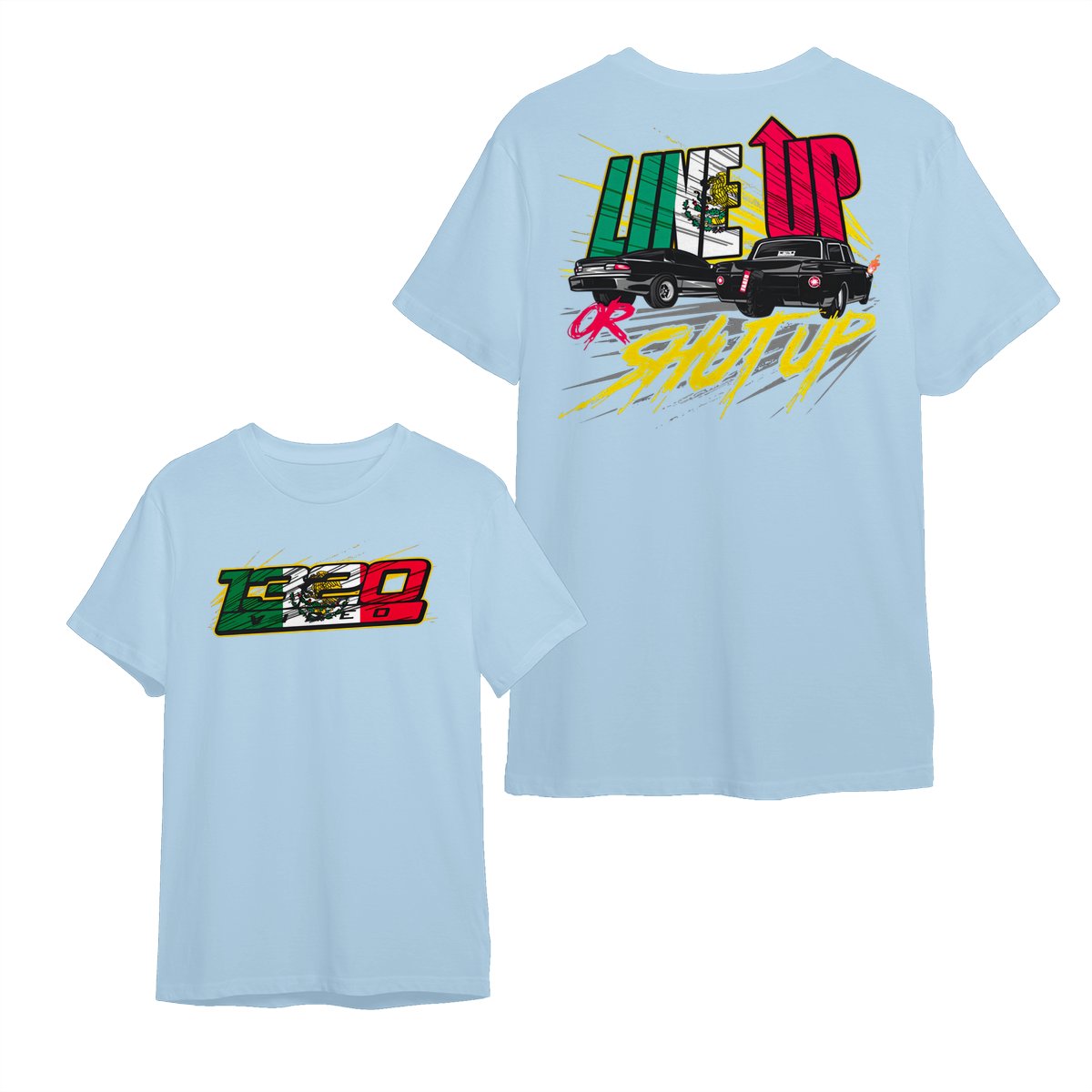 1320 VIDEO Live Up or Shut Up Graphic T-Shirt For Men For Women, Trendy Cotton Apparel Featuring Racing Cars and Mexican Flag Design, Casual Menswear Top, Perfect Gift For Car Enthusiasts and Motorsport Fans