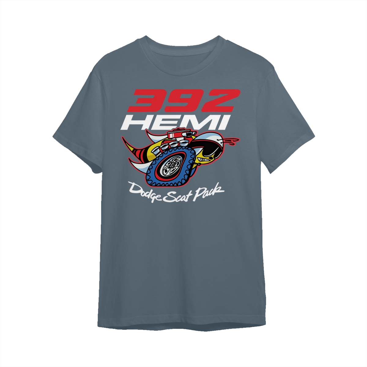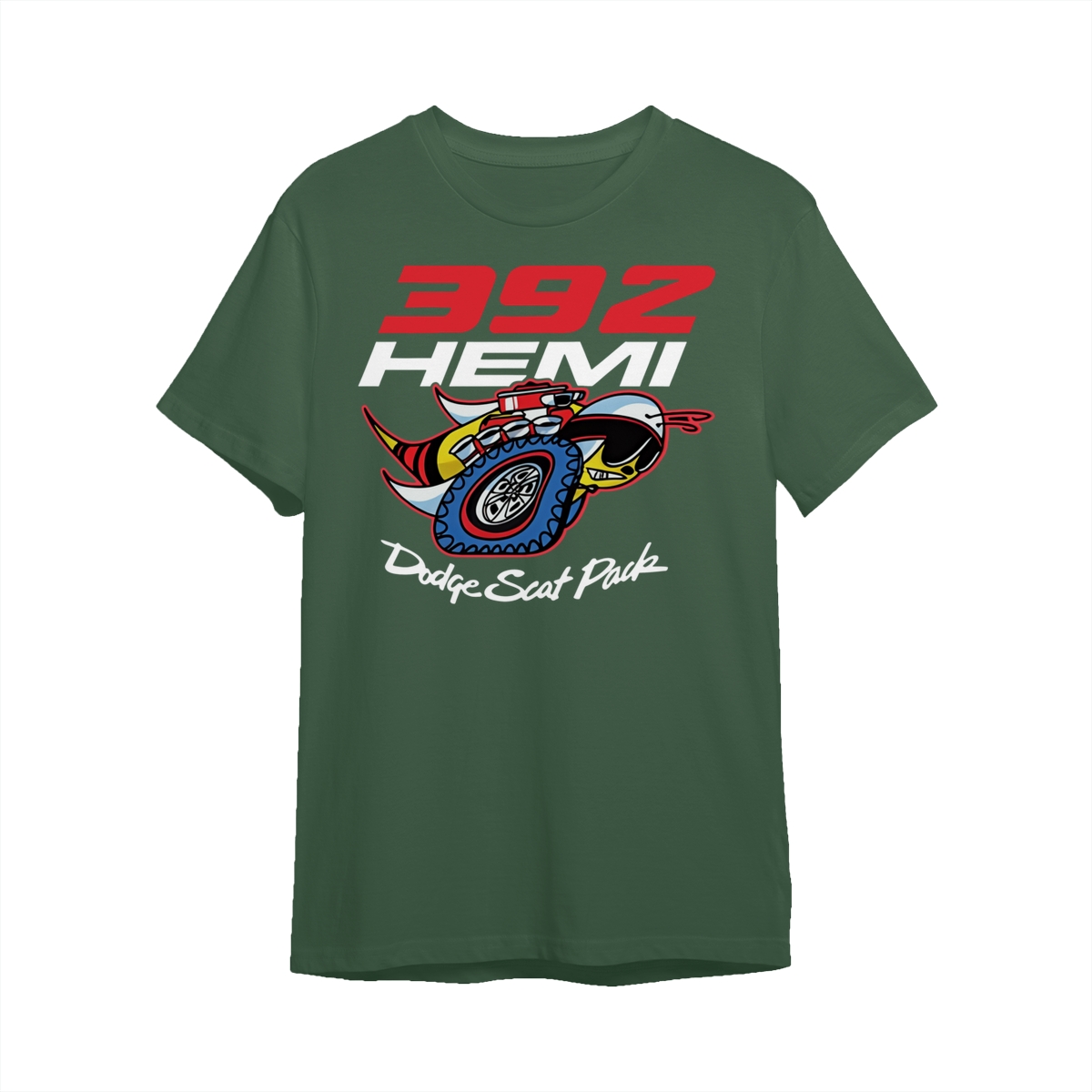 392 HEMI Dodge SCAT PACK T-Shirt – Round Neck Classic Cotton Tee for Muscle Car Fans, Menswear Unisex Top, Summer Outfit with Bold Auto Graphics