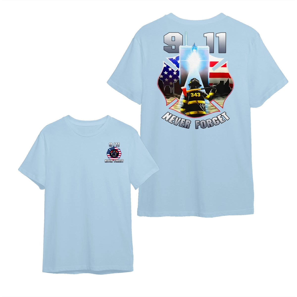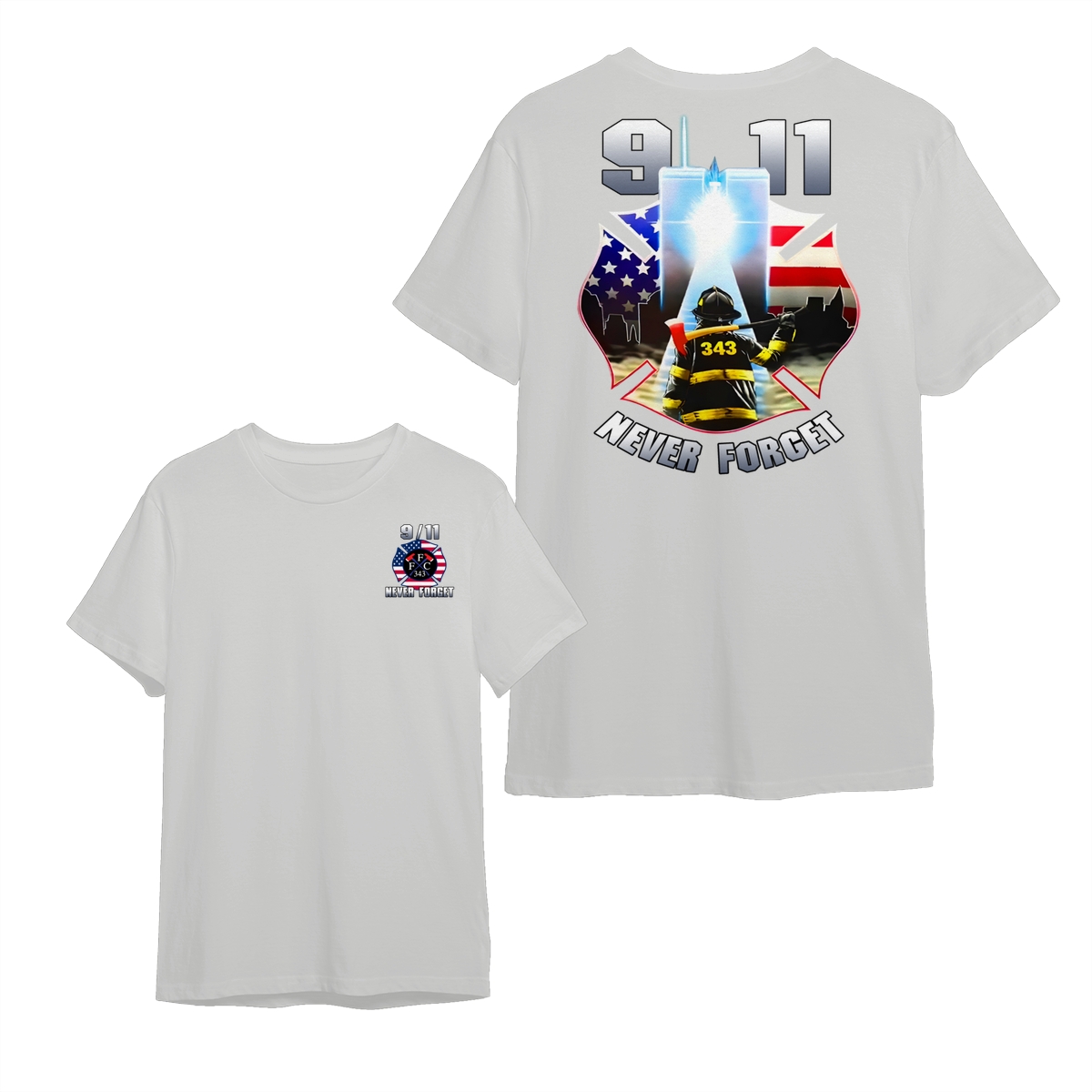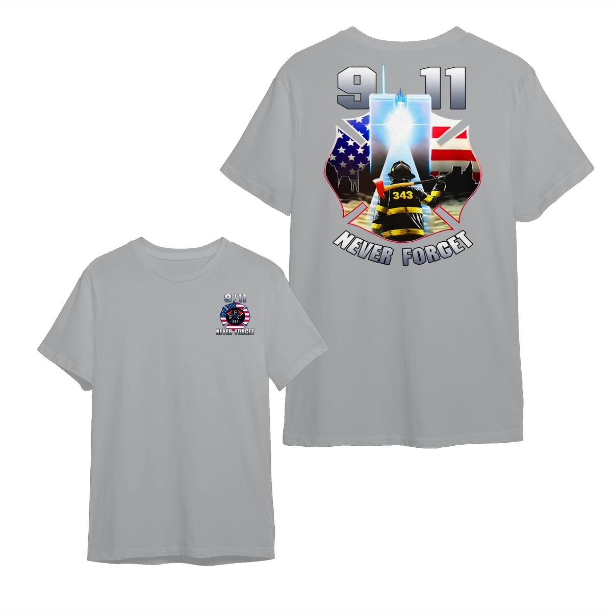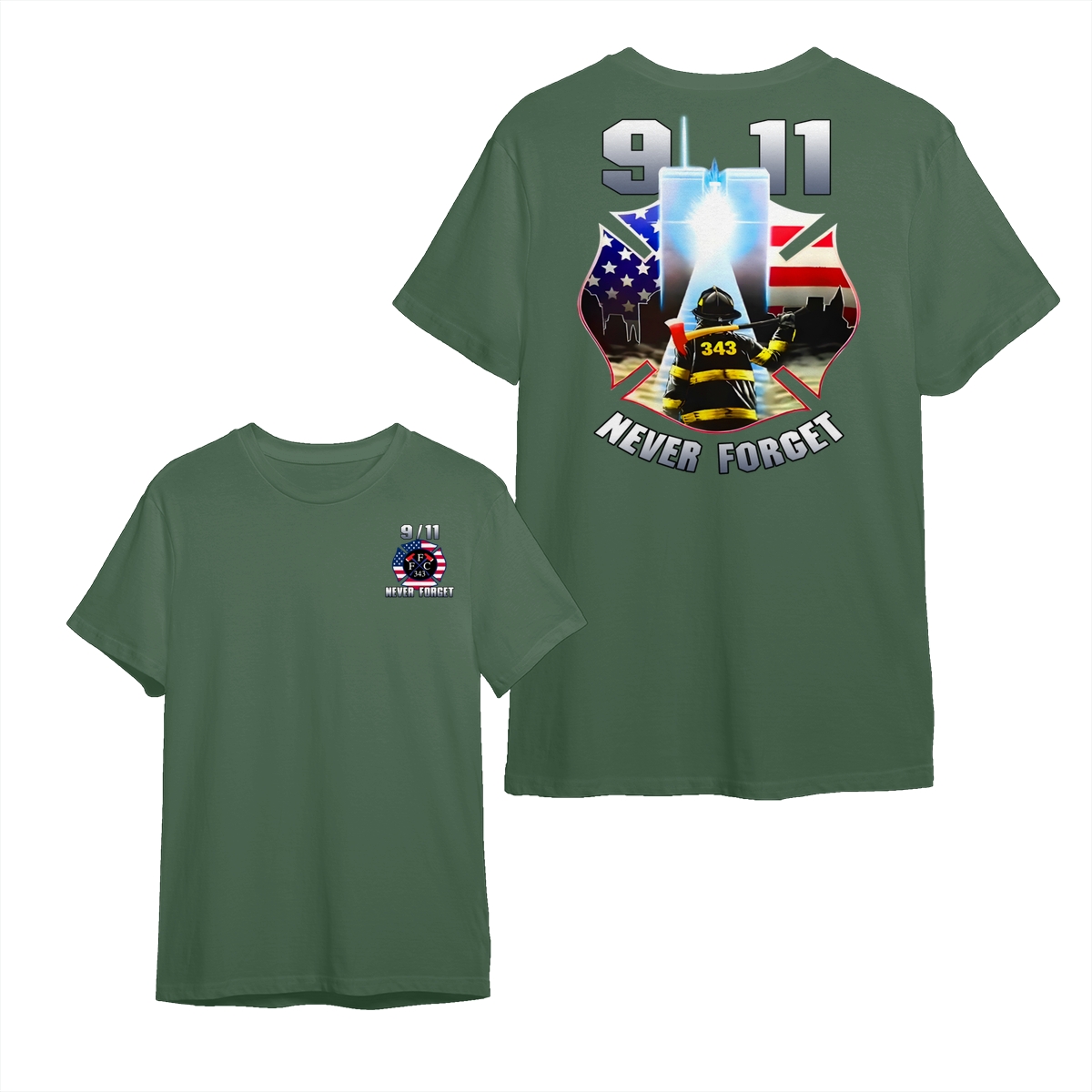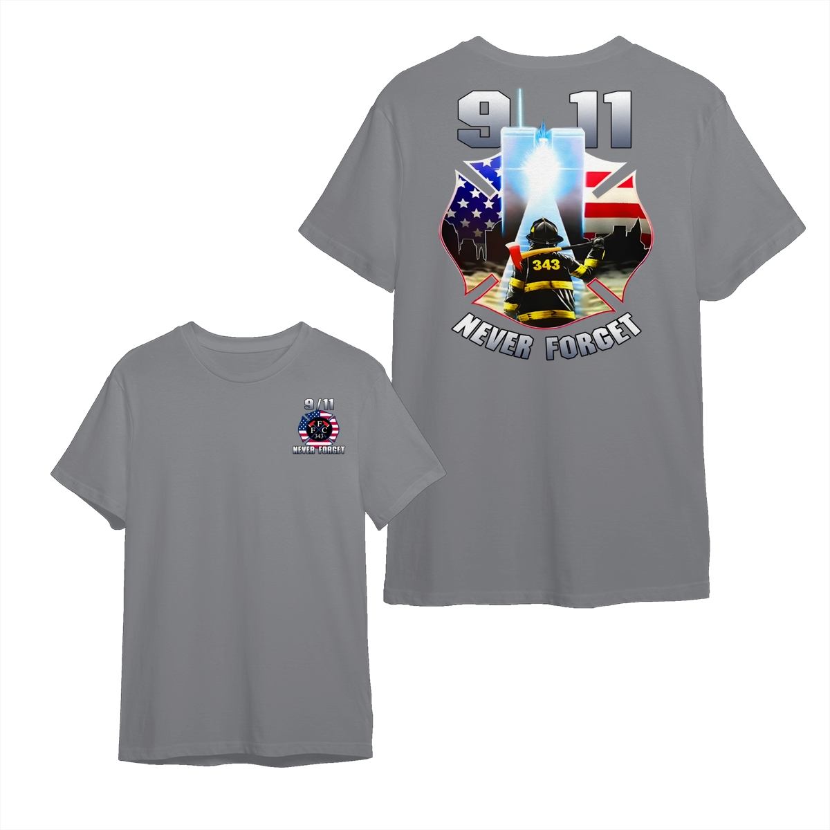 9/11 Never Forget Firefighter Memorial T-Shirt, 343 Heroes Tribute Tee, Classic Cotton Top, American Flag Shirt Gift for Men & Women, Firefighter Apparel