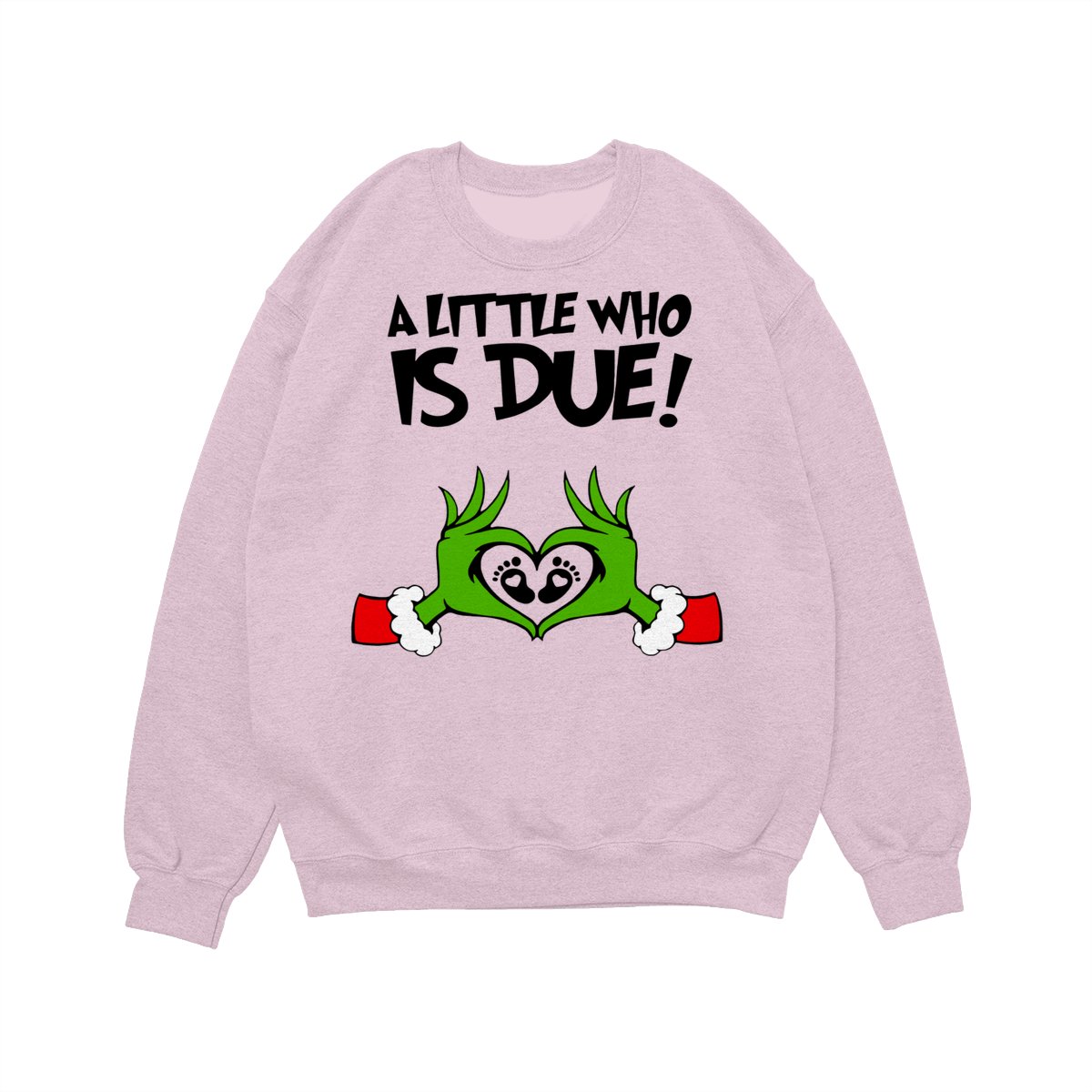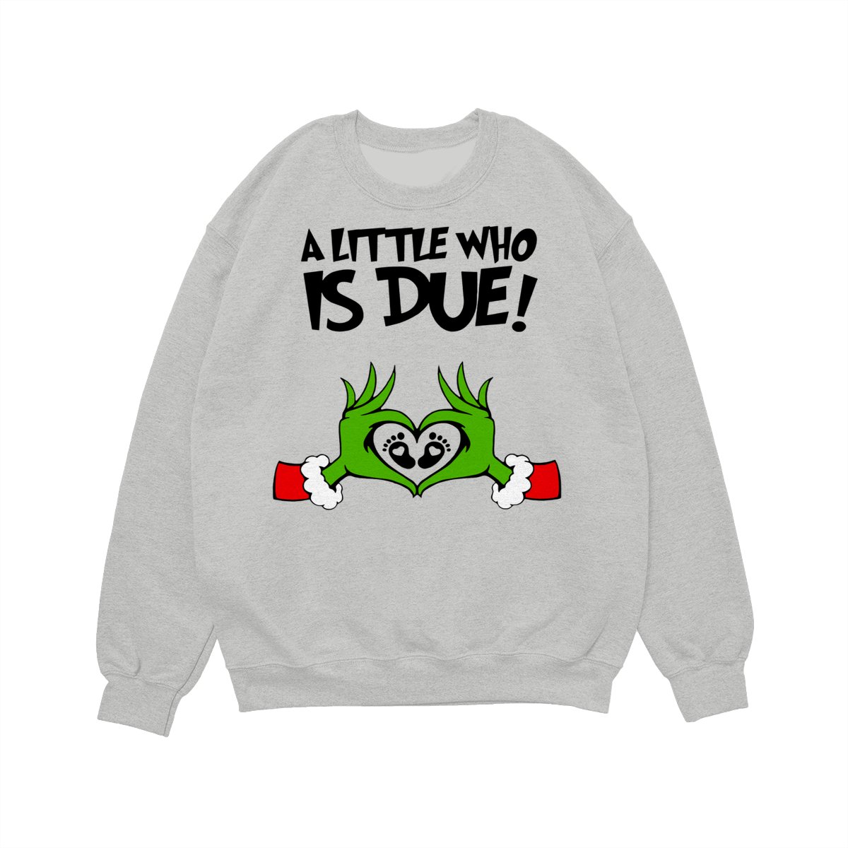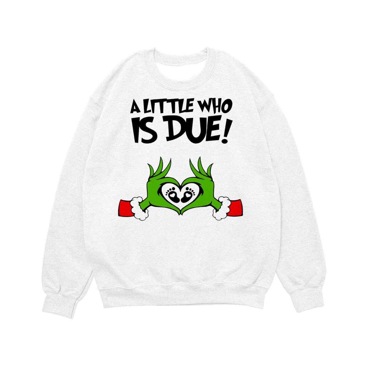 A Little Who Is Due Couple Sweatshirt, Christmas Pregnancy Reveal Sweatshirt, Mommy To Be and New Dad Matching Sweatshirt, Holiday Maternity Sweatshirt, Baby Reveal Xmas Party Outfit