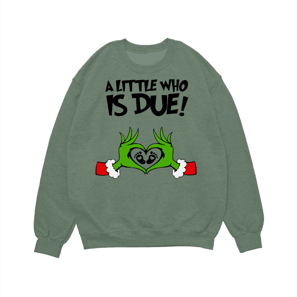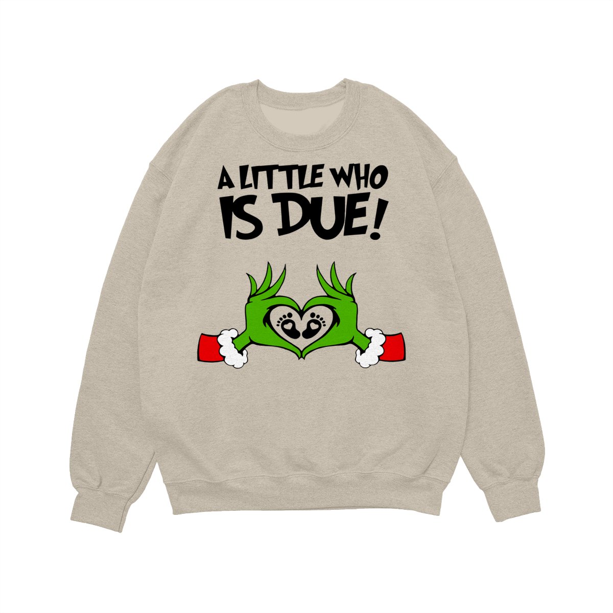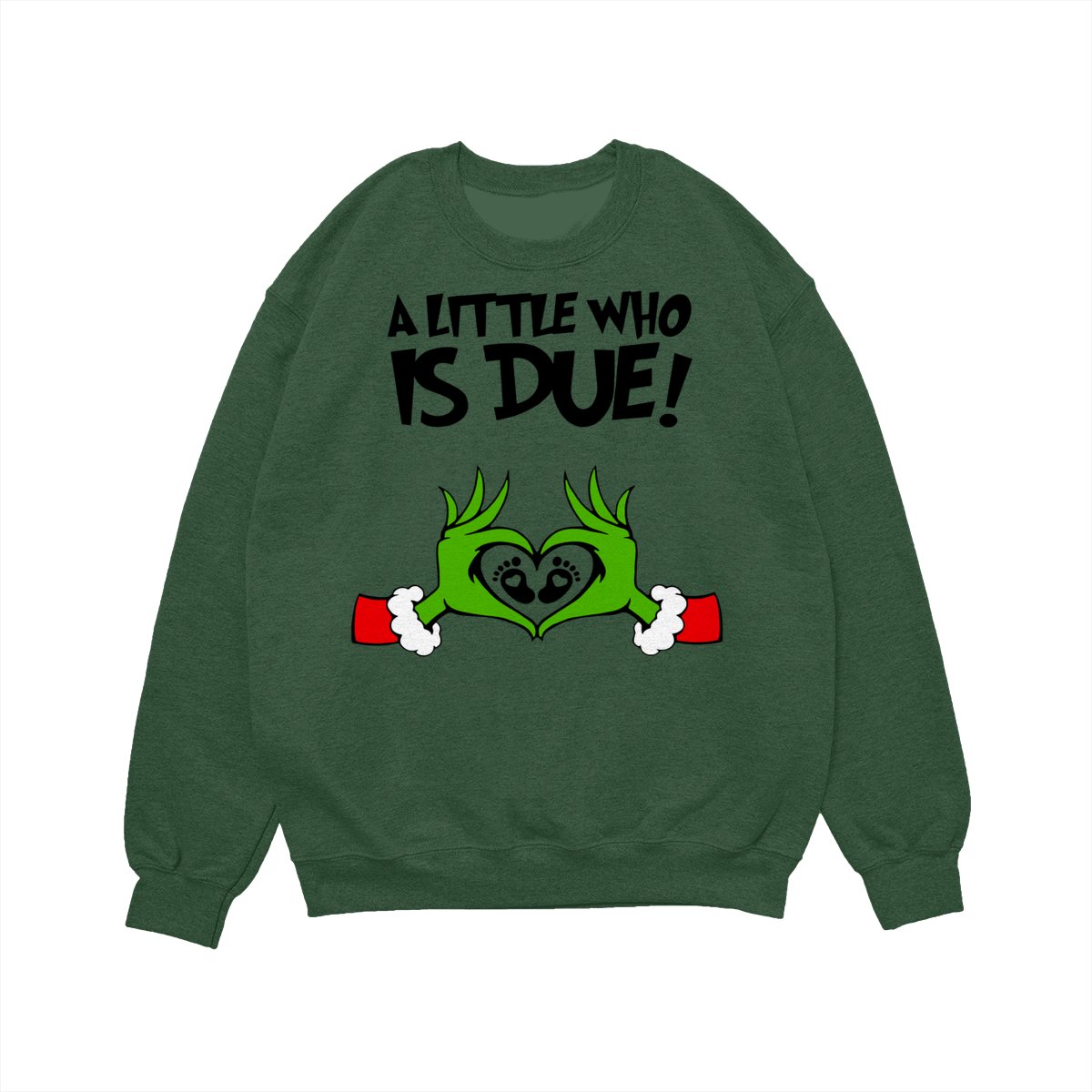 A Little Who Is Due Couple Sweatshirt, Christmas Pregnancy Reveal Sweatshirt, Mommy To Be and New Dad Matching Sweatshirt, Holiday Maternity Sweatshirt, Baby Reveal Xmas Party Outfit