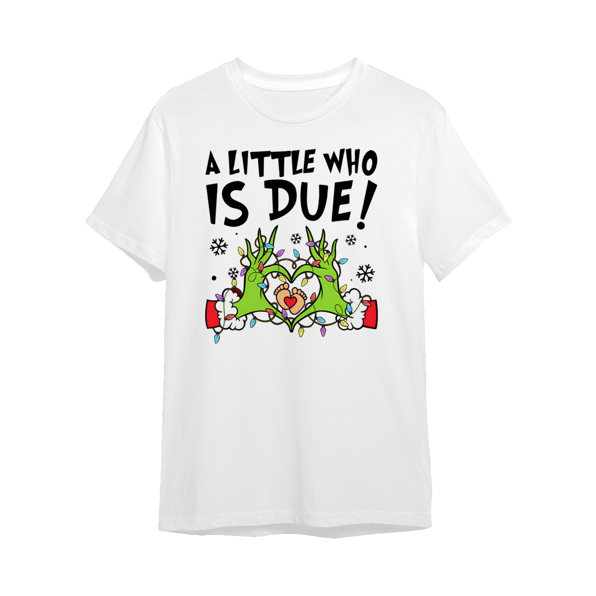 A Little Who Is Due Grinc Christmas T-Shirt, Sweatshirt, Hoodie – Merry And Pregnant T-shirt, Christmas Pregnancy Tee, Baby Announcement Shirt, New Mom Gift