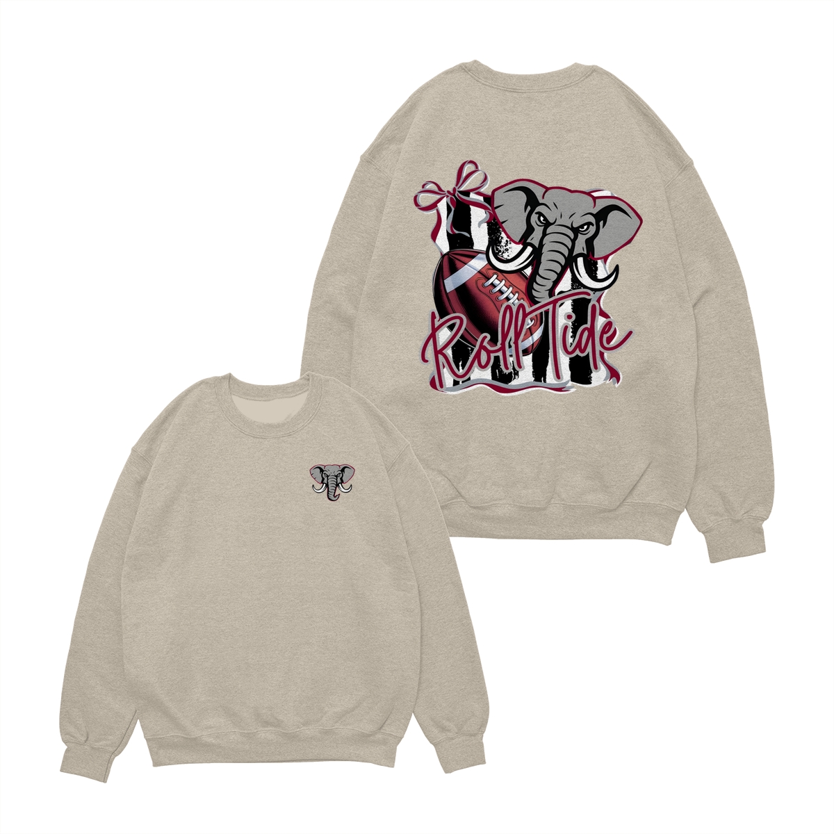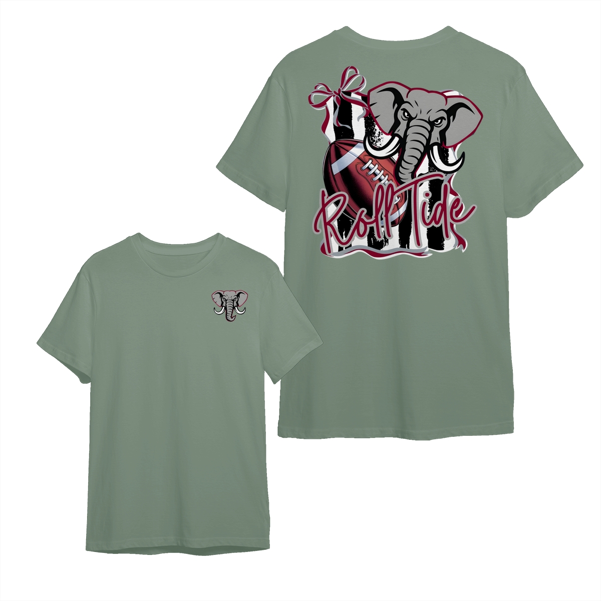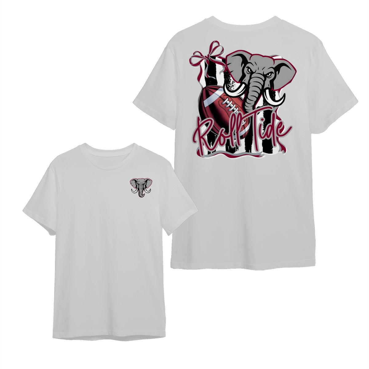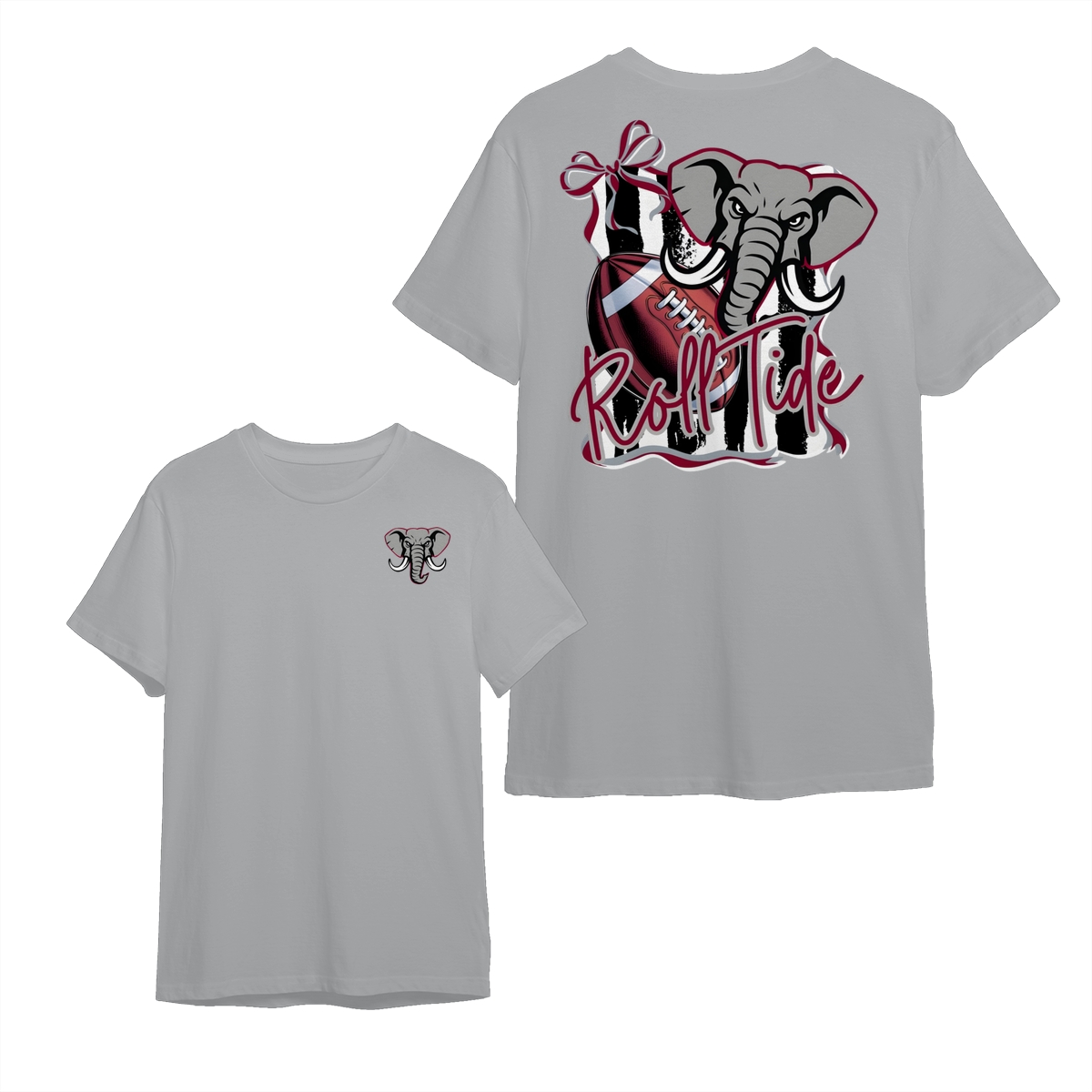 Alabama Roll Tide Football, Crimson Bama T-Shirt, Trending Coquette Bow Football, Alabama Design Print Alabama Game Day Tee, Football Gift For Sport Fans