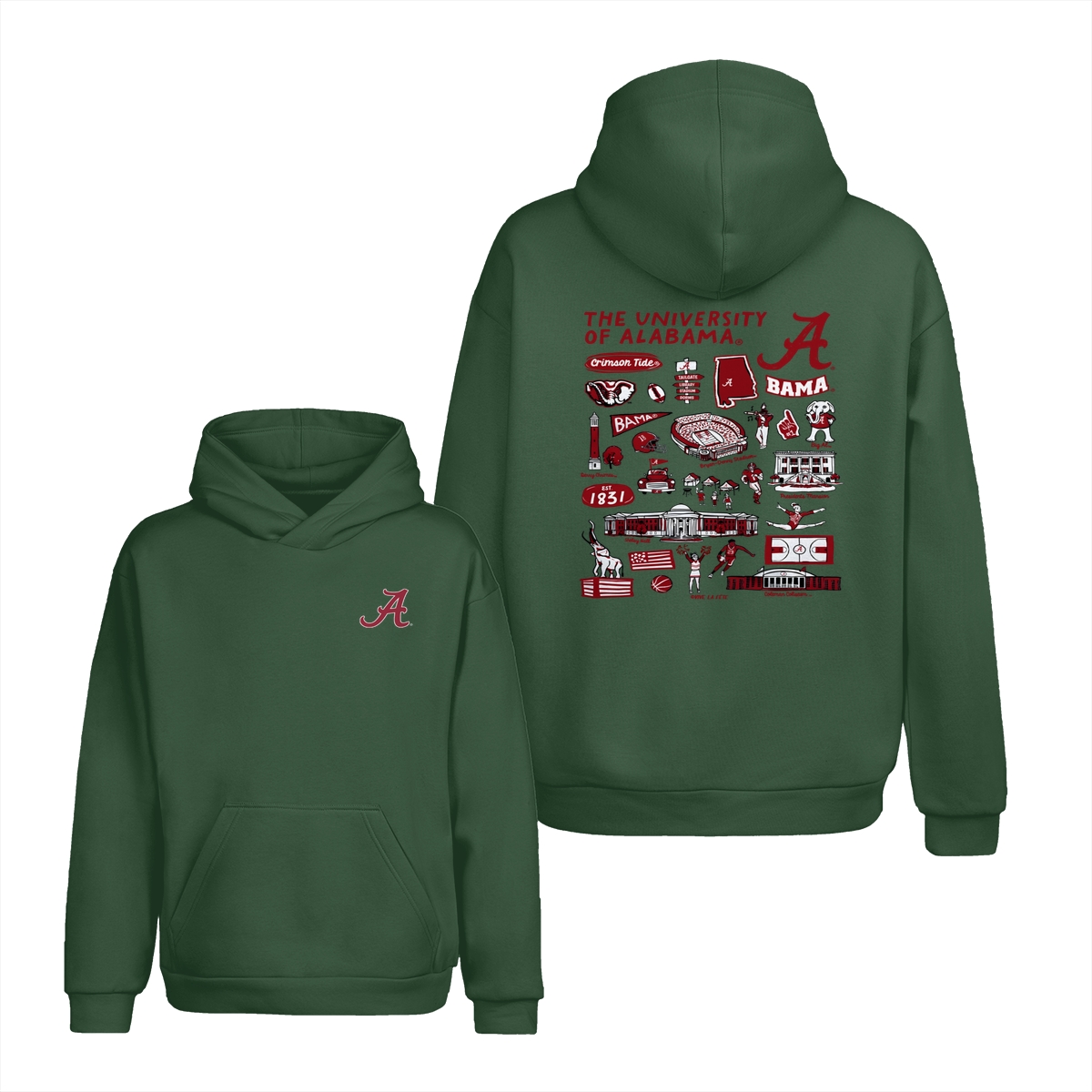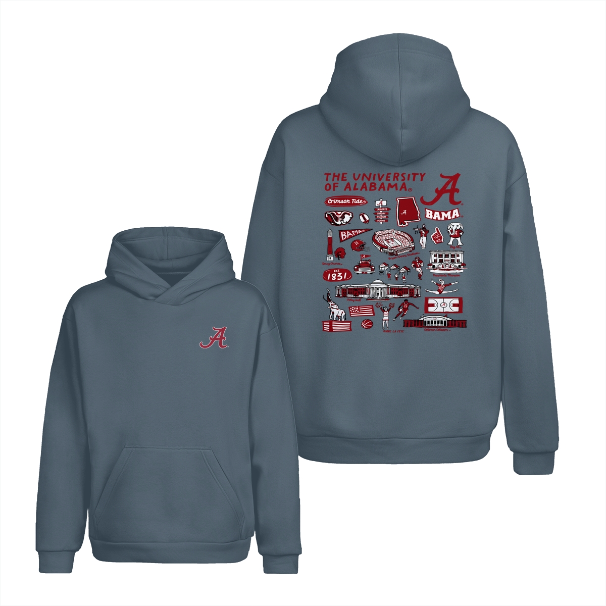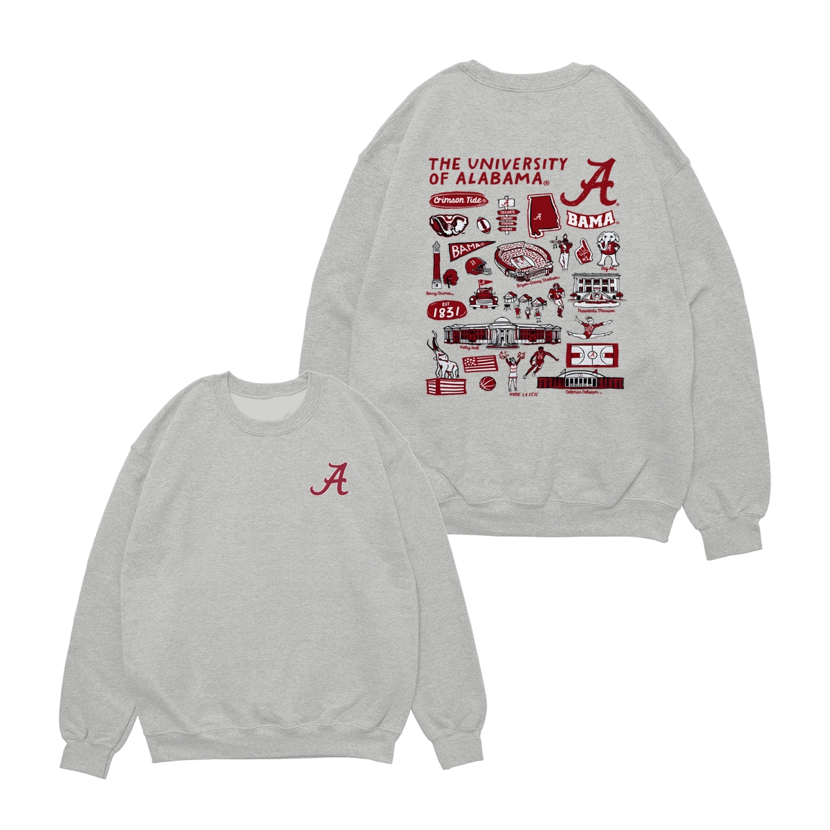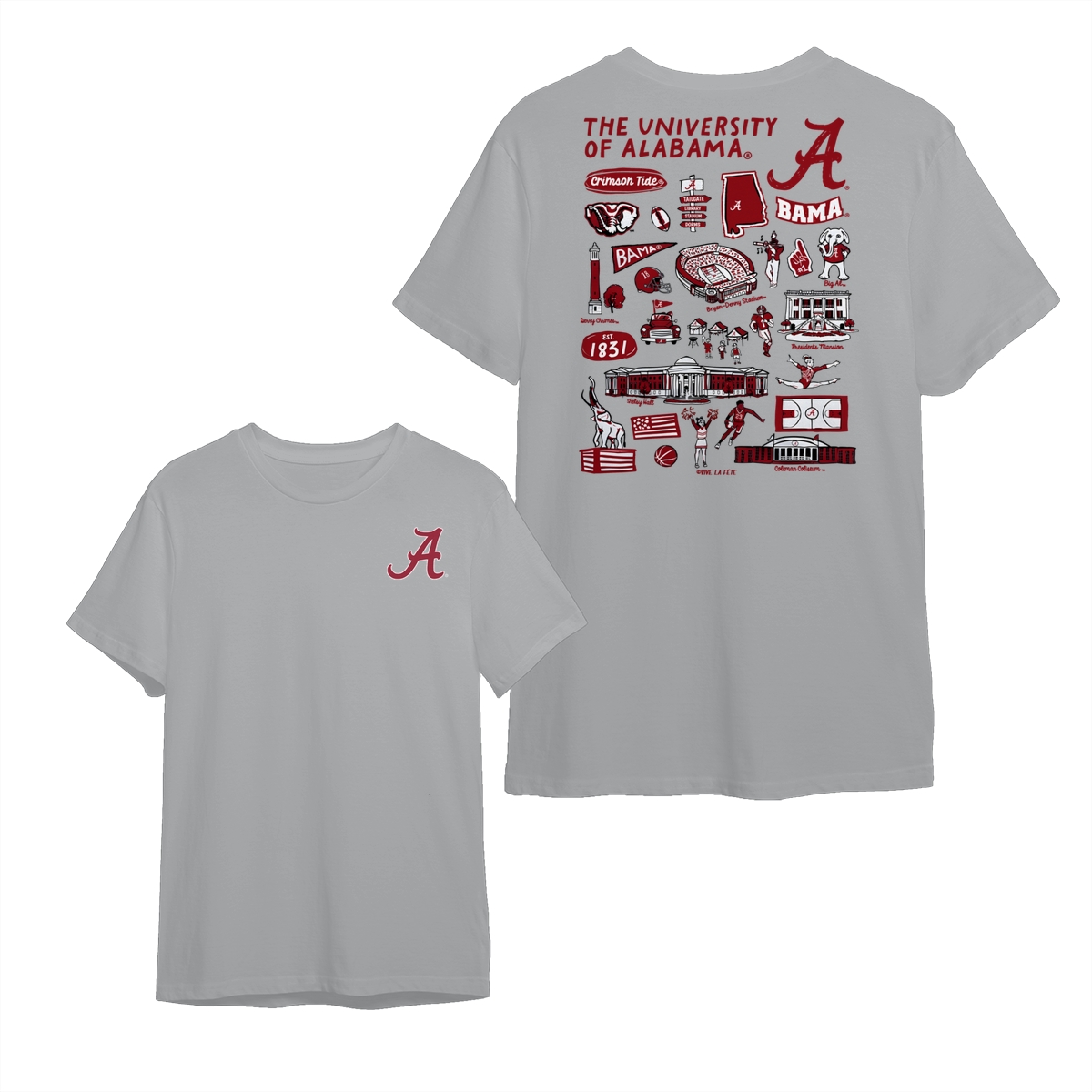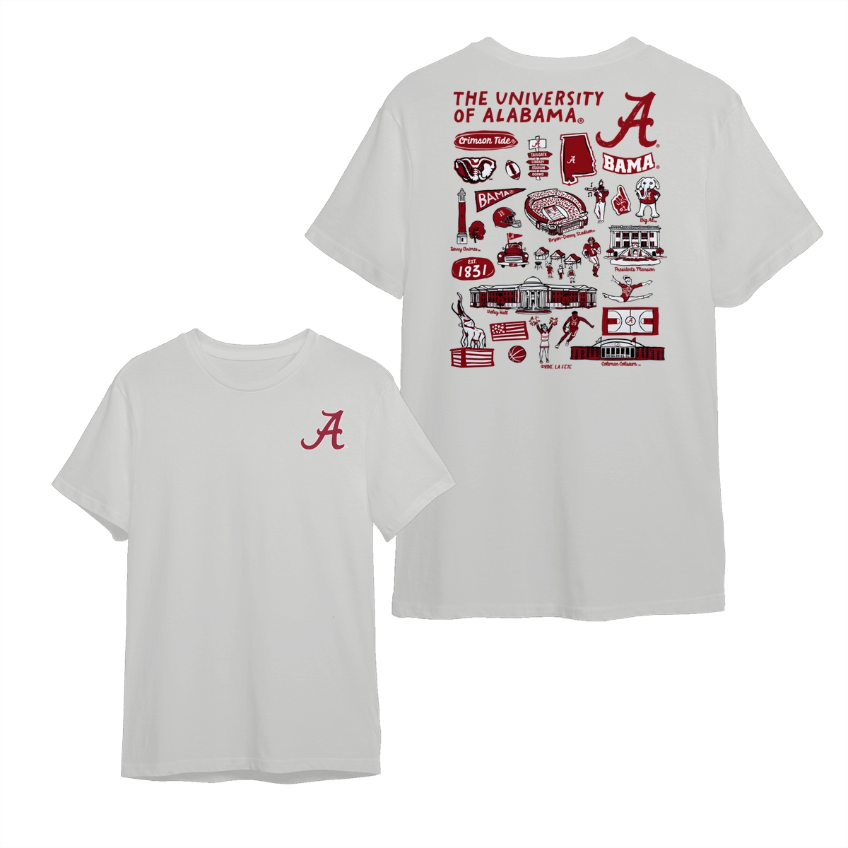 Alabama Team College T-Shirt – White Color, Customize your College, Hand-Drawn University Impressions Artwork Tee for Women & Men, Casual Cotton Top, Menswear & Womenswear