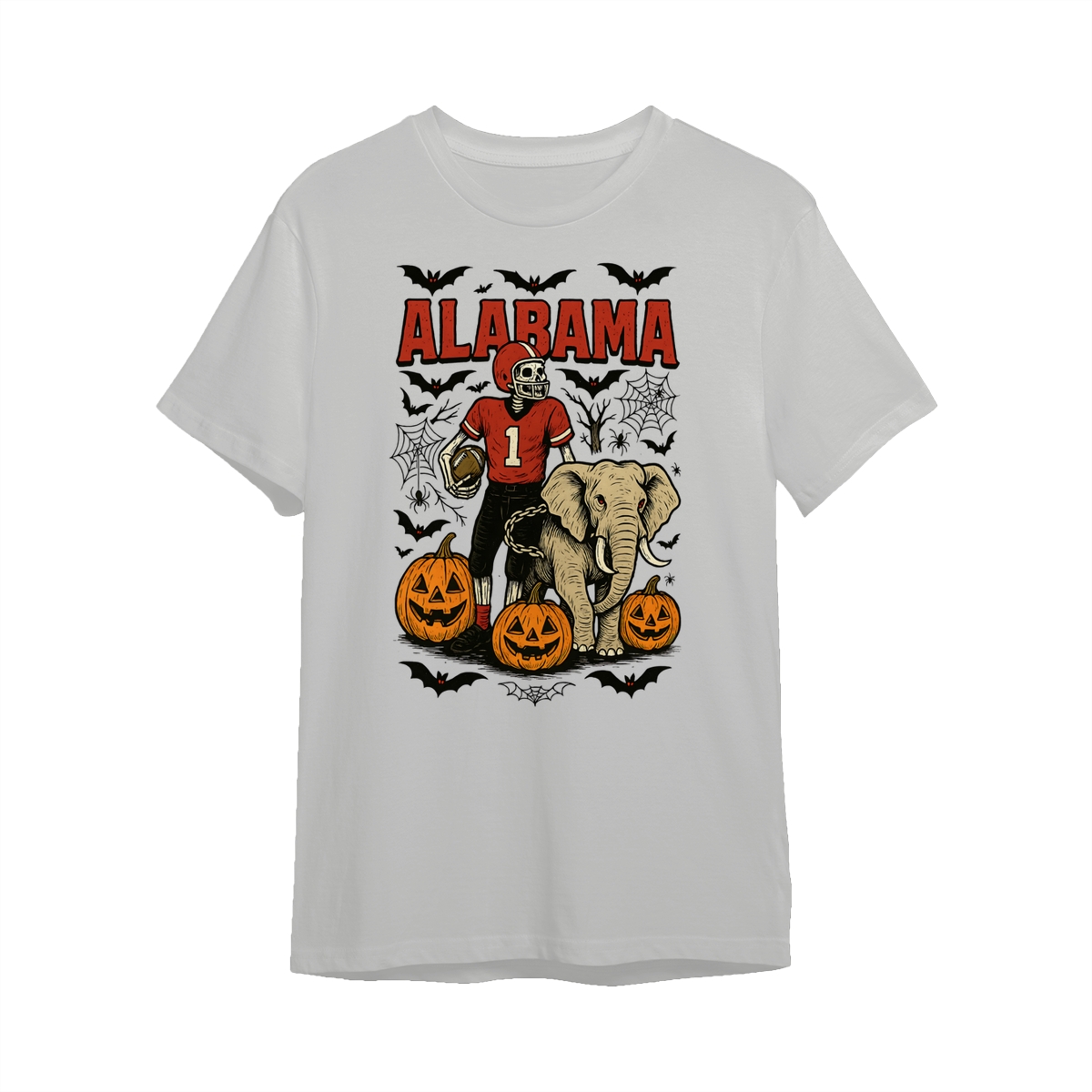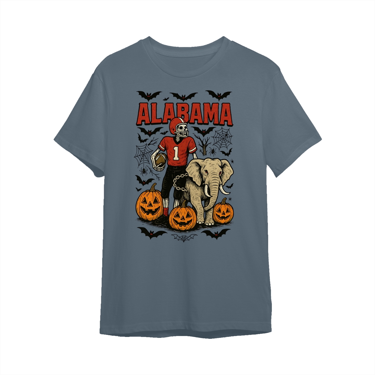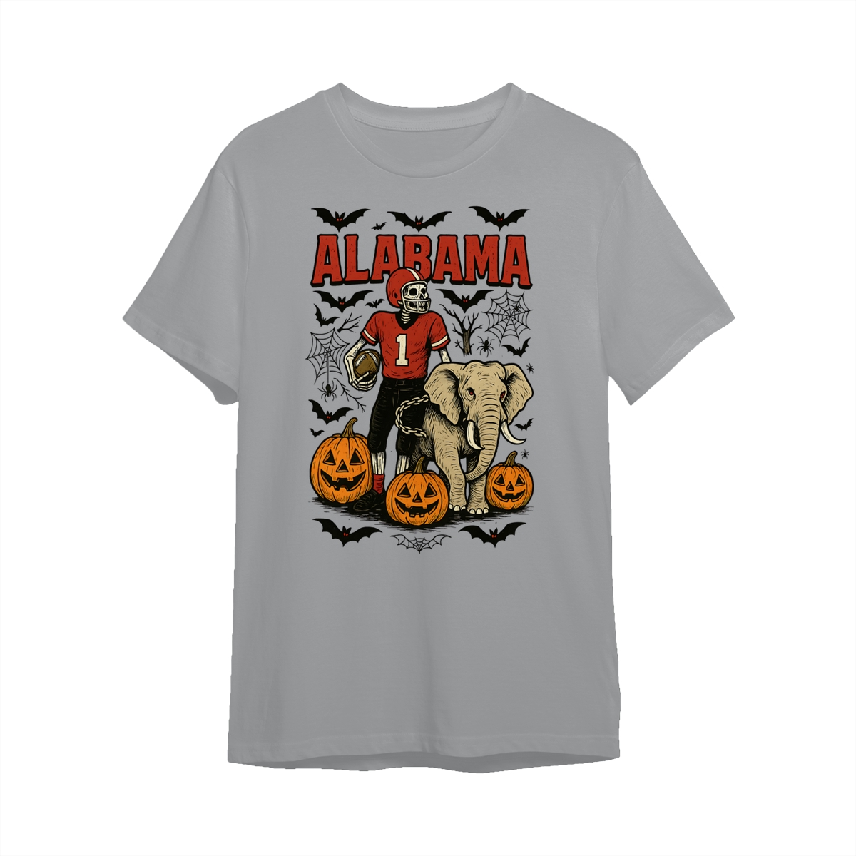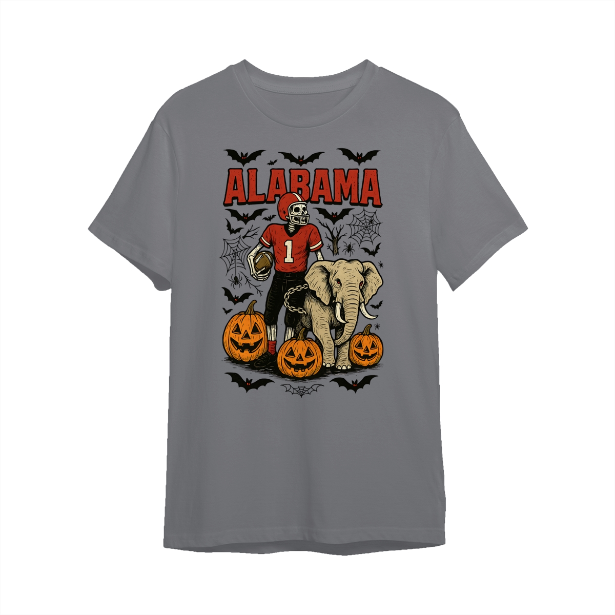 Alabama Teams NCAA Halloween Gray Tee – Vintage Skeleton Football Player with College Mascots Spooky Game Day Shirt Hand Drawn Unisex Graphic T Shirt for Summer