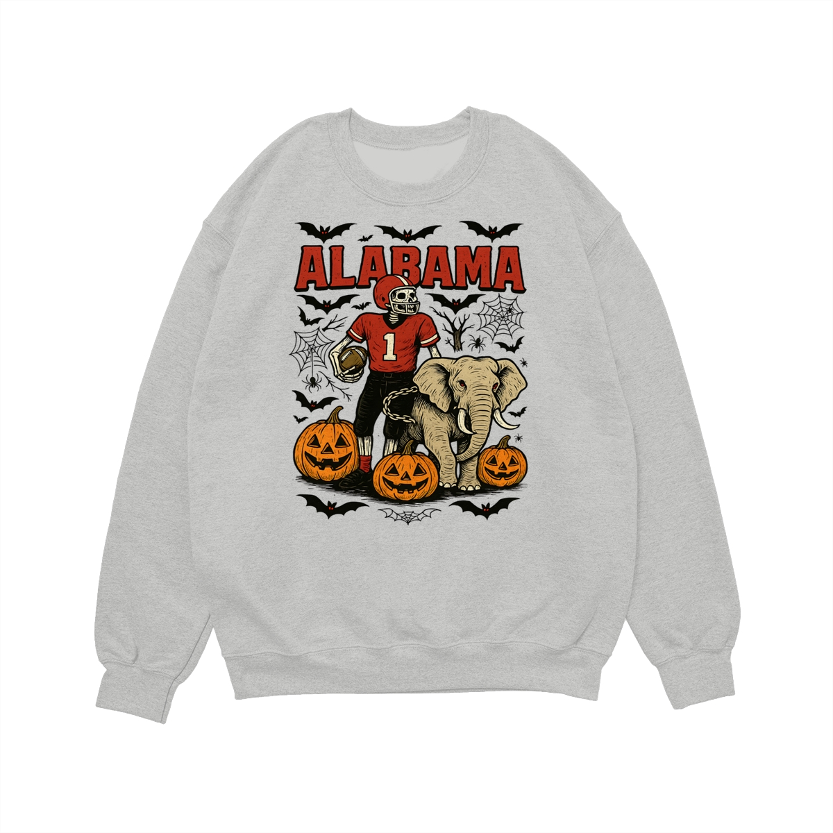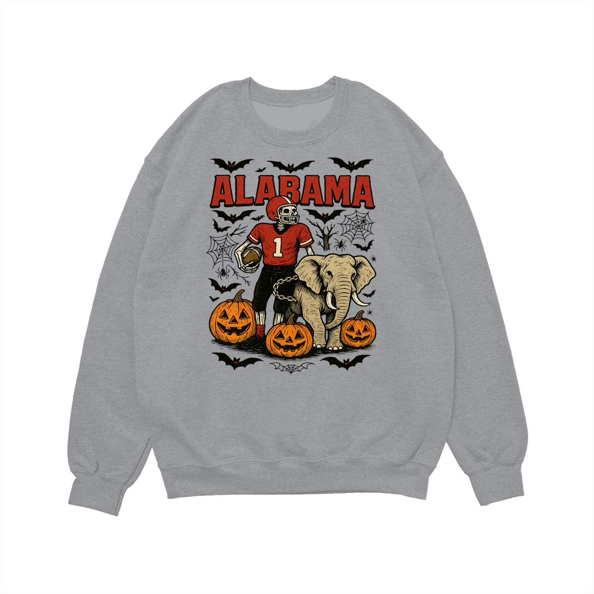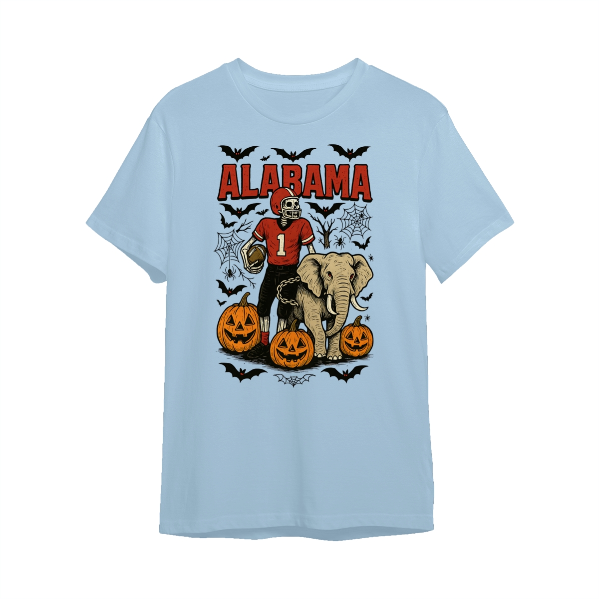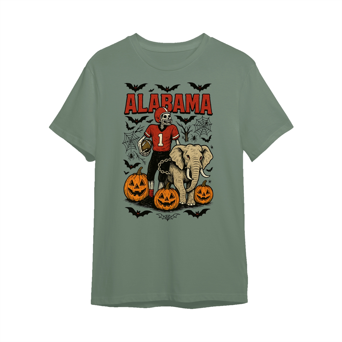 Alabama Teams NCAA Halloween Gray Tee – Vintage Skeleton Football Player with College Mascots Spooky Game Day Shirt Hand Drawn Unisex Graphic T Shirt for Summer