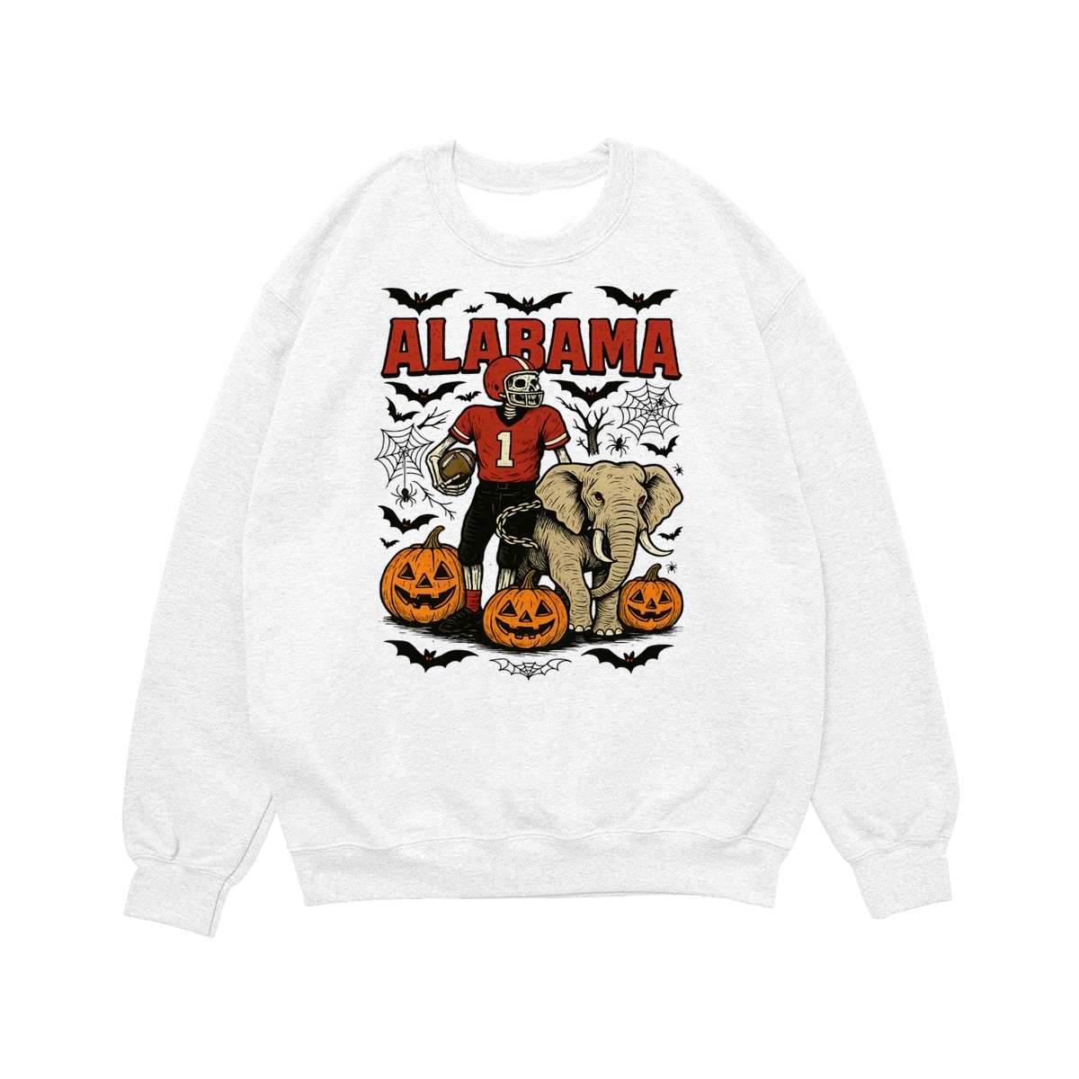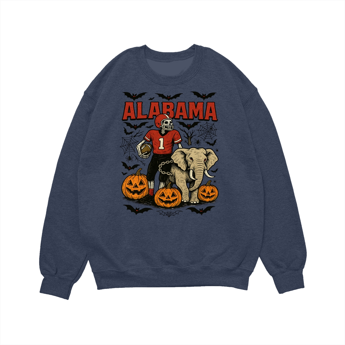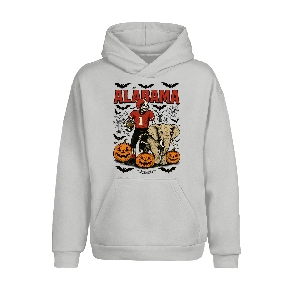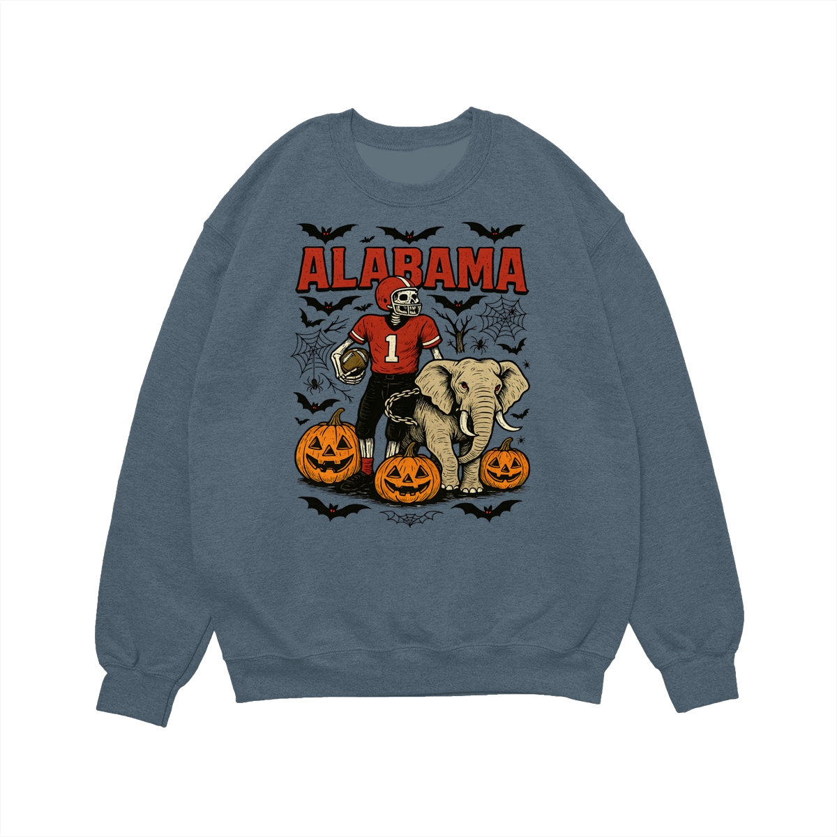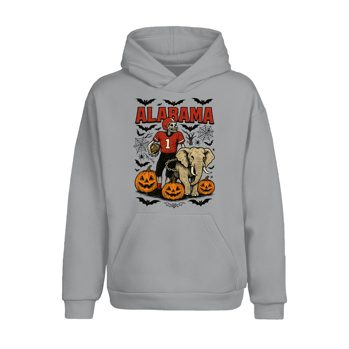 Alabama Teams NCAA Halloween Gray Tee – Vintage Skeleton Football Player with College Mascots Spooky Game Day Shirt Hand Drawn Unisex Graphic T Shirt for Summer