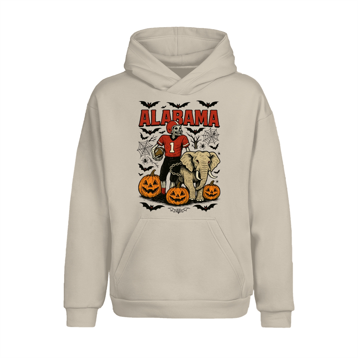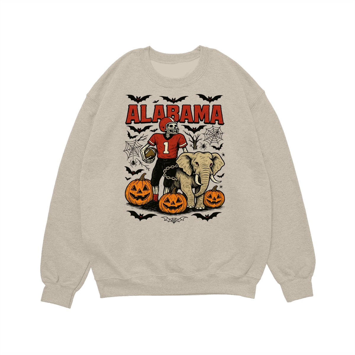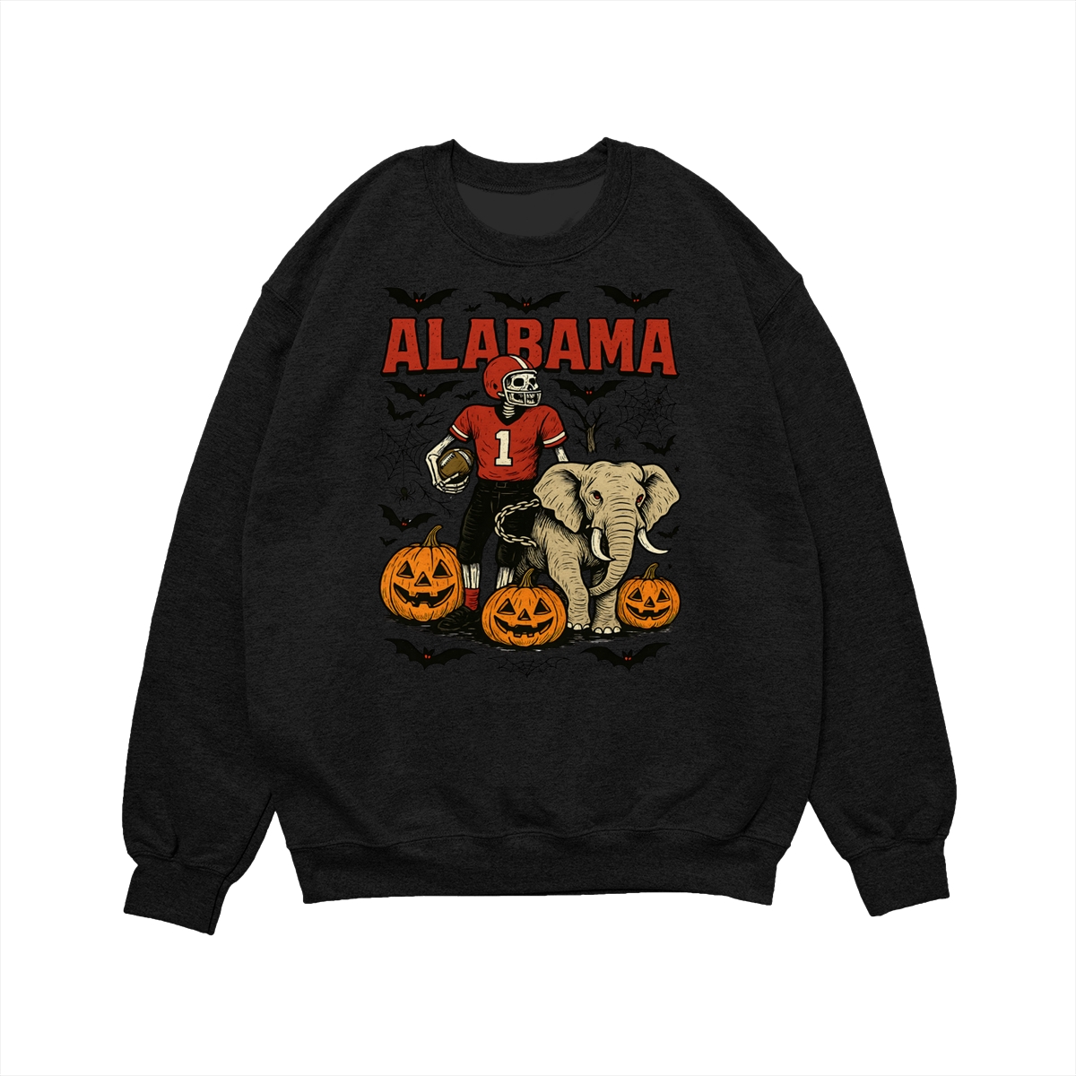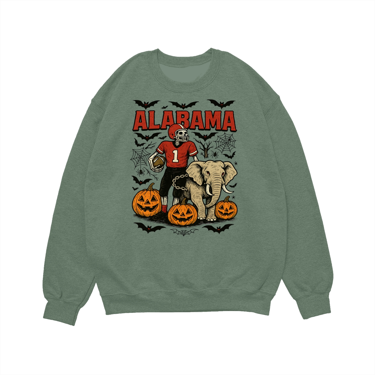 Alabama Teams NCAA Halloween Gray Tee – Vintage Skeleton Football Player with College Mascots Spooky Game Day Shirt Hand Drawn Unisex Graphic T Shirt for Summer