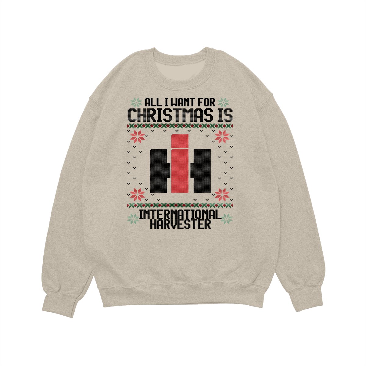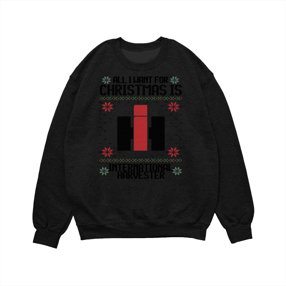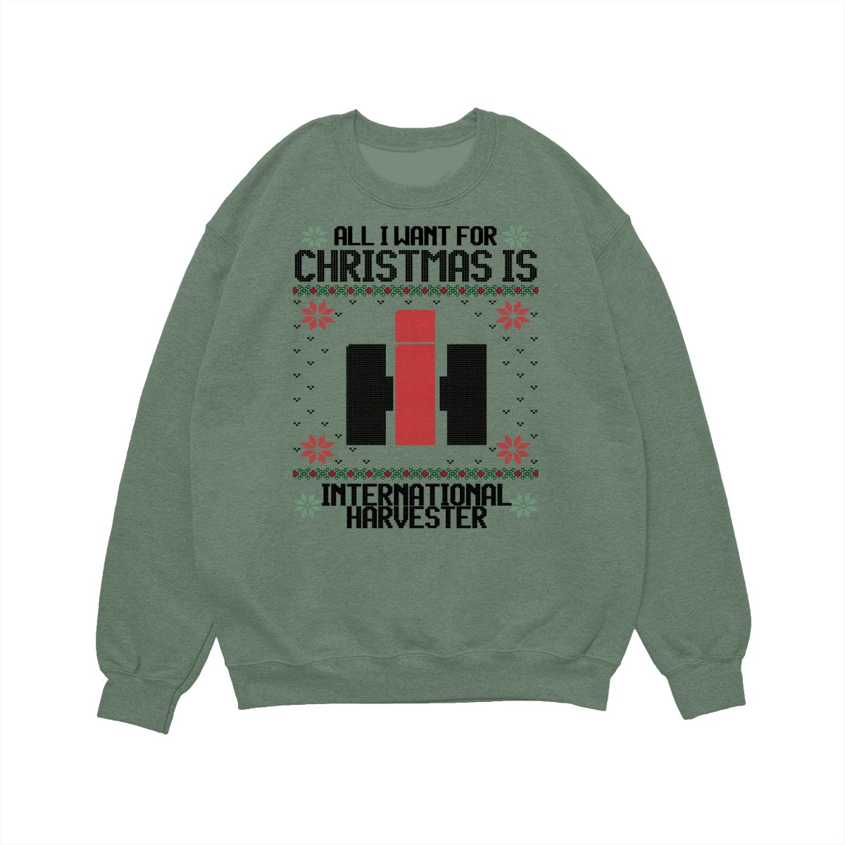 All I Want For Christmas Is IH Sweatshirt, Holiday Farm Equipment Machinery Graphic Sweatshirt For Farmers X-mas Gift