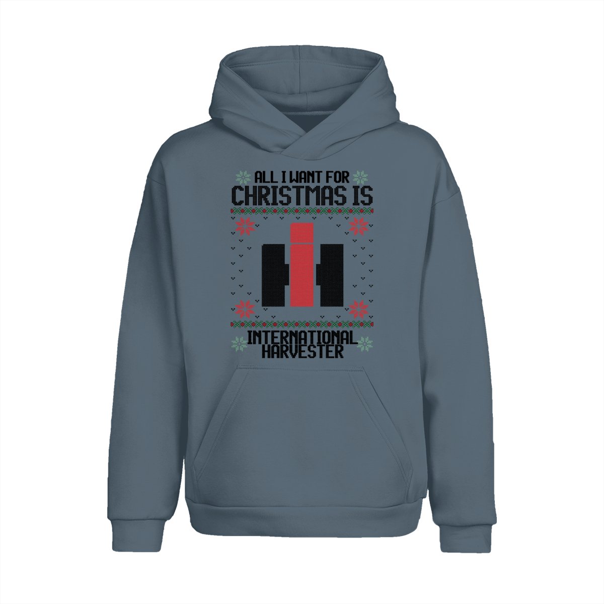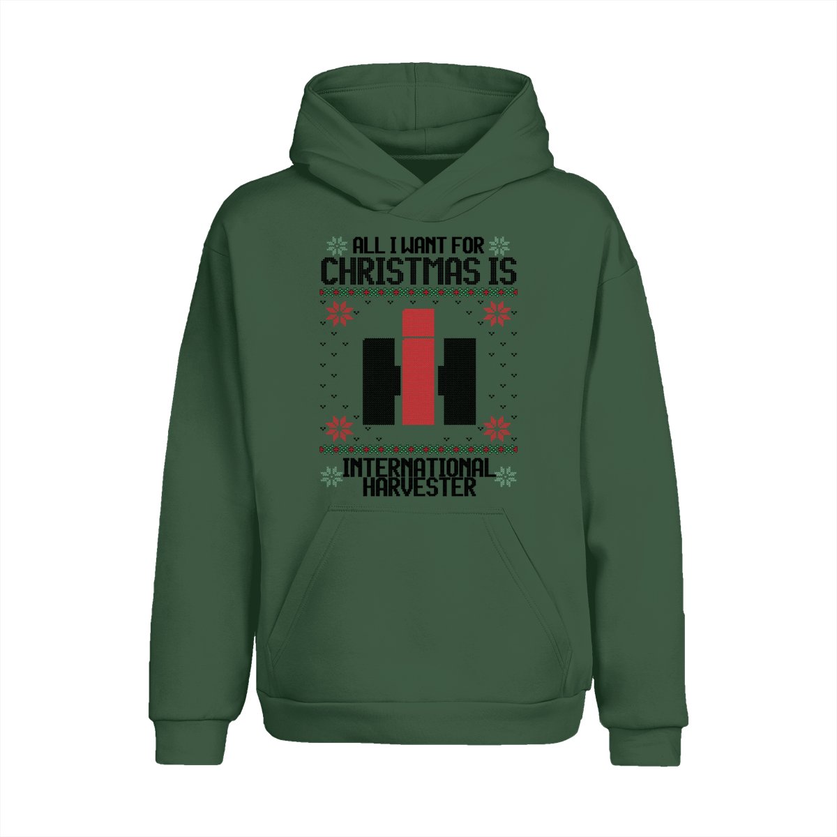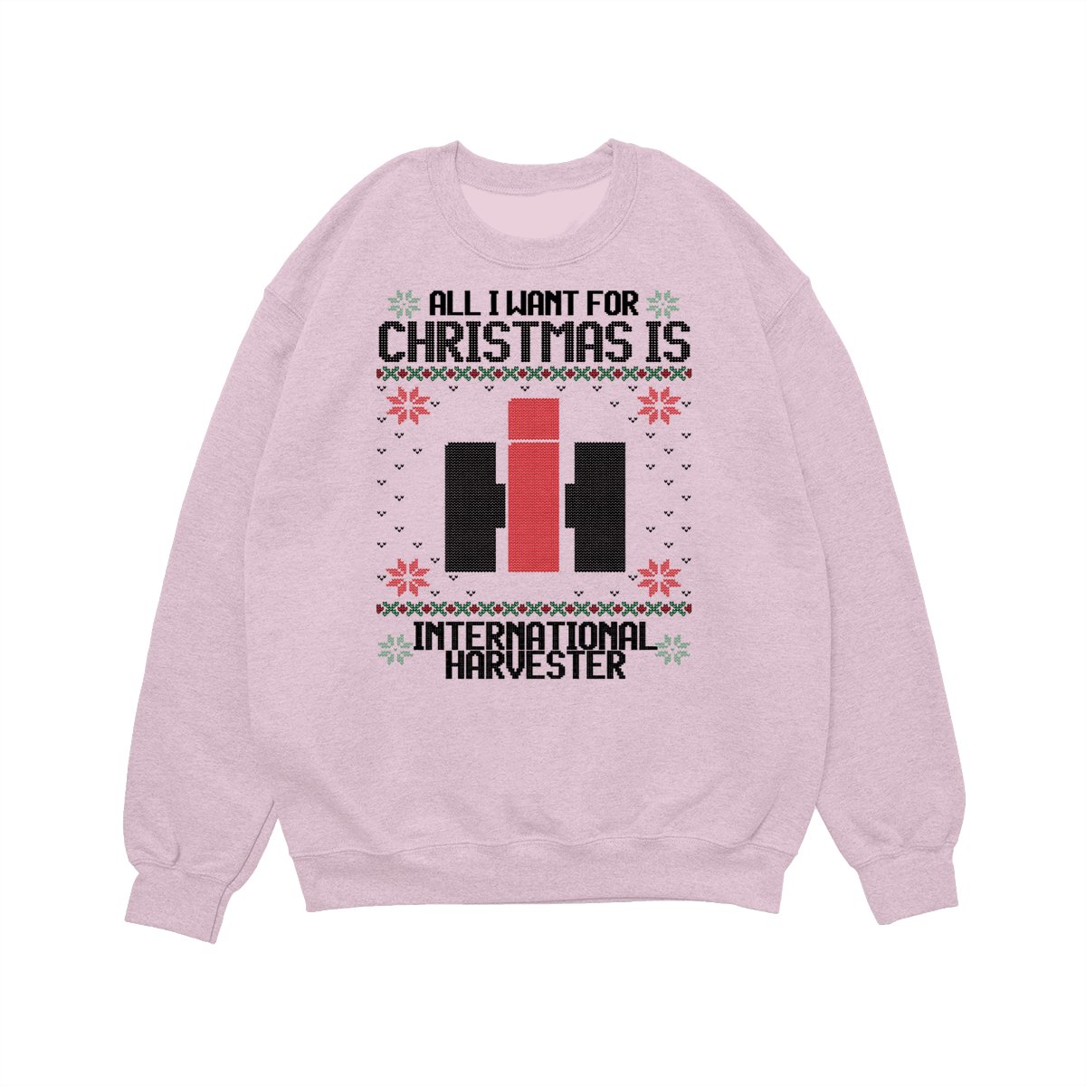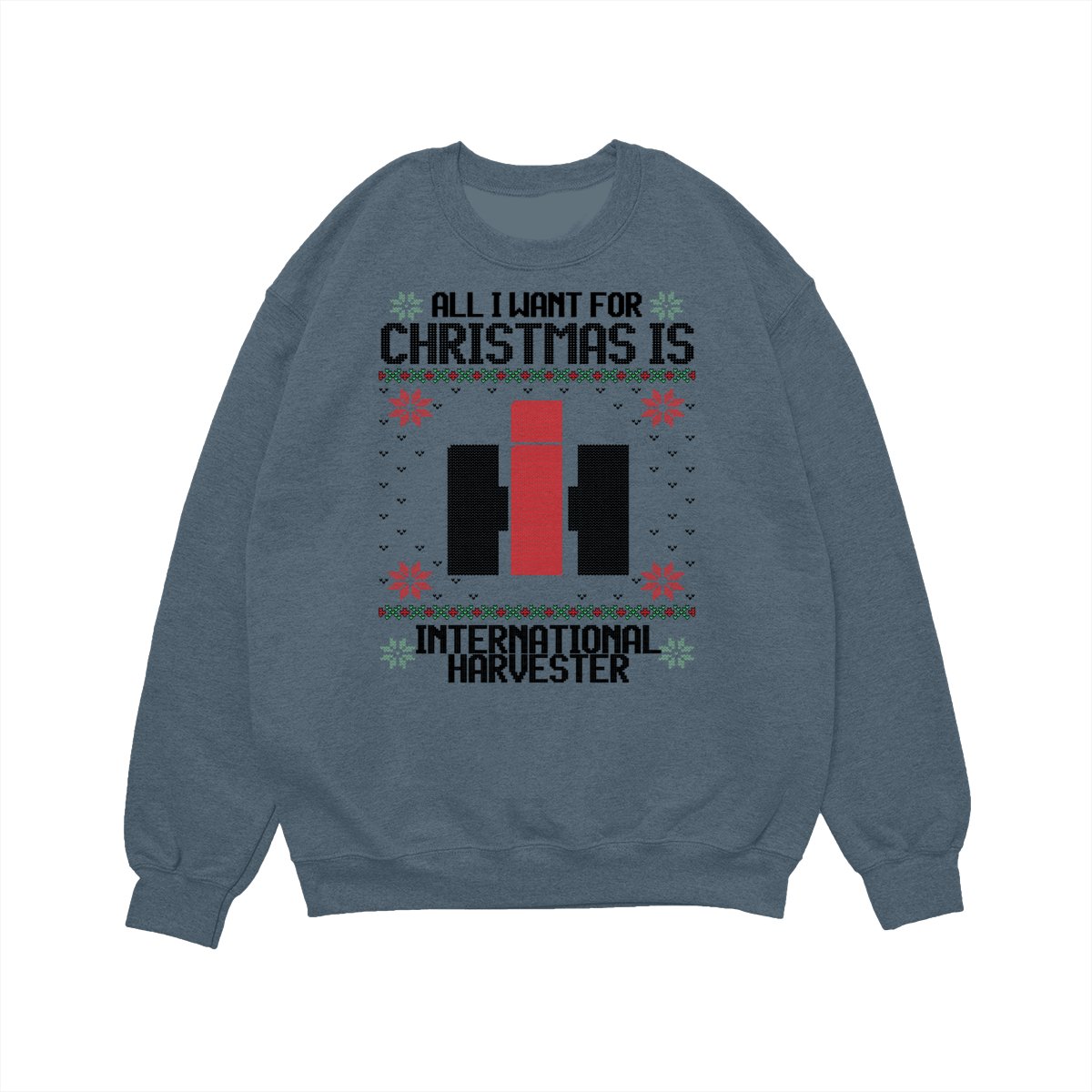 All I Want For Christmas Is IH Sweatshirt, Holiday Farm Equipment Machinery Graphic Sweatshirt For Farmers X-mas Gift