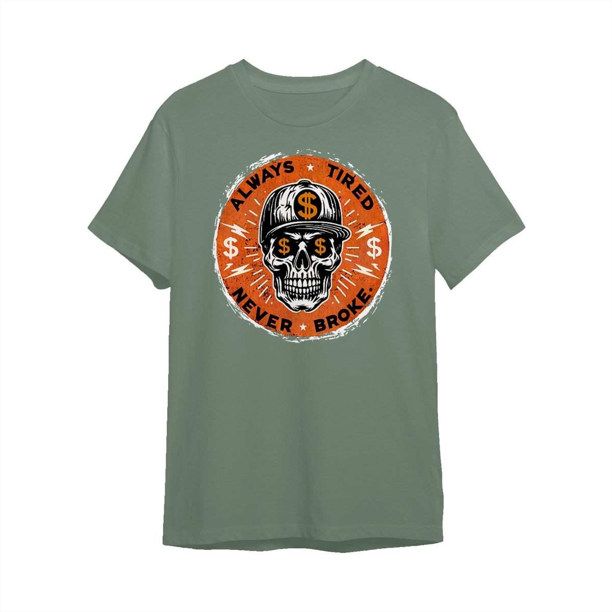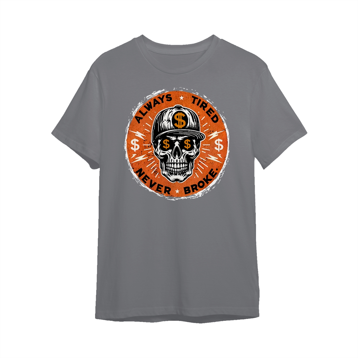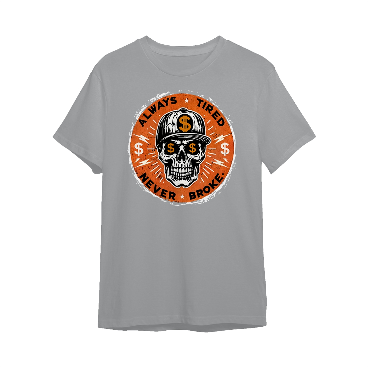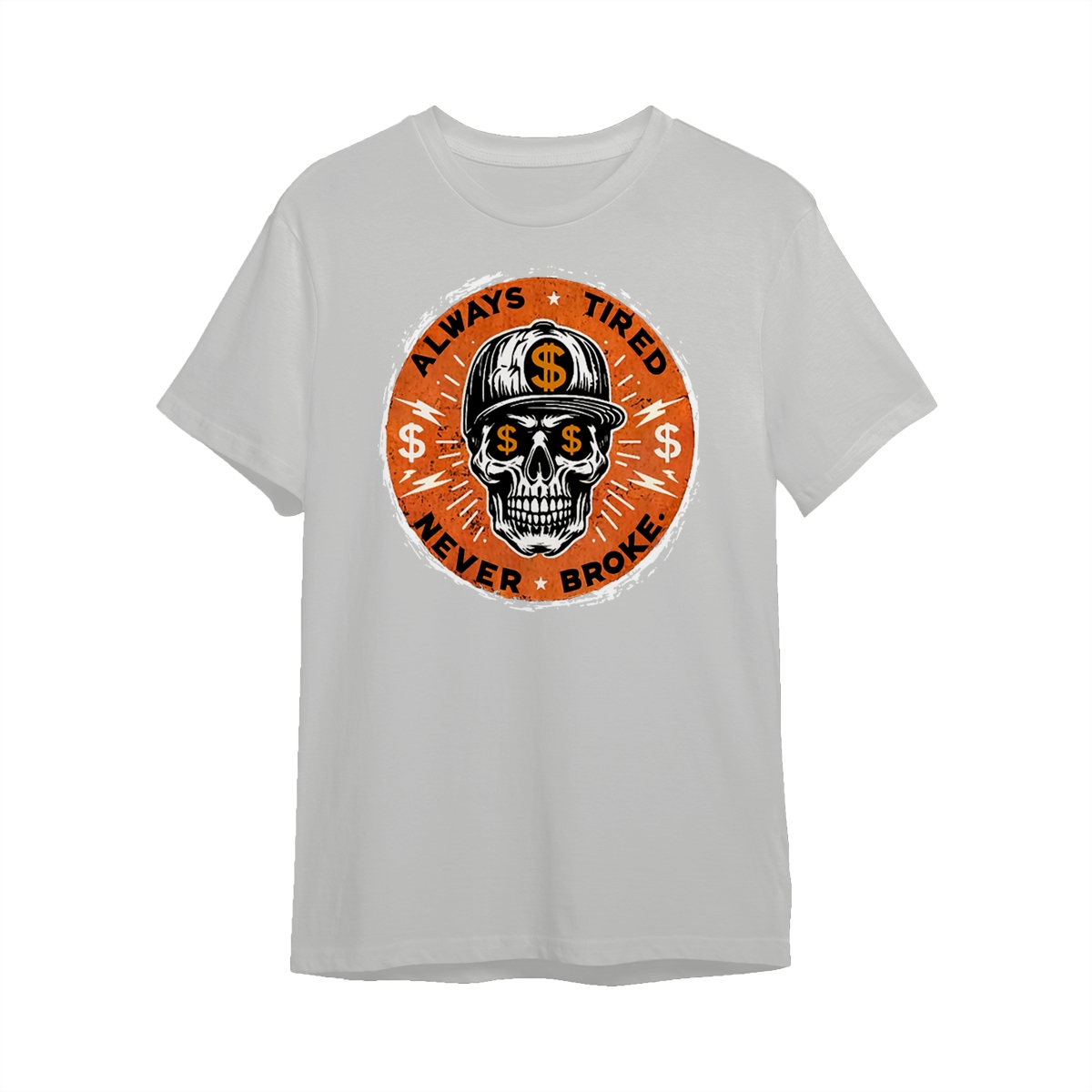 ALWAYS TIRED NEVER BROKE Skull Print Men’s T-Shirt, Top Menswear, Cotton Tee Shirt Casual Streetwear, Menswear Graphic Tee Casual Top for Unisex Design 0