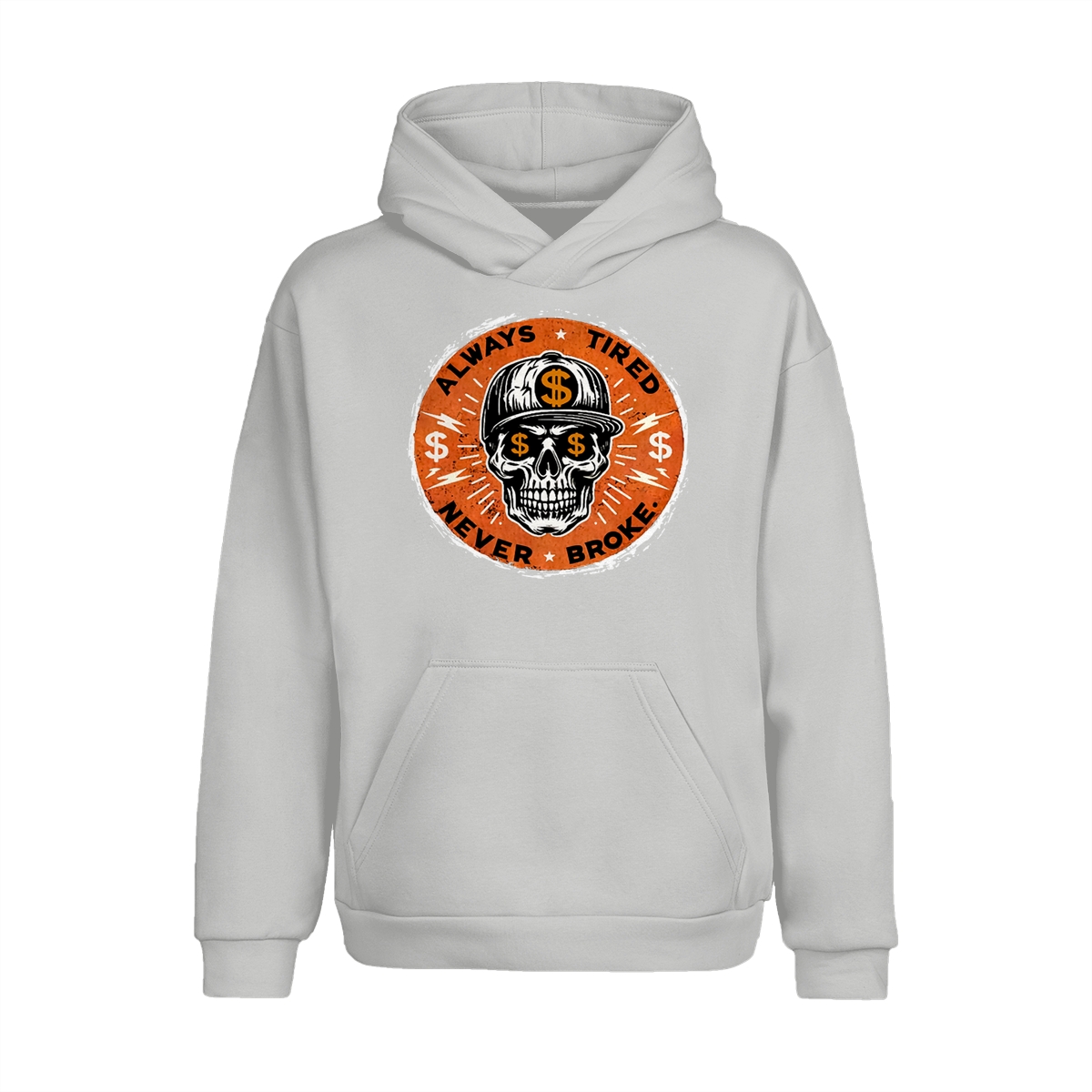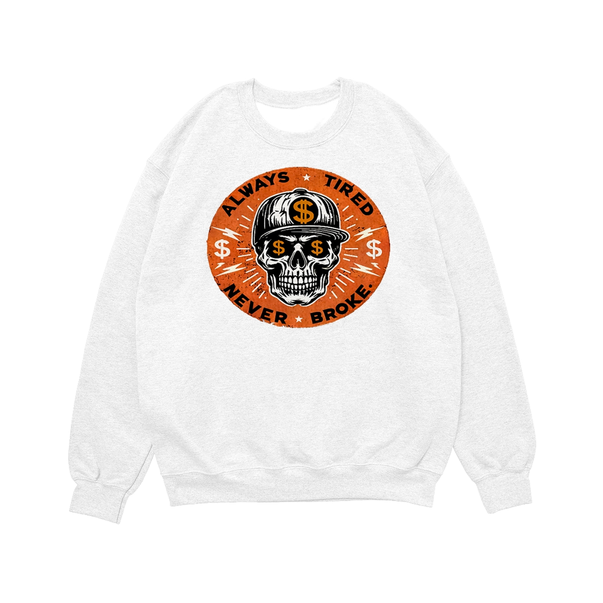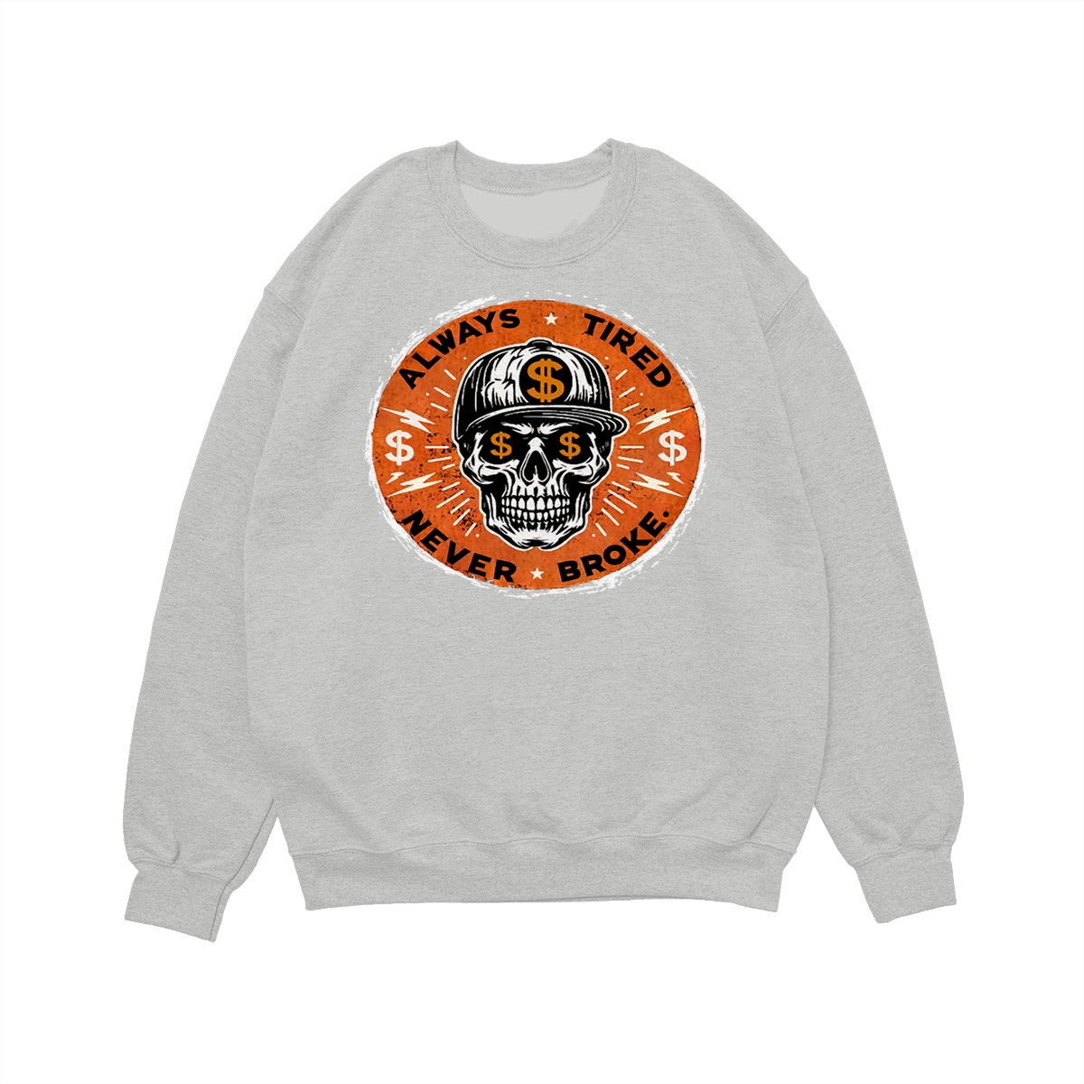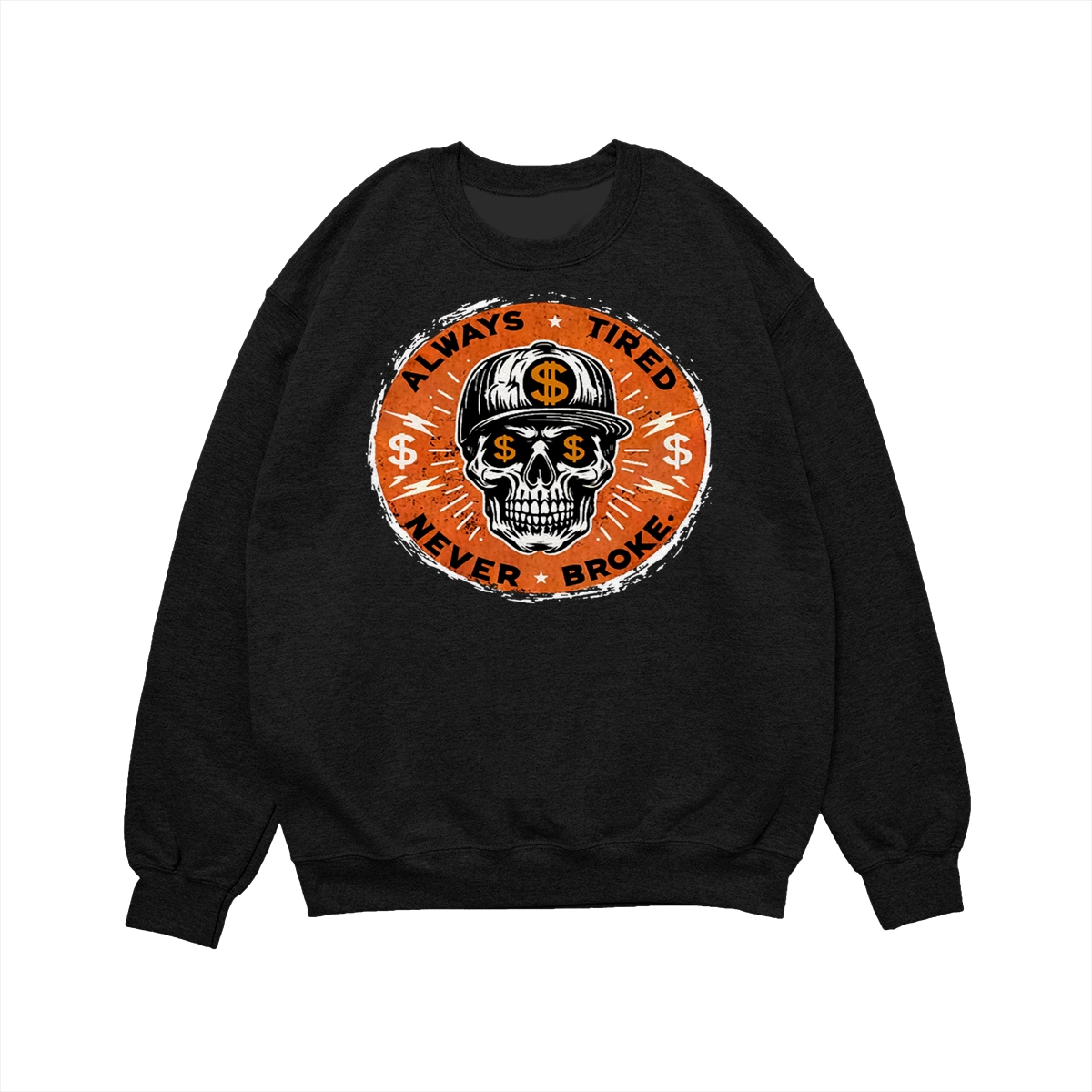 ALWAYS TIRED NEVER BROKE Skull Print Men’s T-Shirt, Top Menswear, Cotton Tee Shirt Casual Streetwear, Menswear Graphic Tee Casual Top for Unisex Design 0