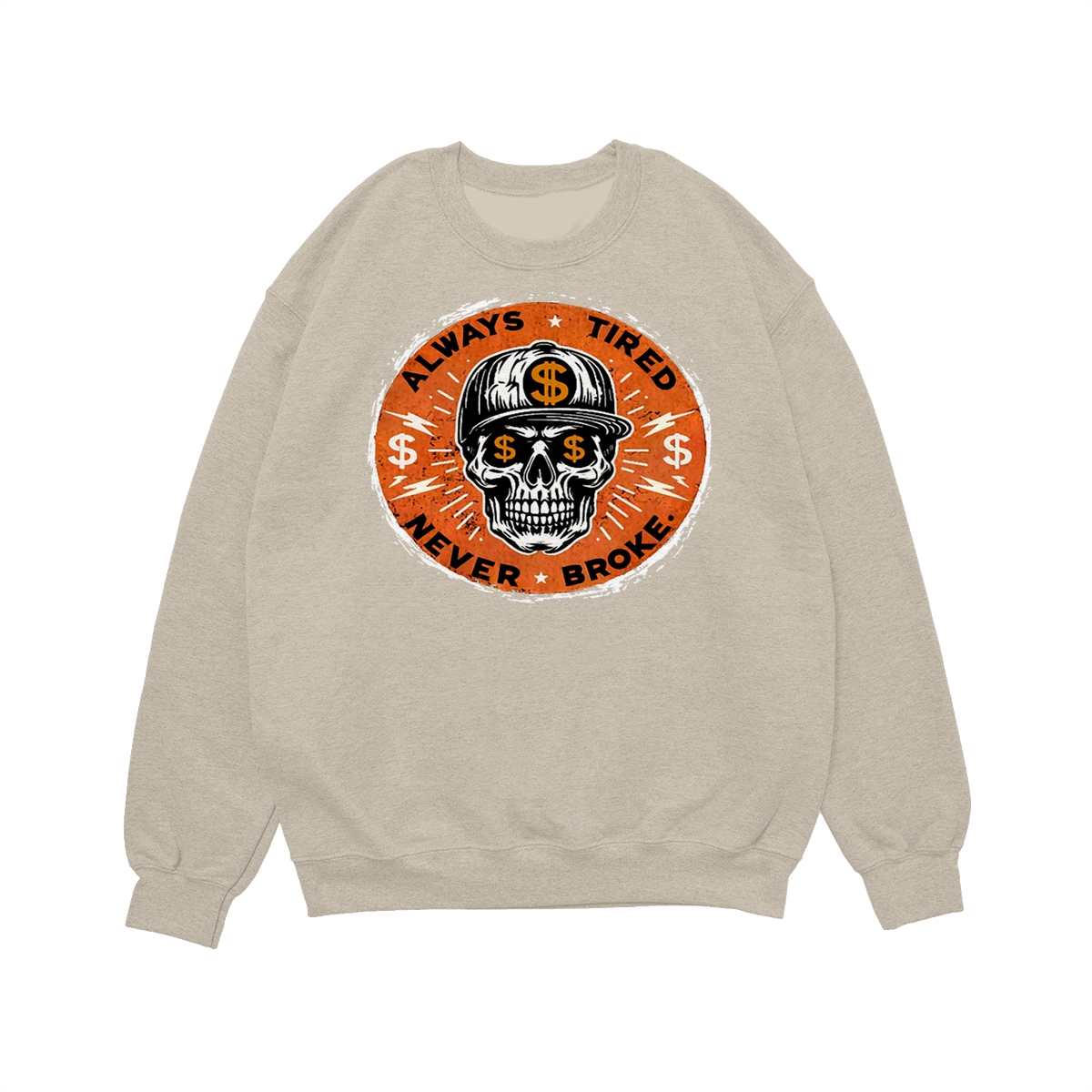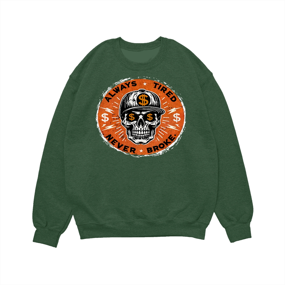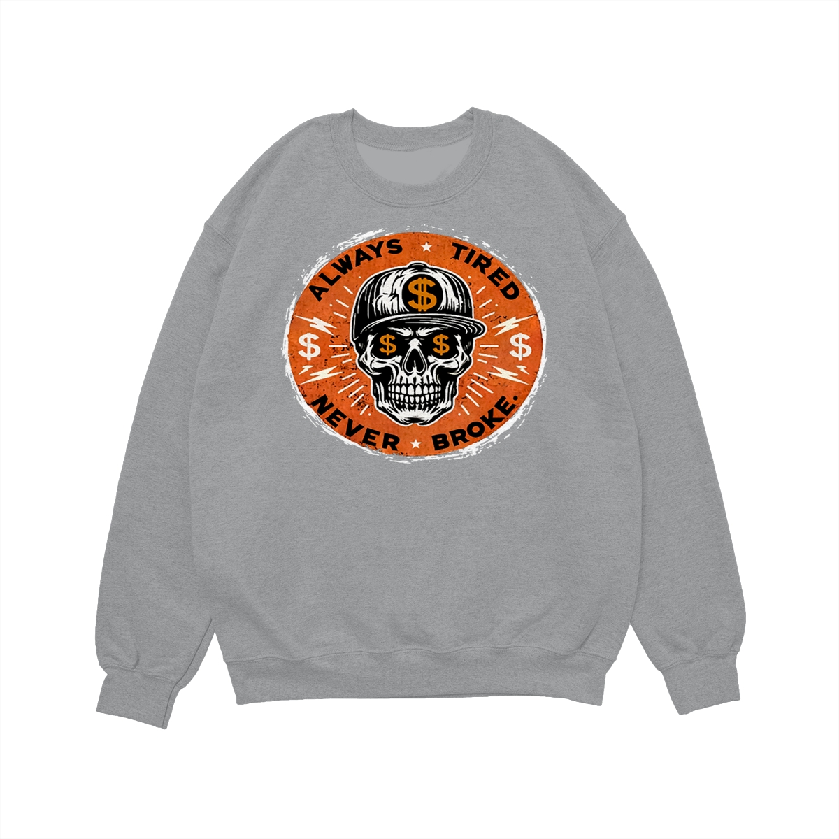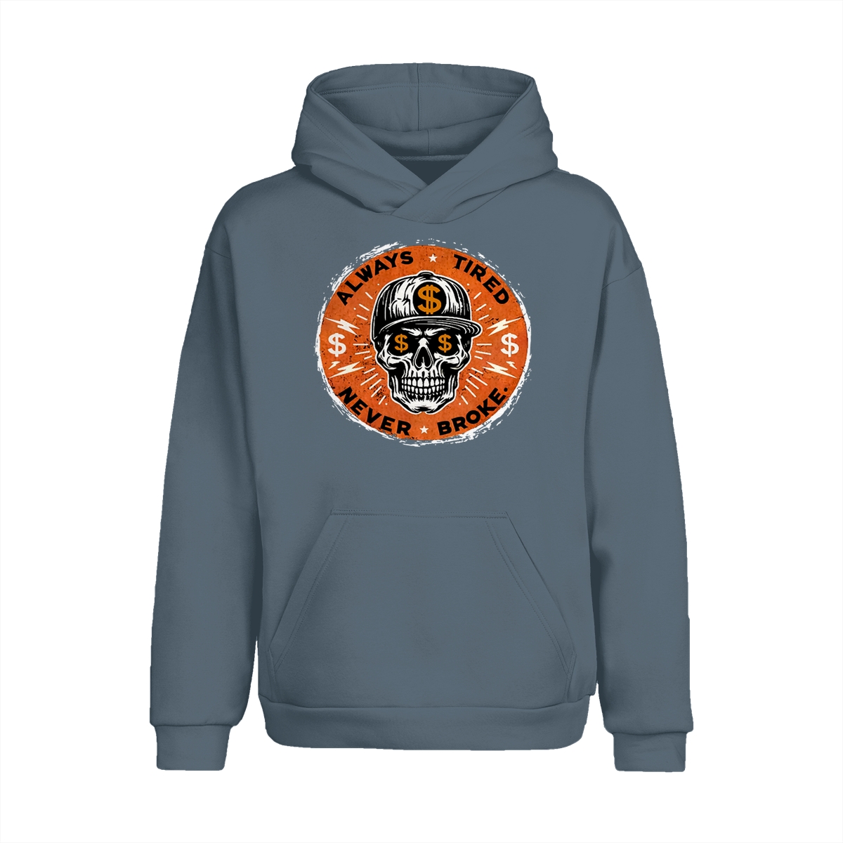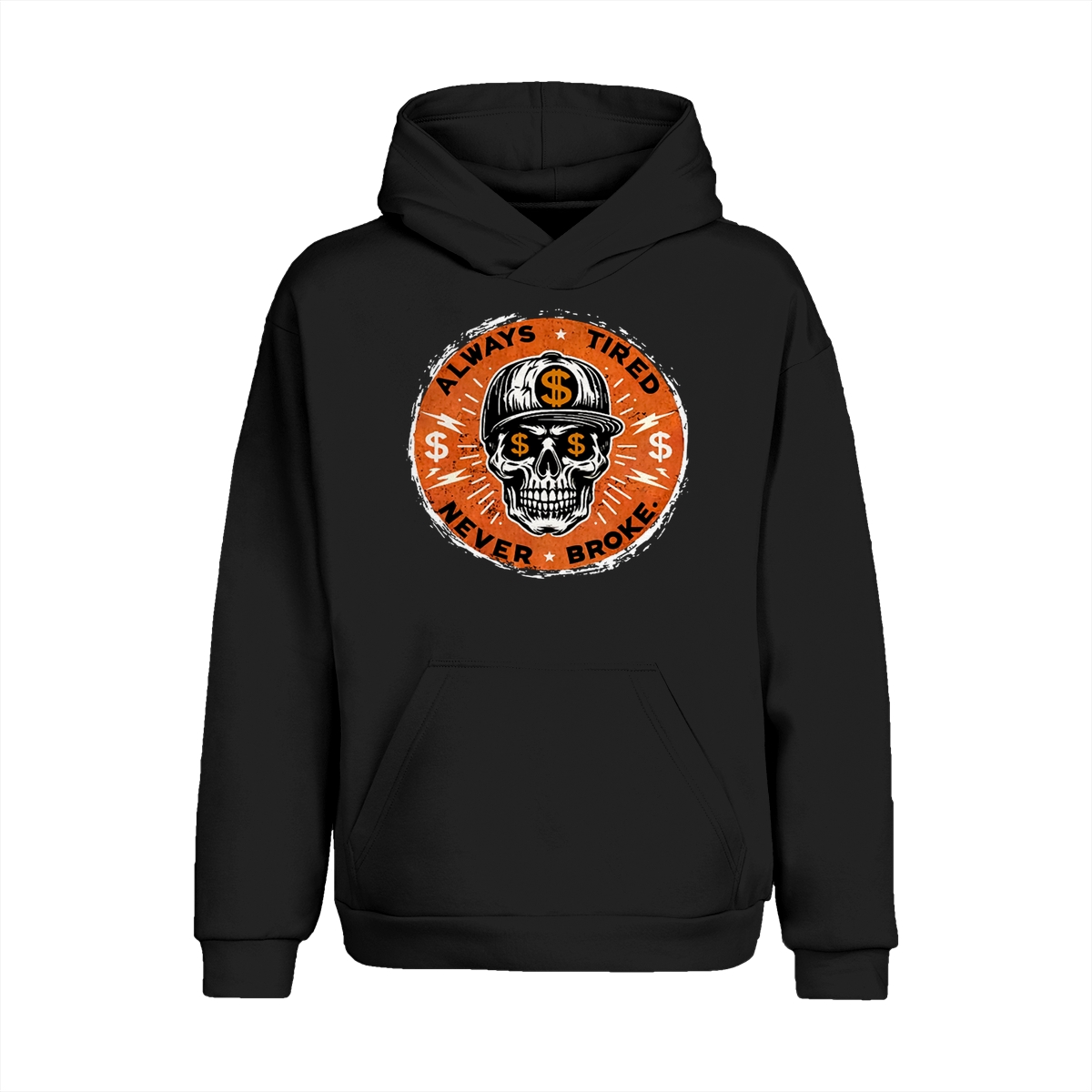 ALWAYS TIRED NEVER BROKE Skull Print Men’s T-Shirt, Top Menswear, Cotton Tee Shirt Casual Streetwear, Menswear Graphic Tee Casual Top for Unisex Design 0