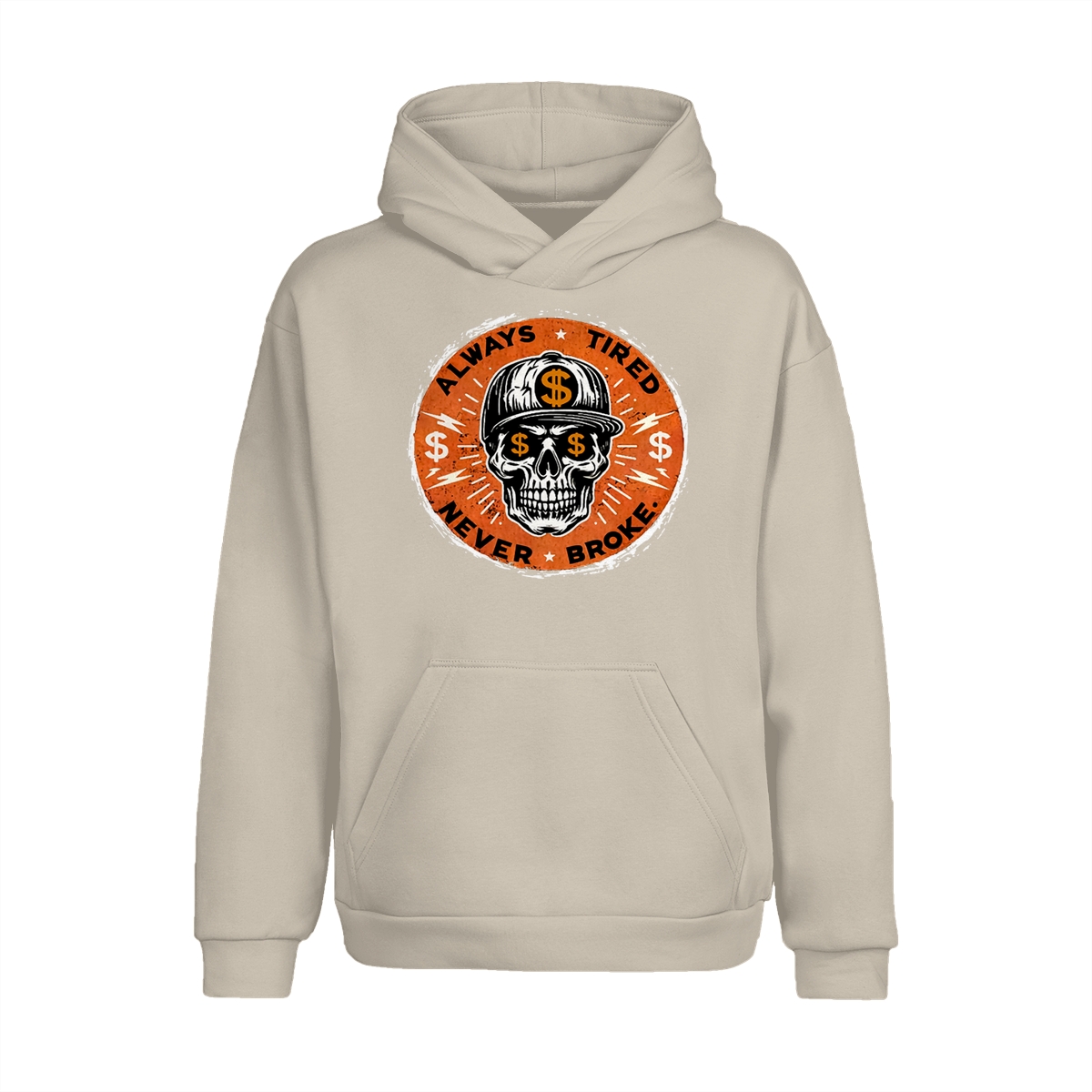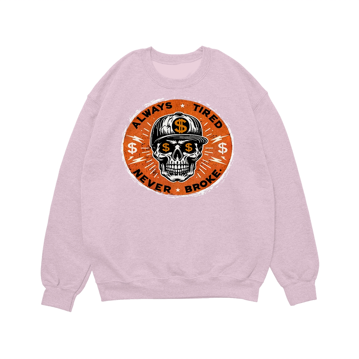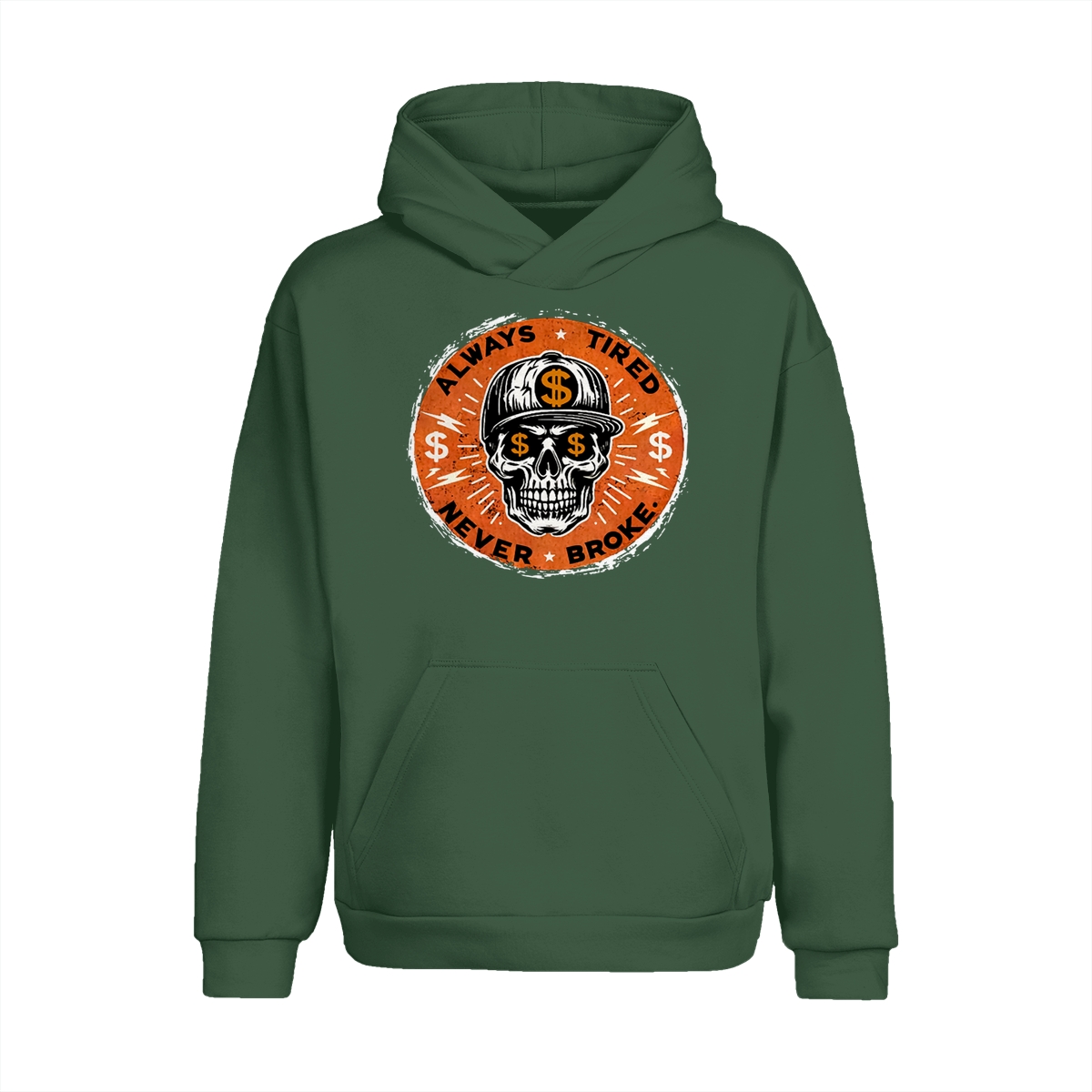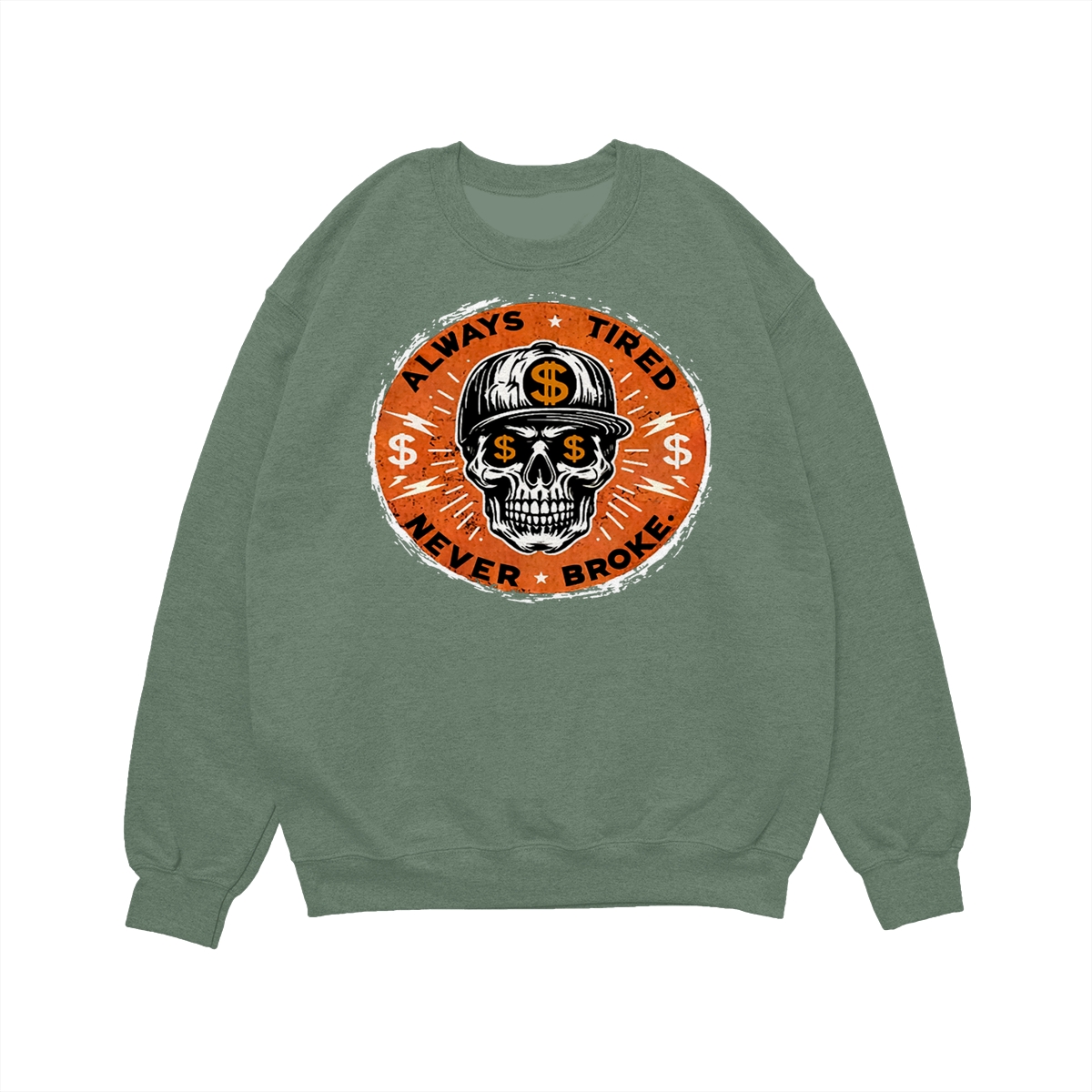 ALWAYS TIRED NEVER BROKE Skull Print Men’s T-Shirt, Top Menswear, Cotton Tee Shirt Casual Streetwear, Menswear Graphic Tee Casual Top for Unisex Design 0