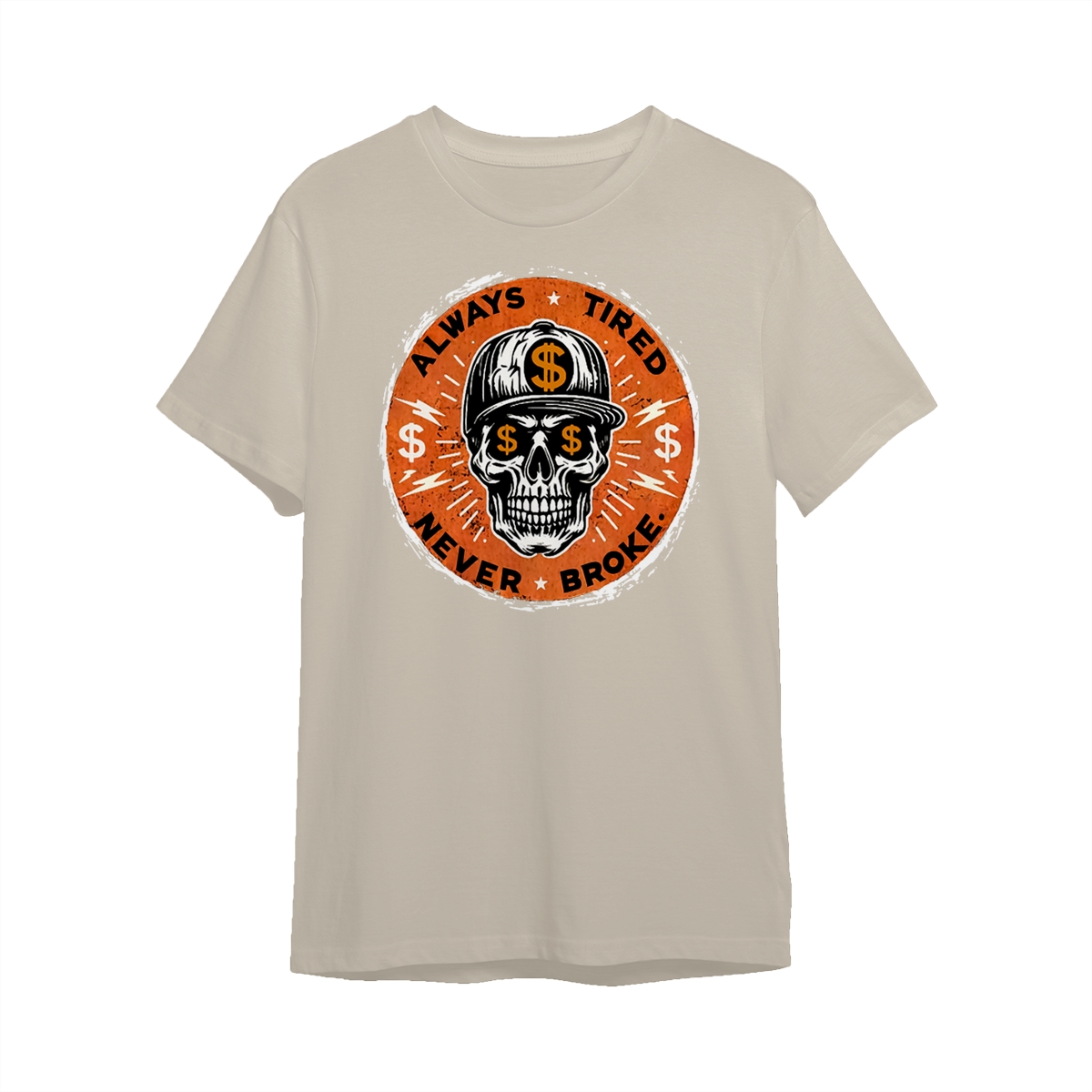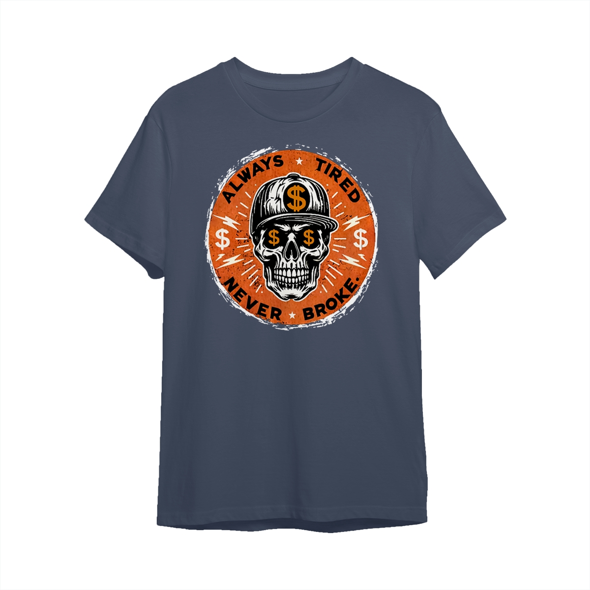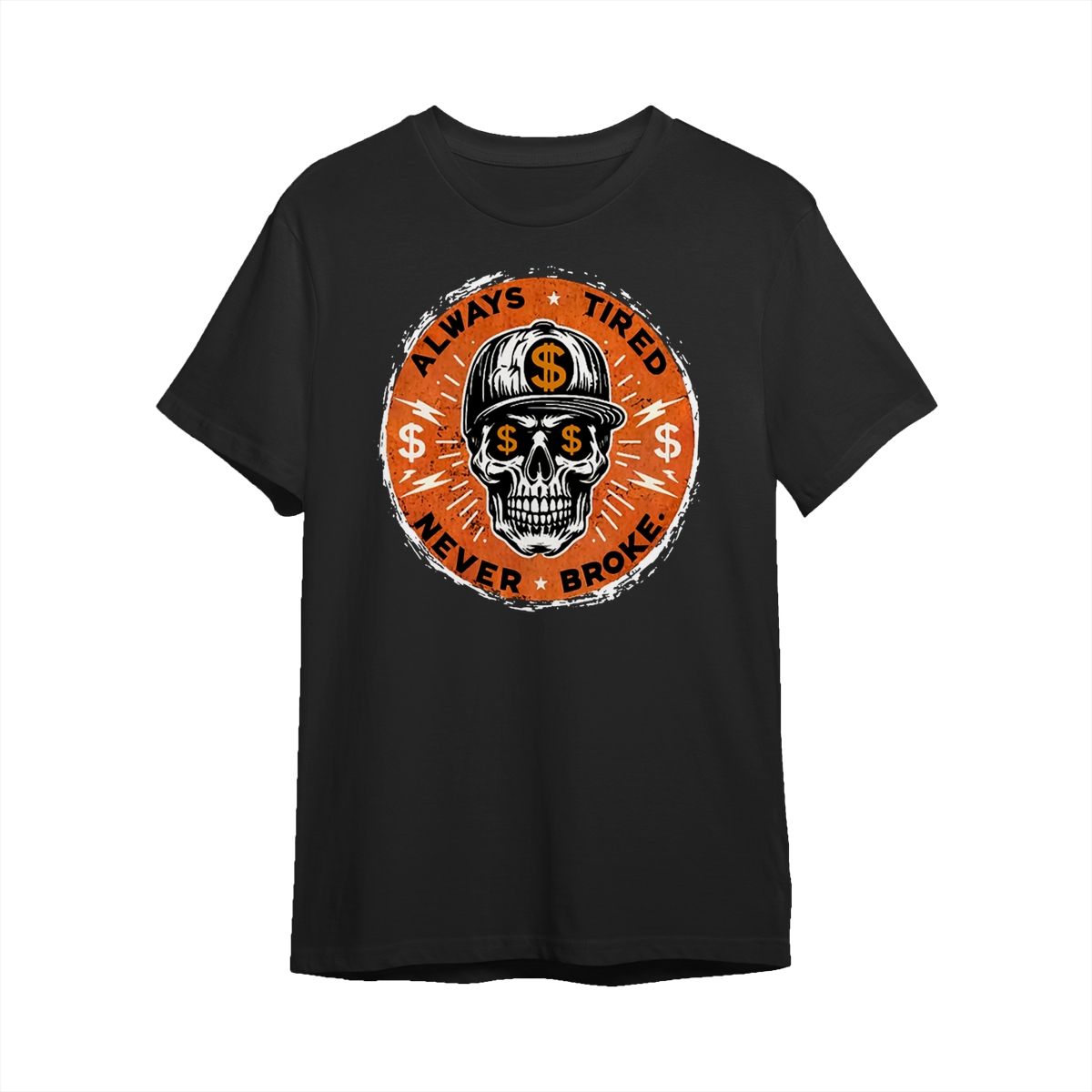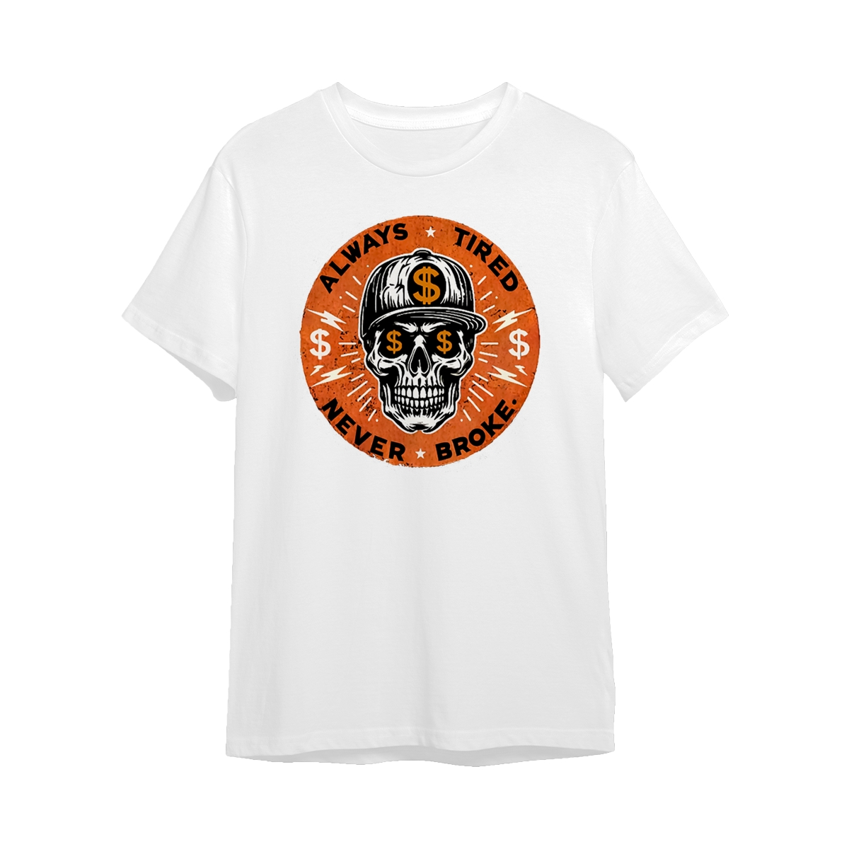 ALWAYS TIRED NEVER BROKE Skull Print Men’s T-Shirt, Top Menswear, Cotton Tee Shirt Casual Streetwear, Menswear Graphic Tee Casual Top for Unisex Design 0