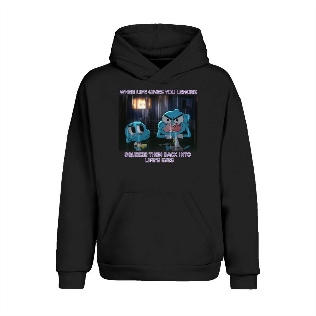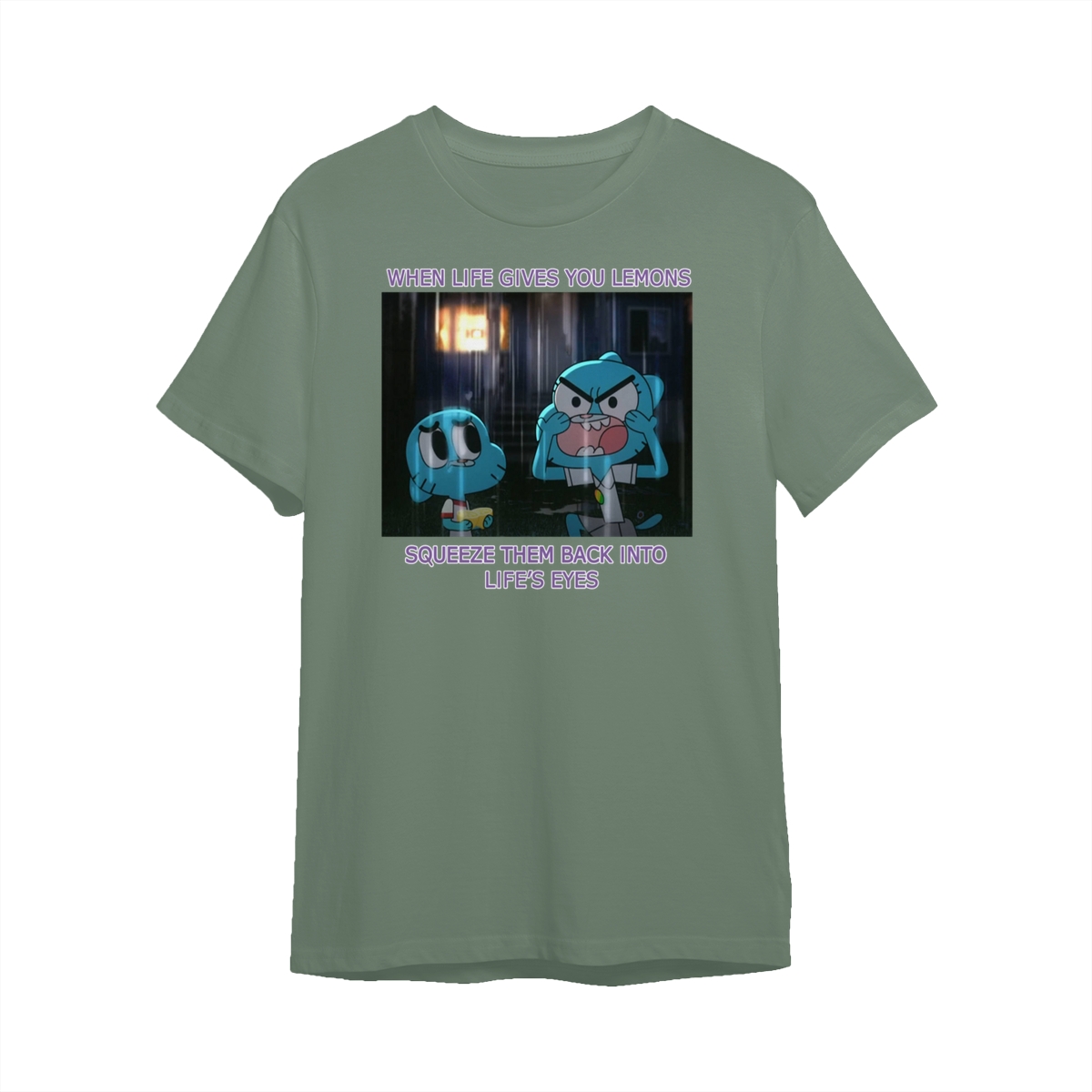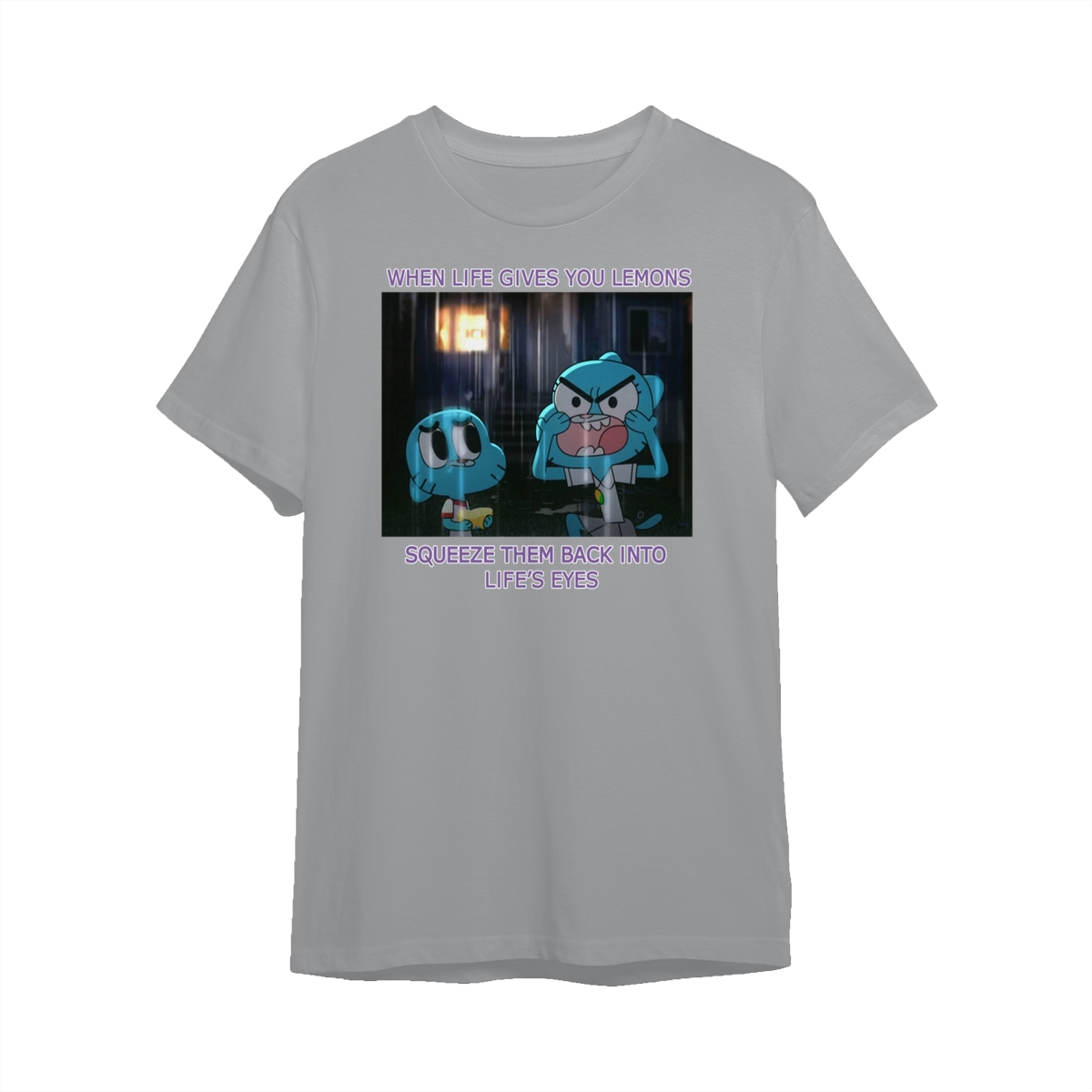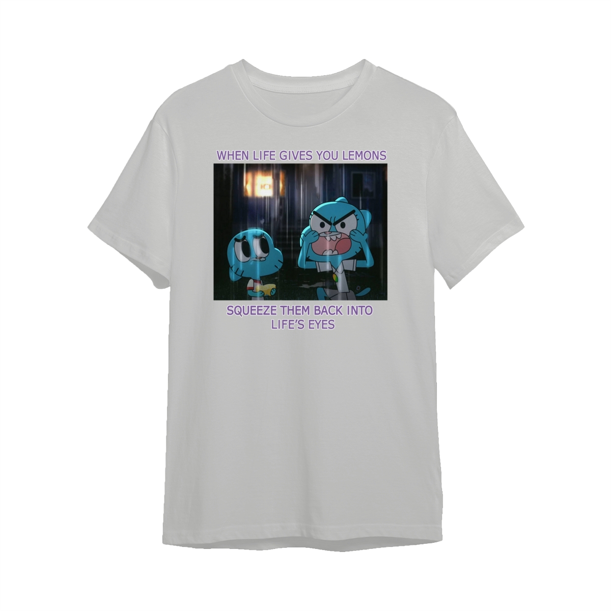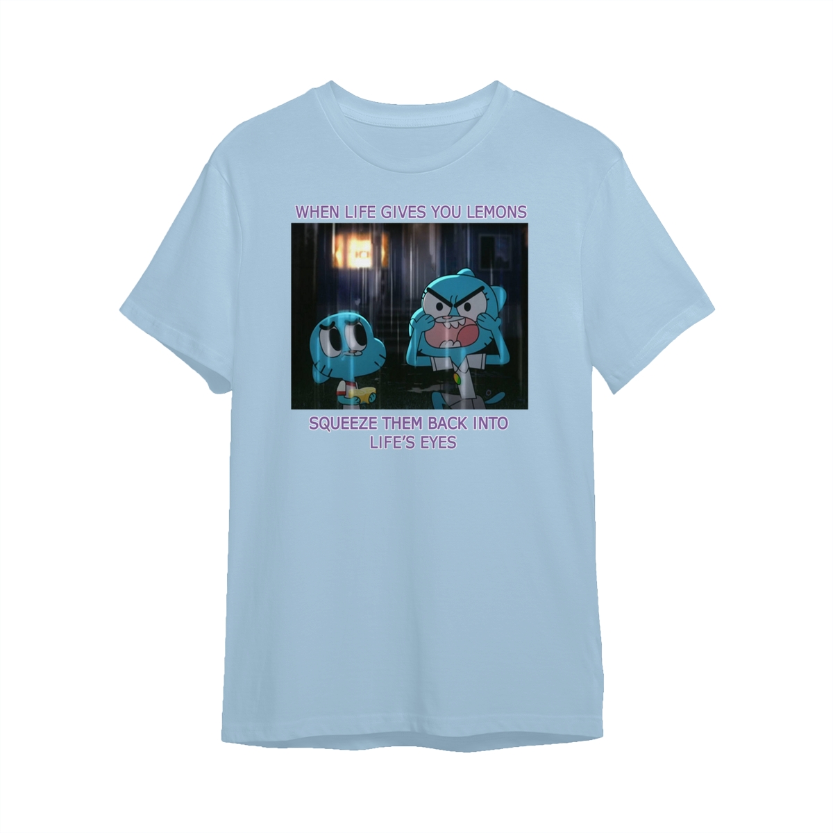 Amazing World of Gumball T-Shirt, Gumball Cartoon 2025 When Life Gives You Lemons Squeeze Them Back Into Life’s Eyes Funny Quote Graphic Tee