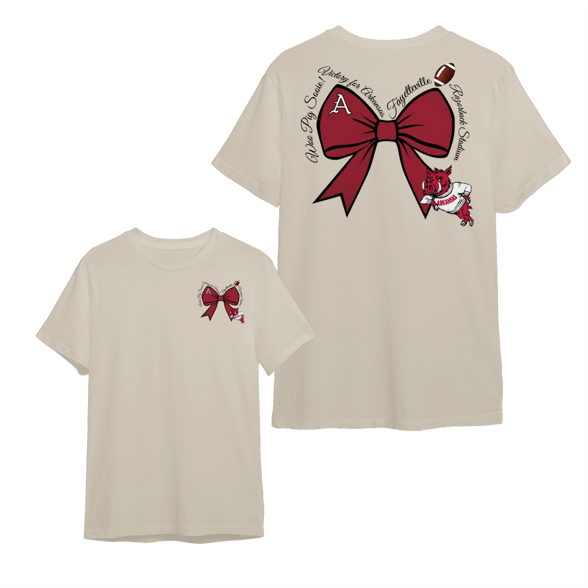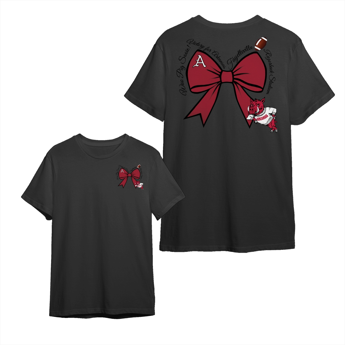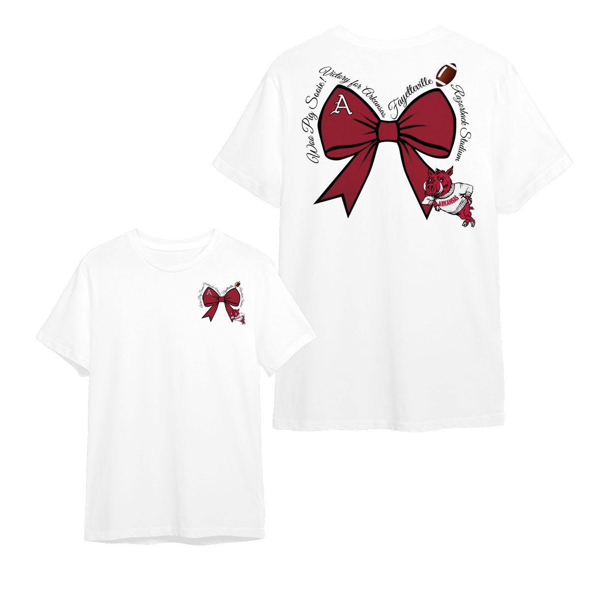 Arkansas Bow T-Shirt, Cute Coquette Style, Pig Sooie Graphic Tee, Game Day Outfit, College Football Shirt, Gift for Her