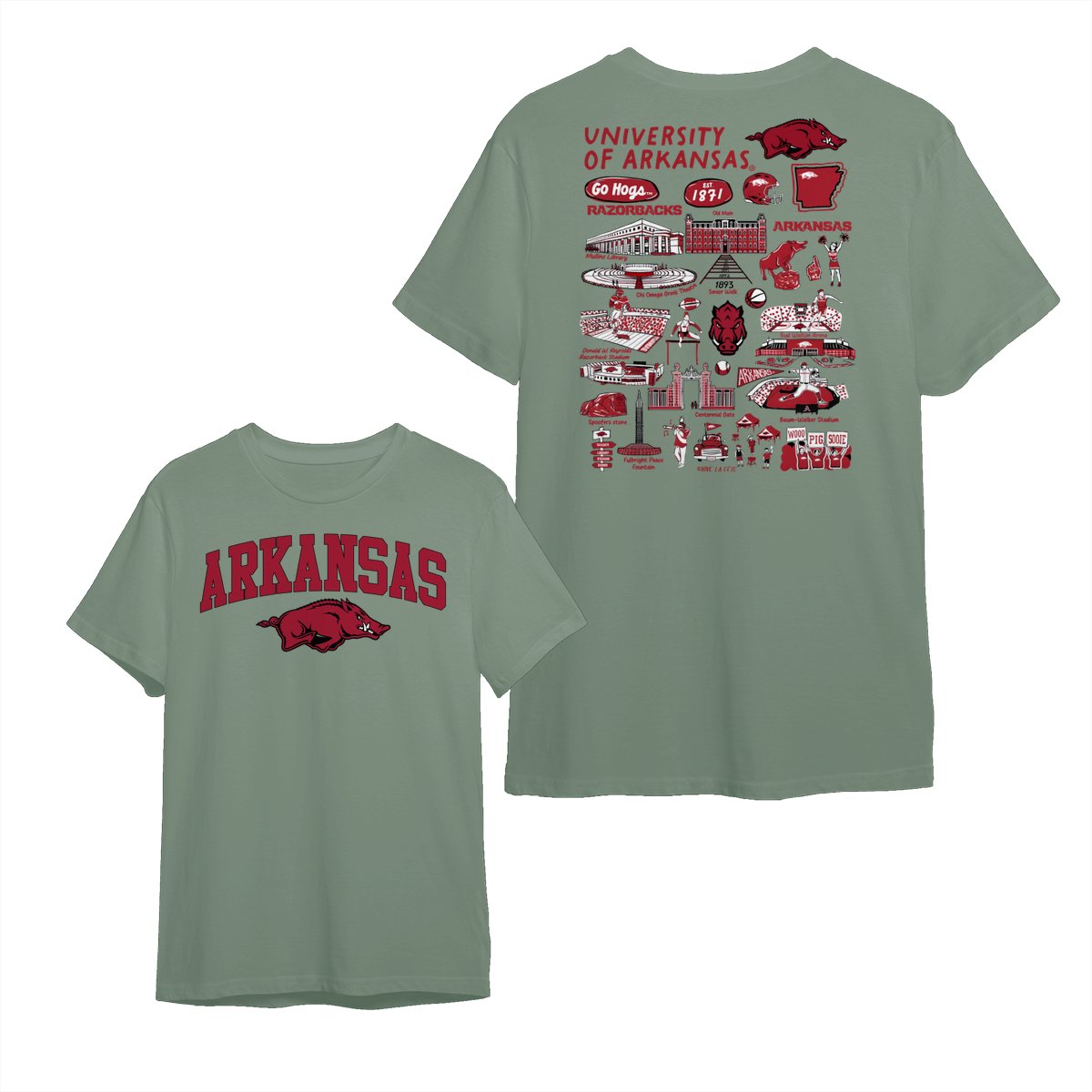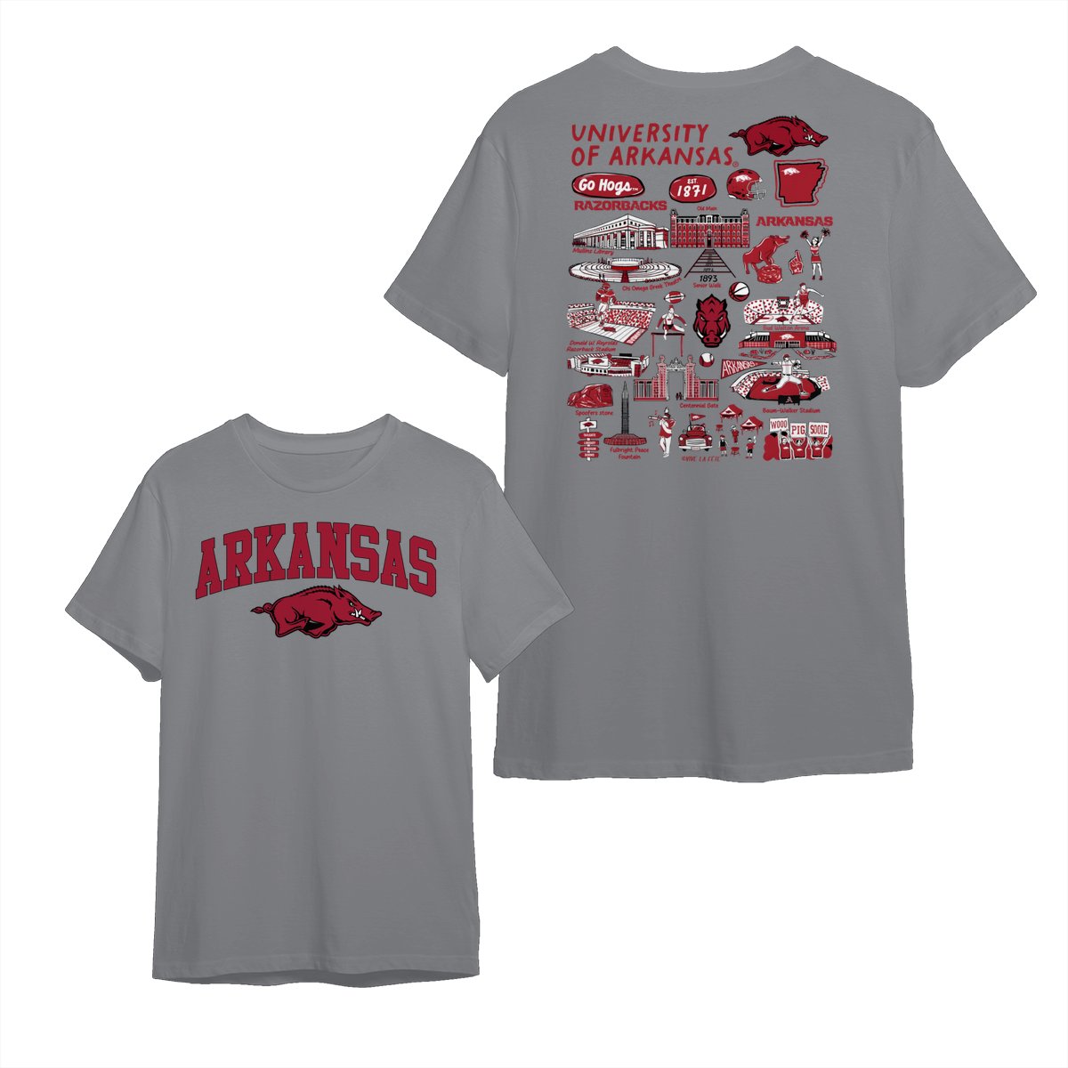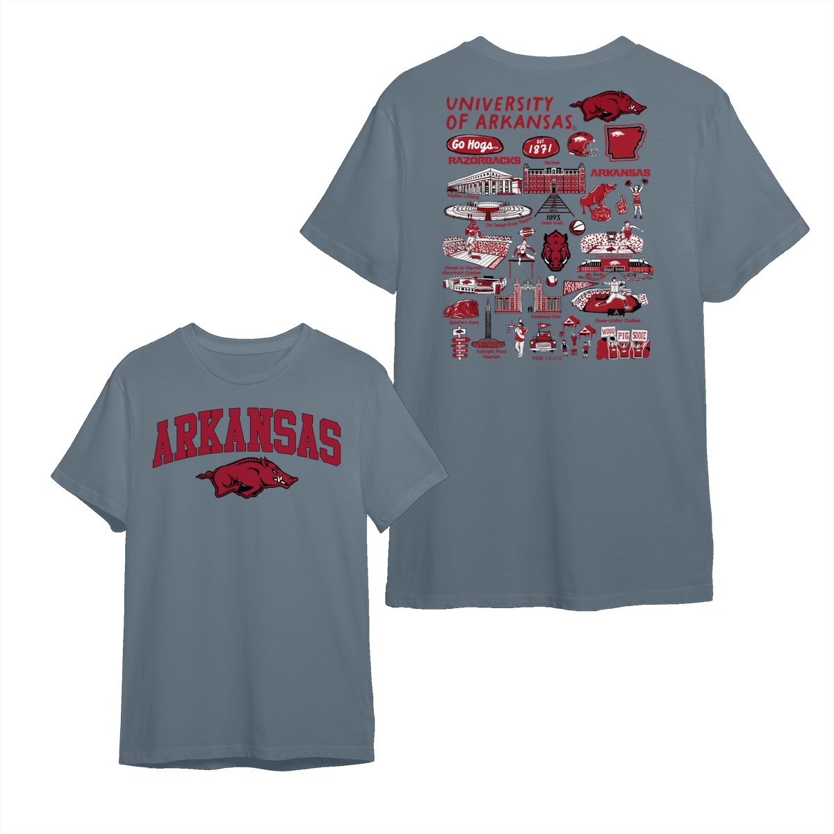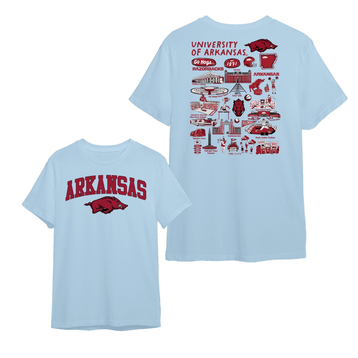 Arkansas Team College NCAA Graphic T-Shirts – Hand-Drawn Logo & Campus Designs, Unisex Style, Perfect for Fans, Mens and Womens Gift, Comfortable Casual Wear for Sports Lovers