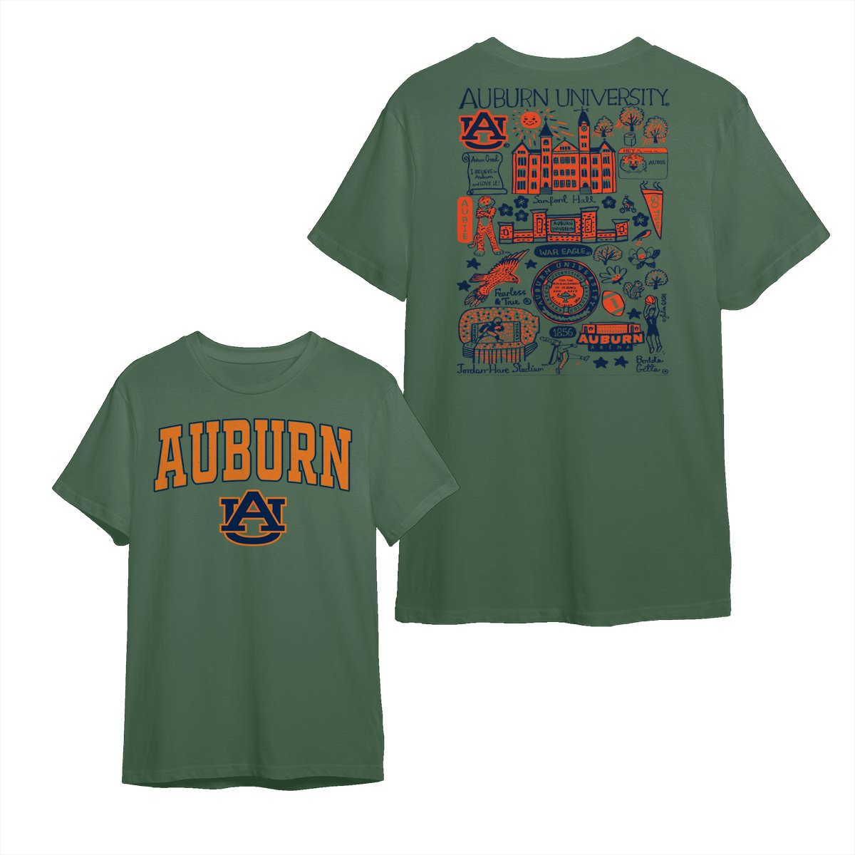 Auburn Tiger Team College NCAA Graphic T-Shirts – Hand-Drawn Logo & Campus Designs, Unisex Style, Perfect for Fans, Mens and Womens Gift, Comfortable Casual Wear for Sports Lovers