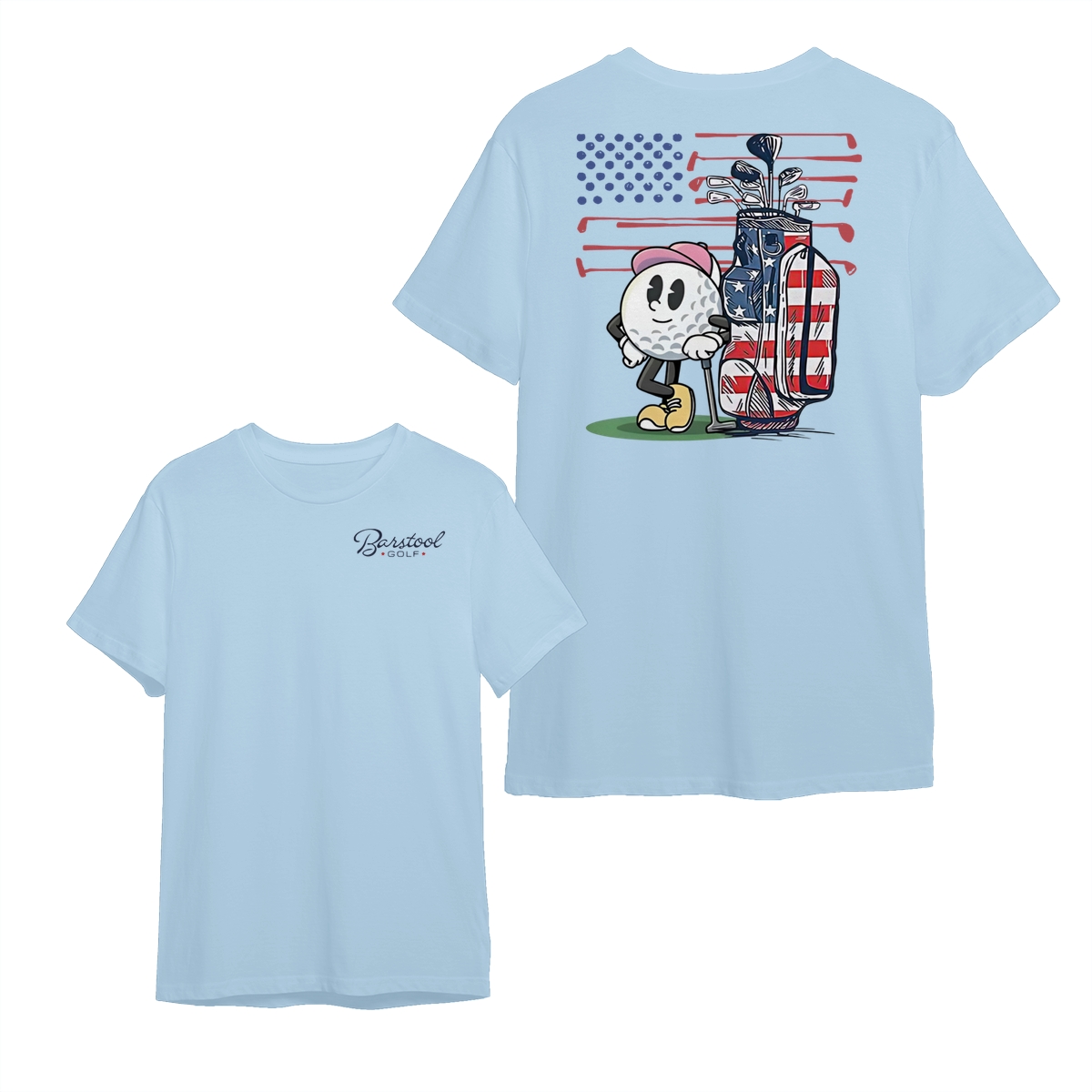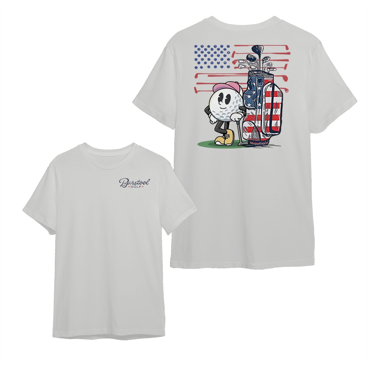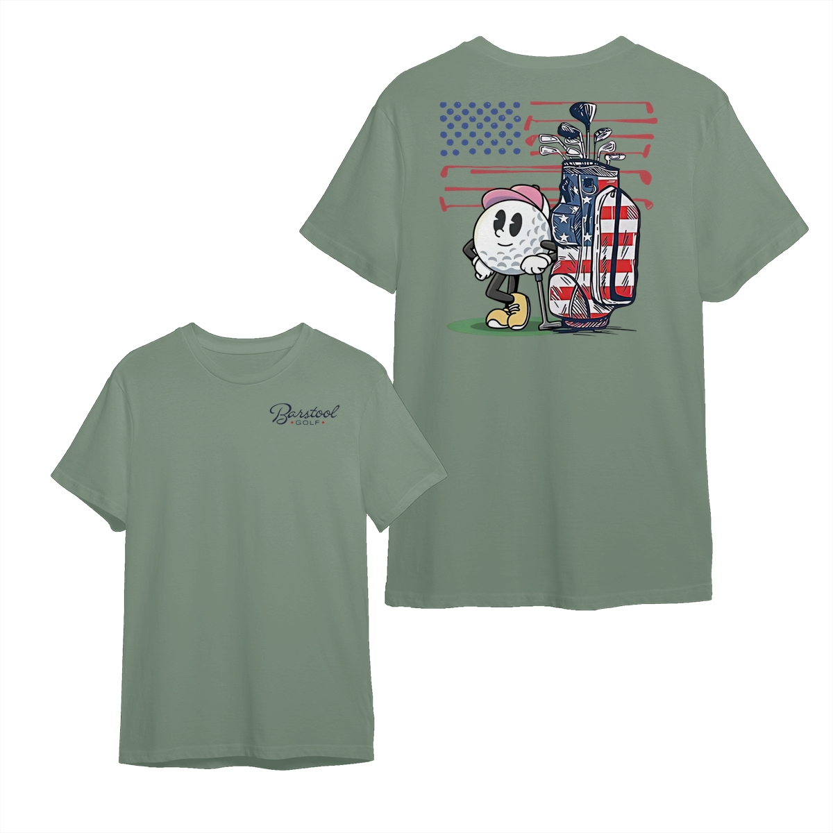 Barstoolll Golf Graphic Tee for 4th of July, Patriotic Gift for Men and Women, Soft Cotton Shirt with USA Flag, olf Bag Design, Trendy Shirt