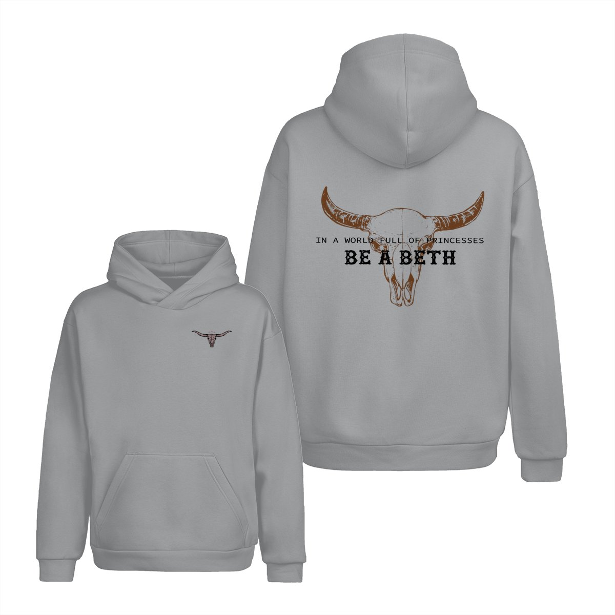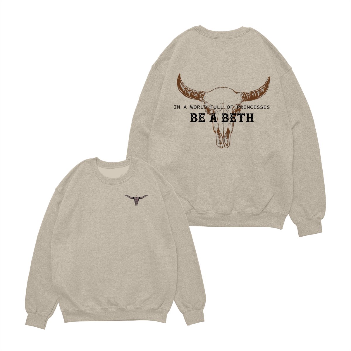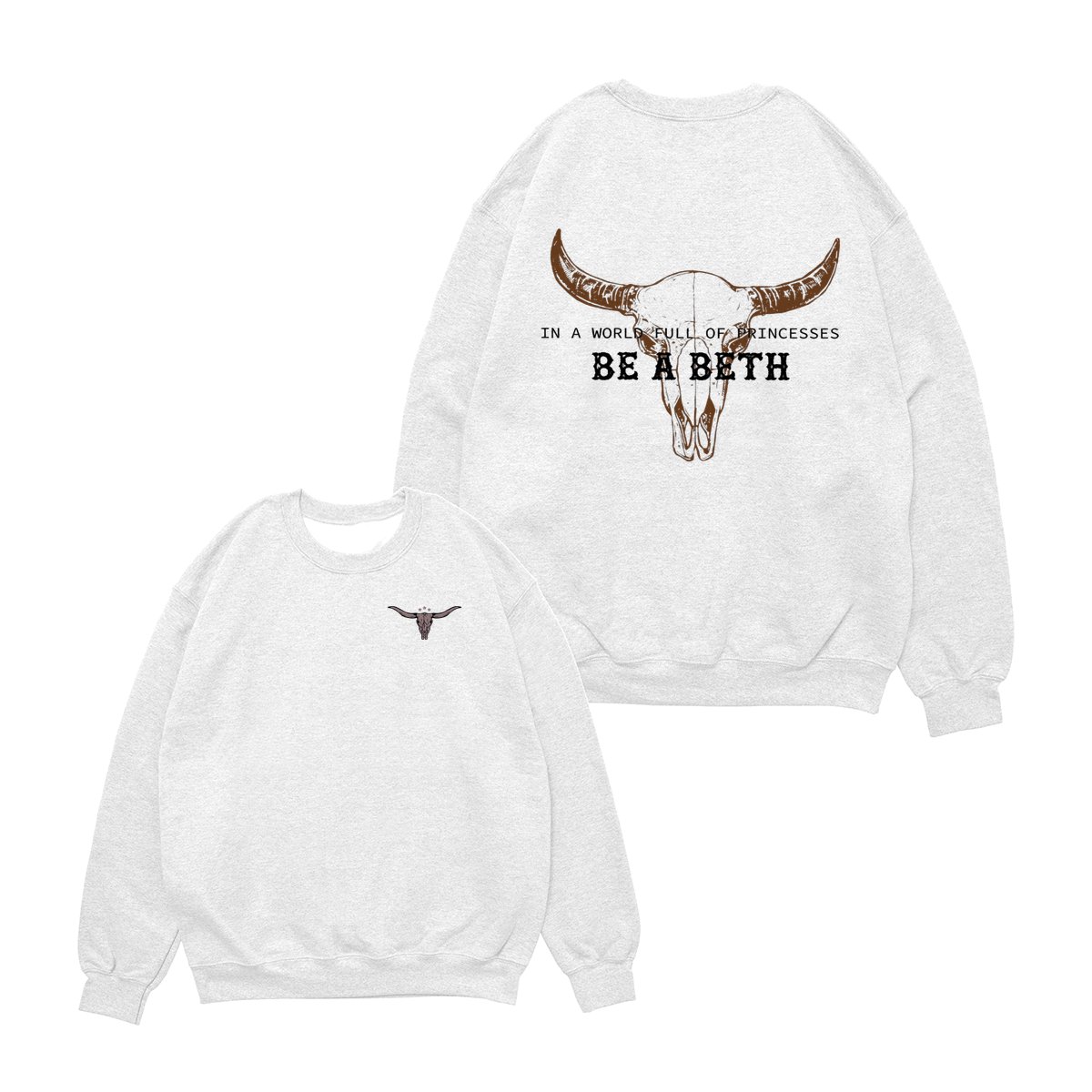 Be a Beth TShirt/Sweatshirt/Hoodie – Rustic Cow Skull Artwork with Empowering Quote, Perfect for Yellowstone Fans and Tough Country Girls – Bold & Feminine Outerwea