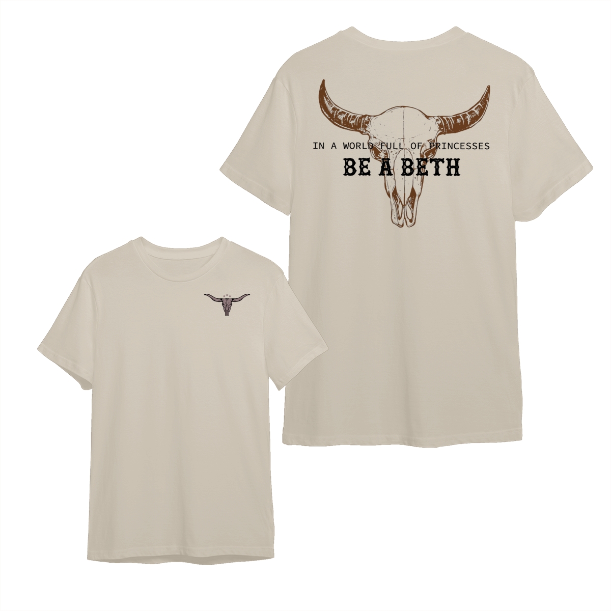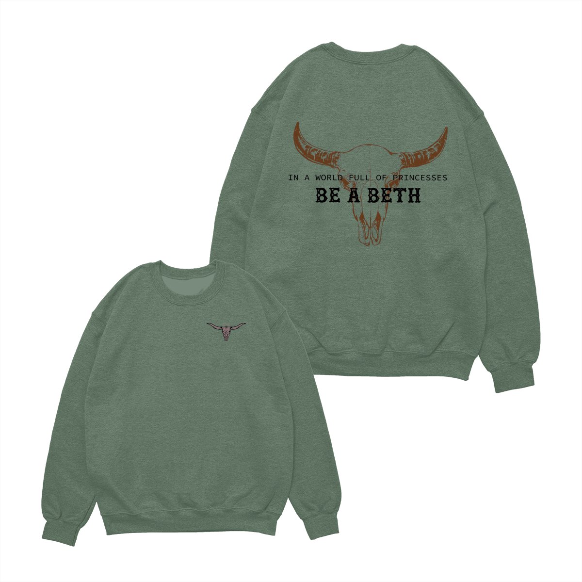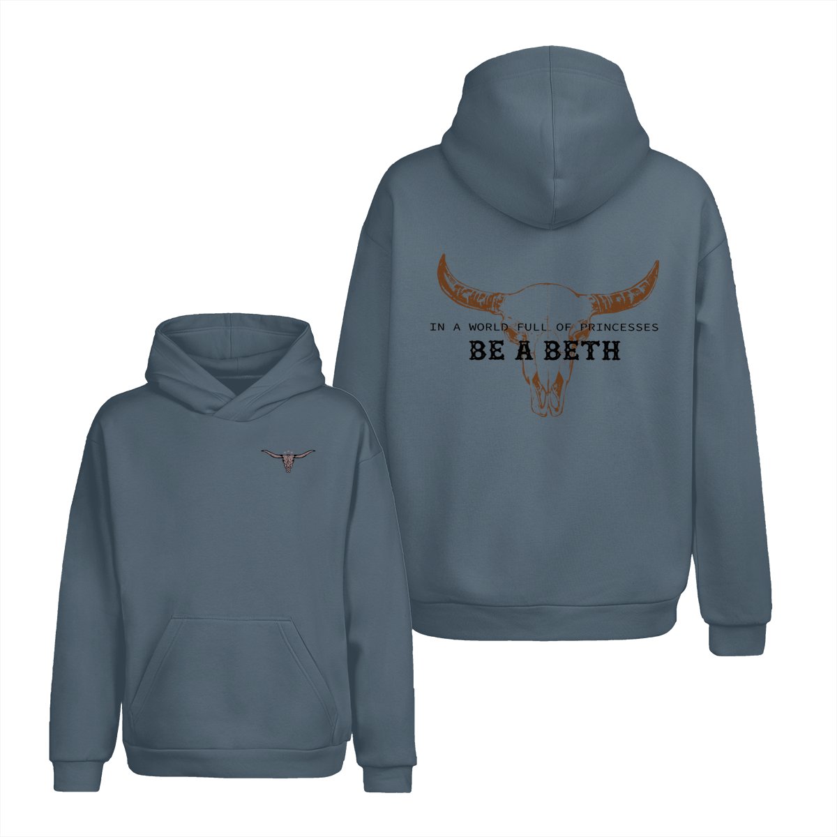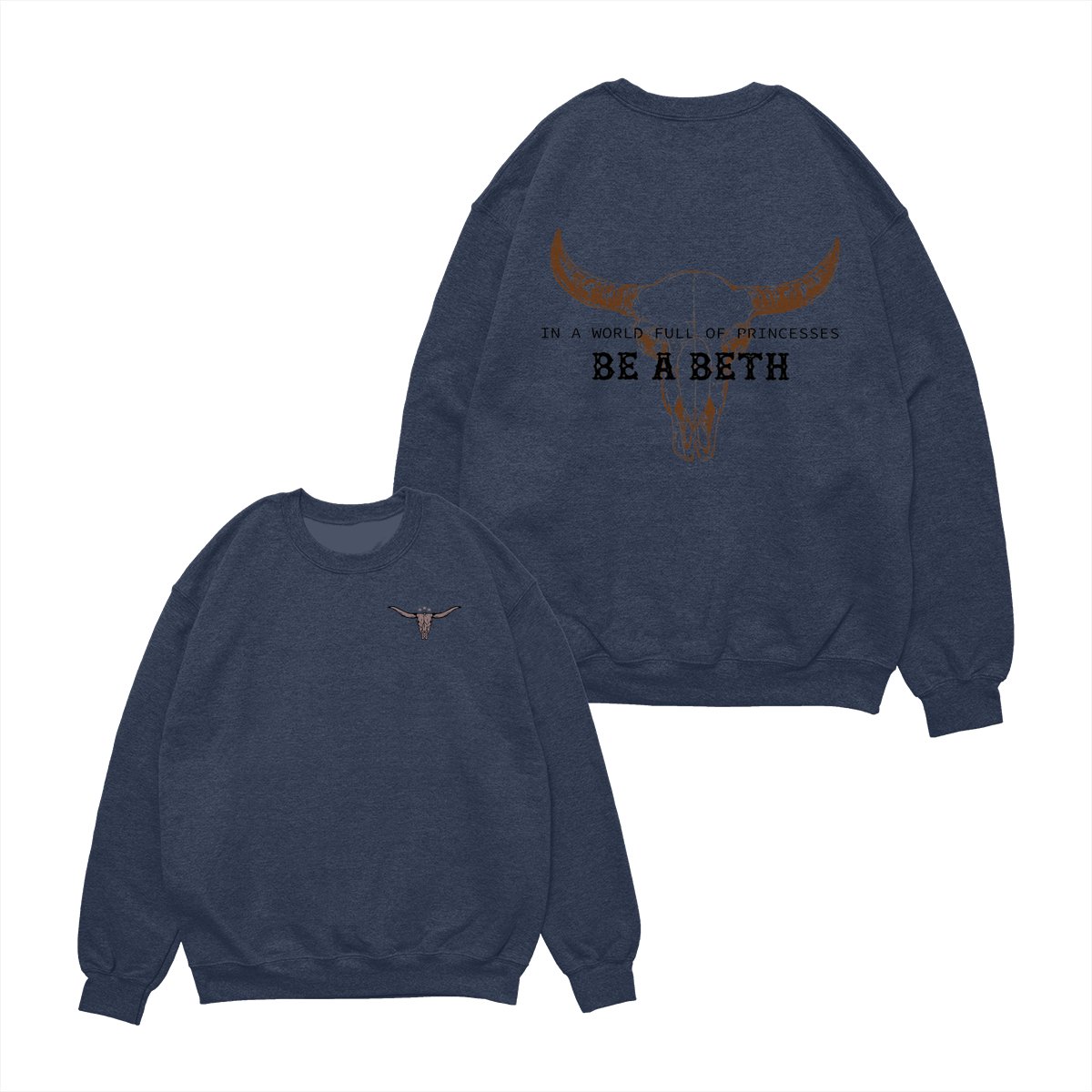 Be a Beth TShirt/Sweatshirt/Hoodie – Rustic Cow Skull Artwork with Empowering Quote, Perfect for Yellowstone Fans and Tough Country Girls – Bold & Feminine Outerwea