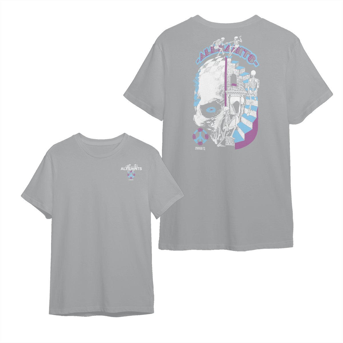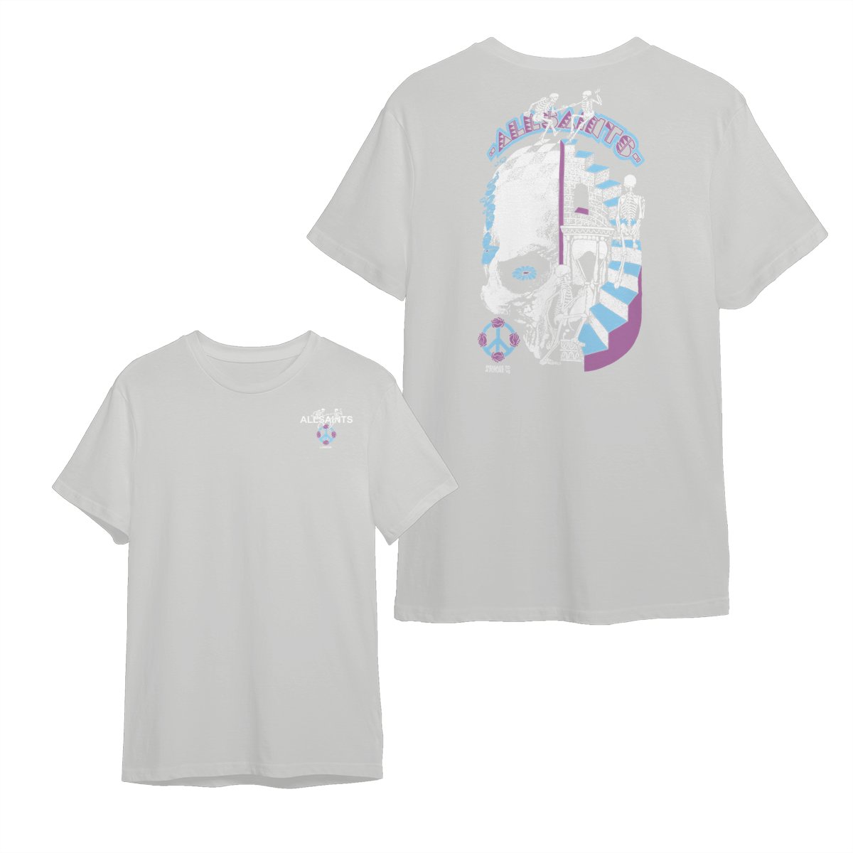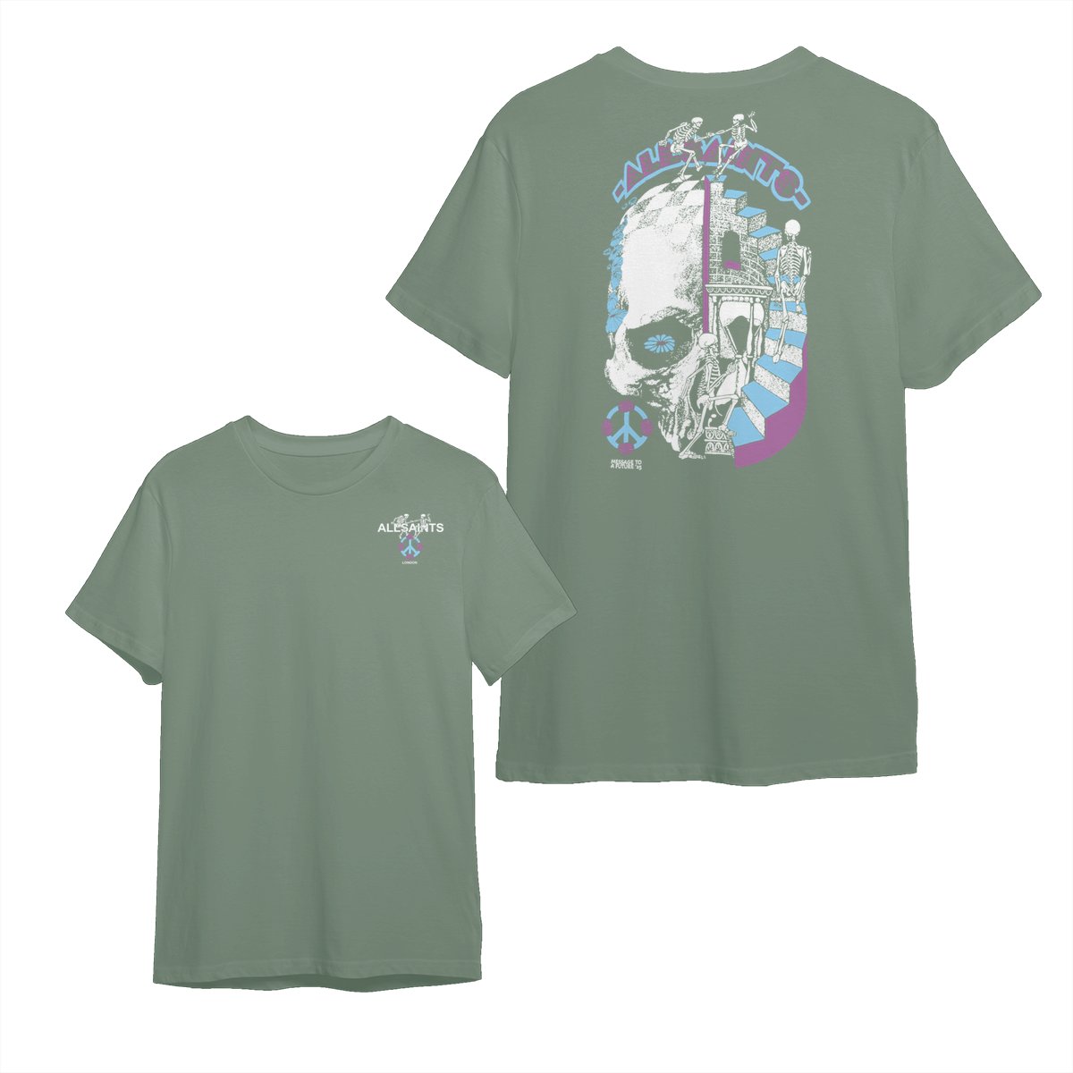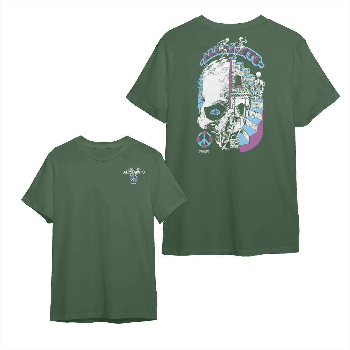 Black AllSaints Skull Peace Graphic T-Shirt – 2side Retro Graphic Tee, Skeleton Art Streetwear, Trippy Unisex Shirt, Peace Symbol Tee, Bold Urban Look