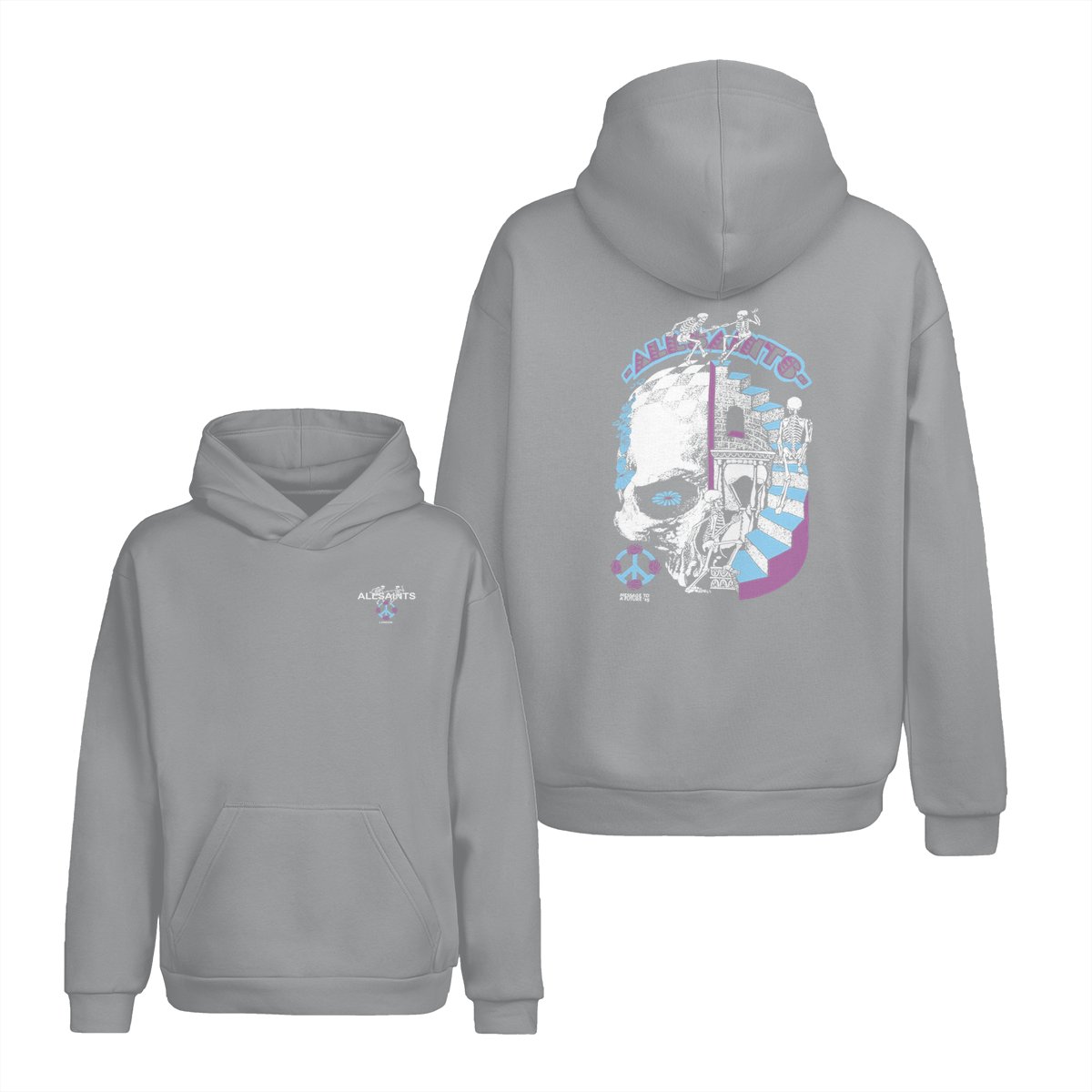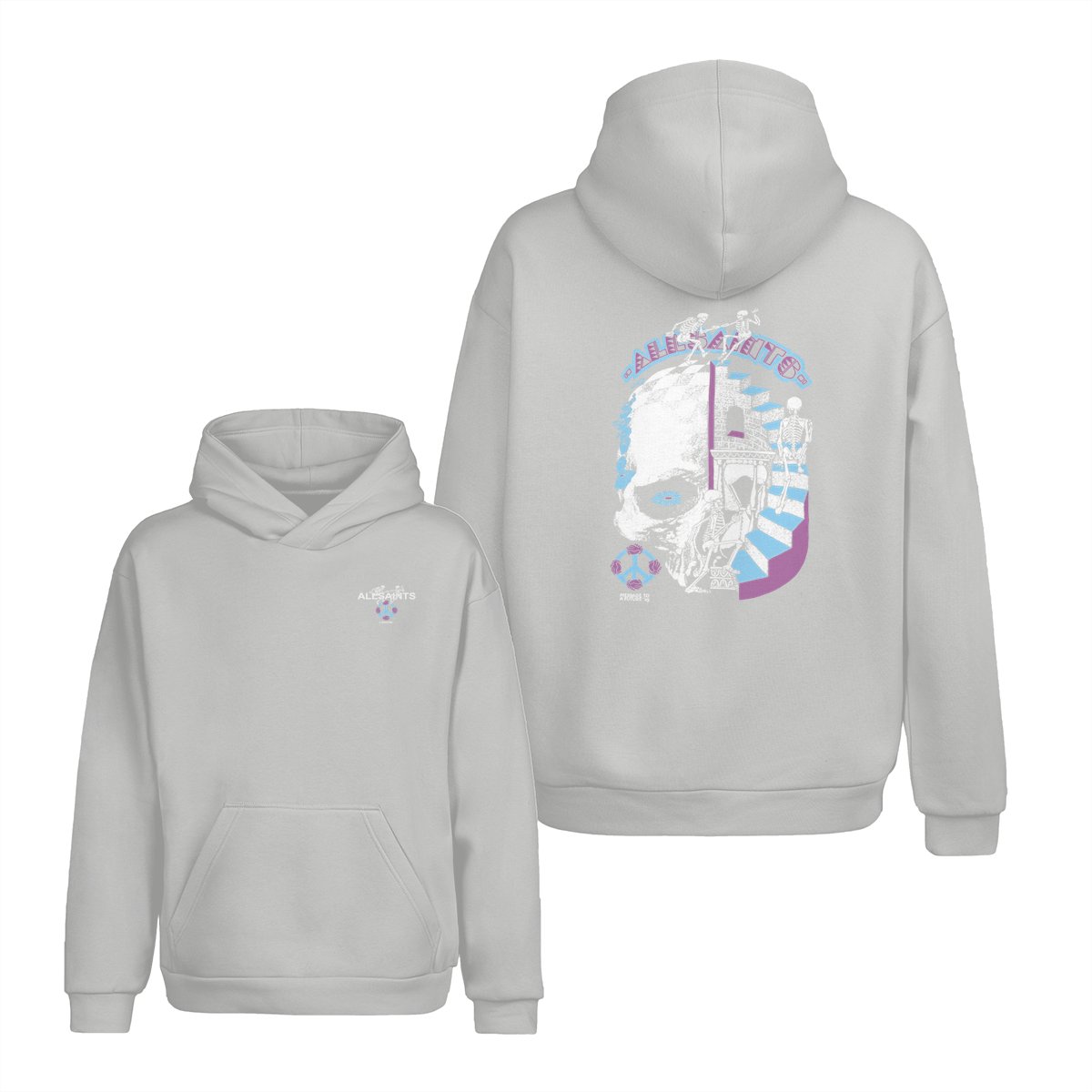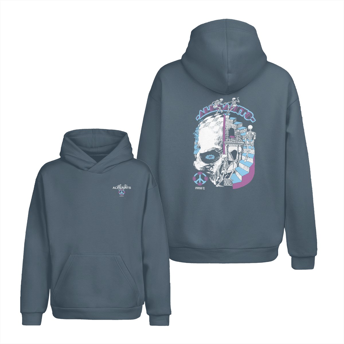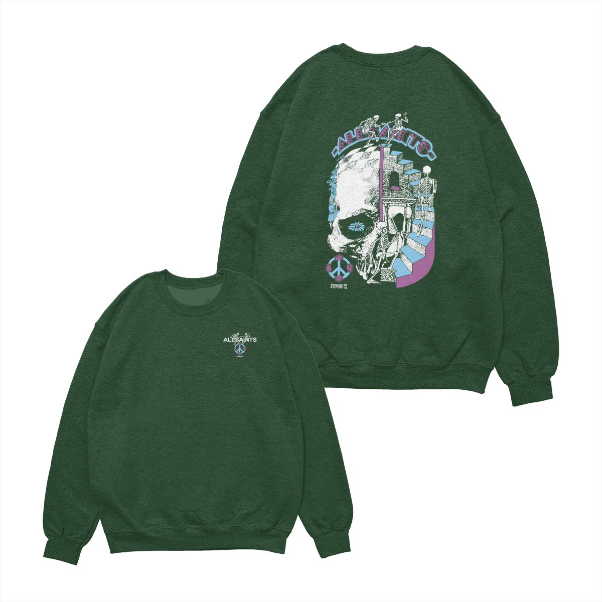 Black AllSaints Skull Peace Graphic T-Shirt – 2side Retro Graphic Tee, Skeleton Art Streetwear, Trippy Unisex Shirt, Peace Symbol Tee, Bold Urban Look