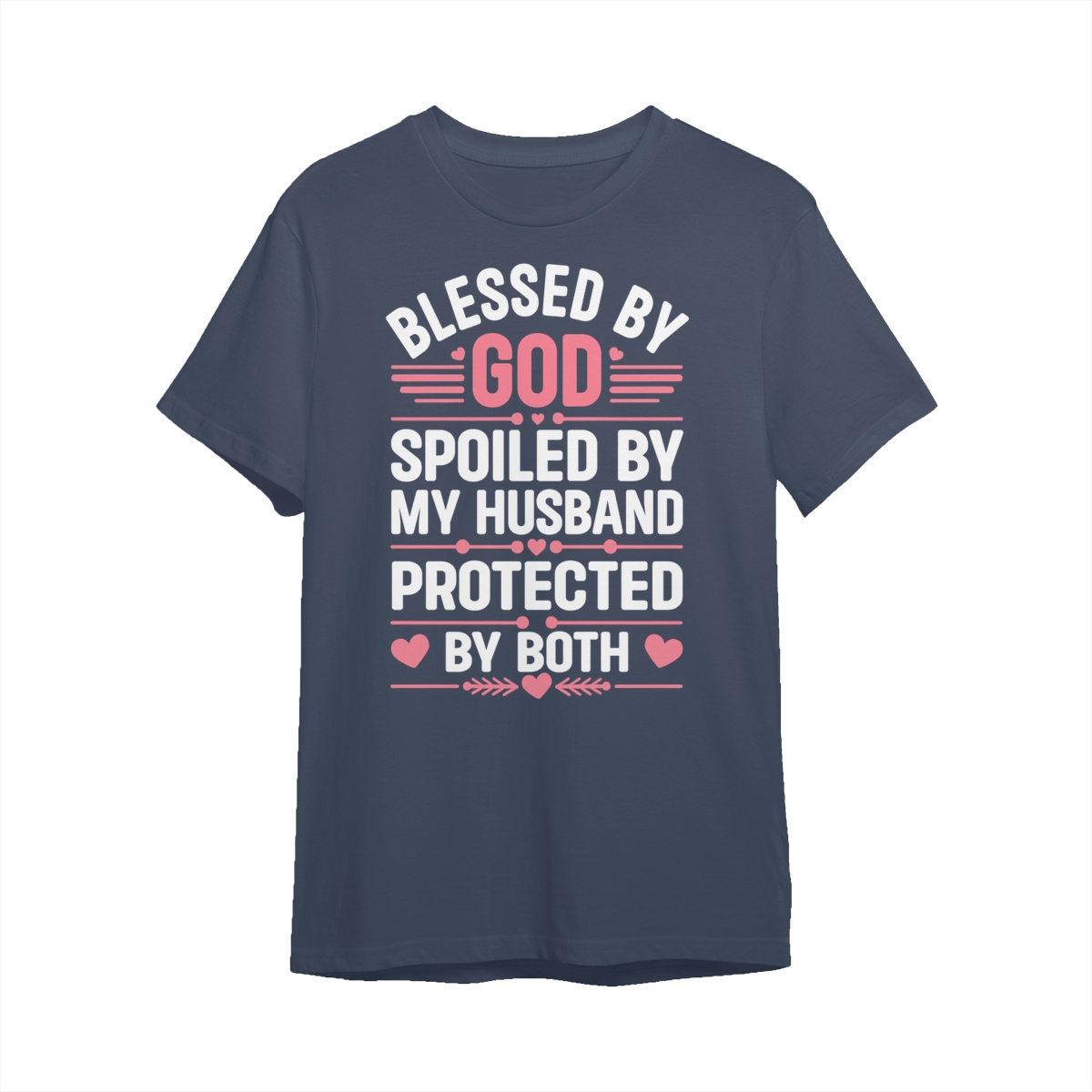 Blessed by God Spoiled by My Husband Protected by Both Shirt, Gifts for Mom, Gift for Wife, Mother’s Day Gift Unisex Classic Cotton T-shirt for Women