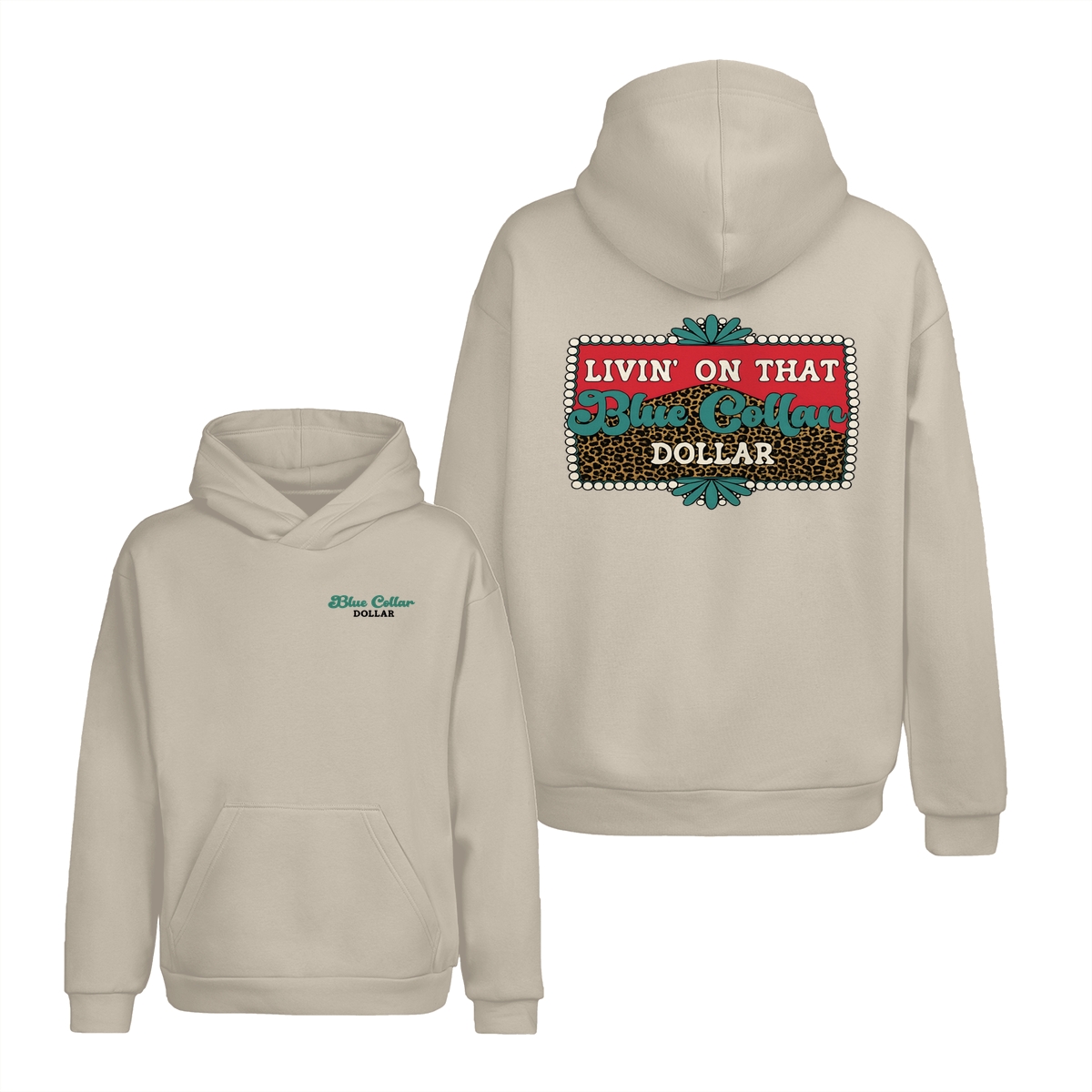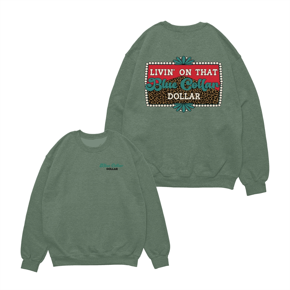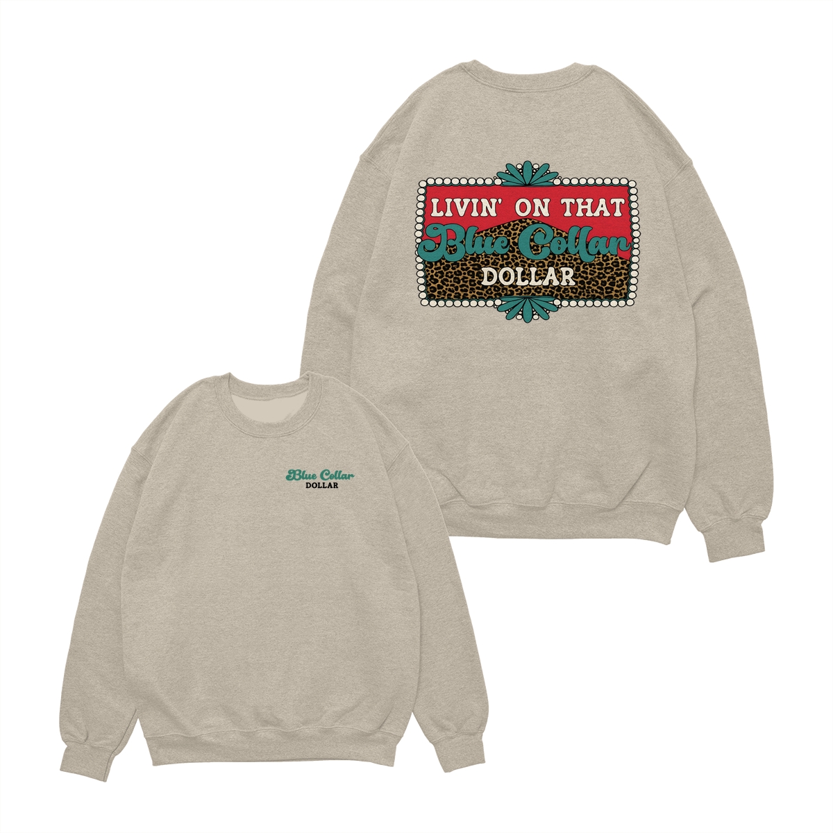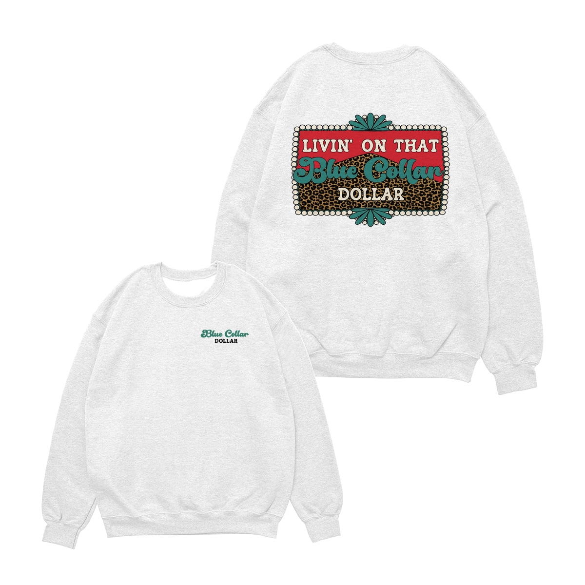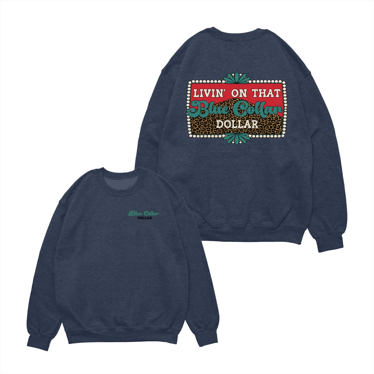 Blue Collar Dollar Brand Livin’ On That Blue Collar Dollar Tshirt Menswear Crewneck Short Sleeve Casual Tropical White 100% Cotton Breathable Comfortable Non-Toxic Ink Direct-to-Garment Printing Made to Order Tops