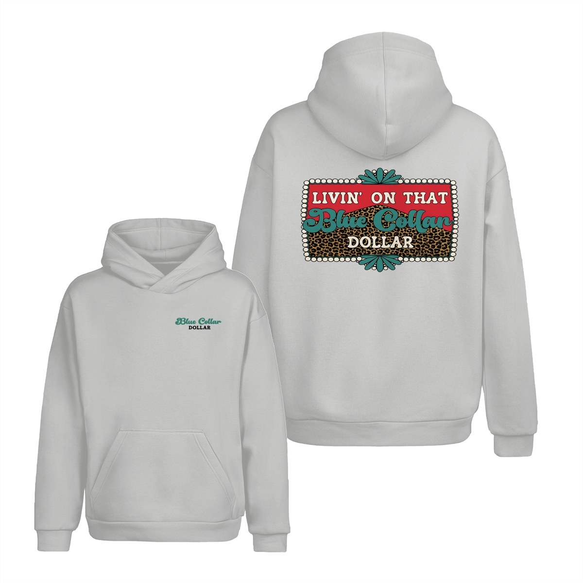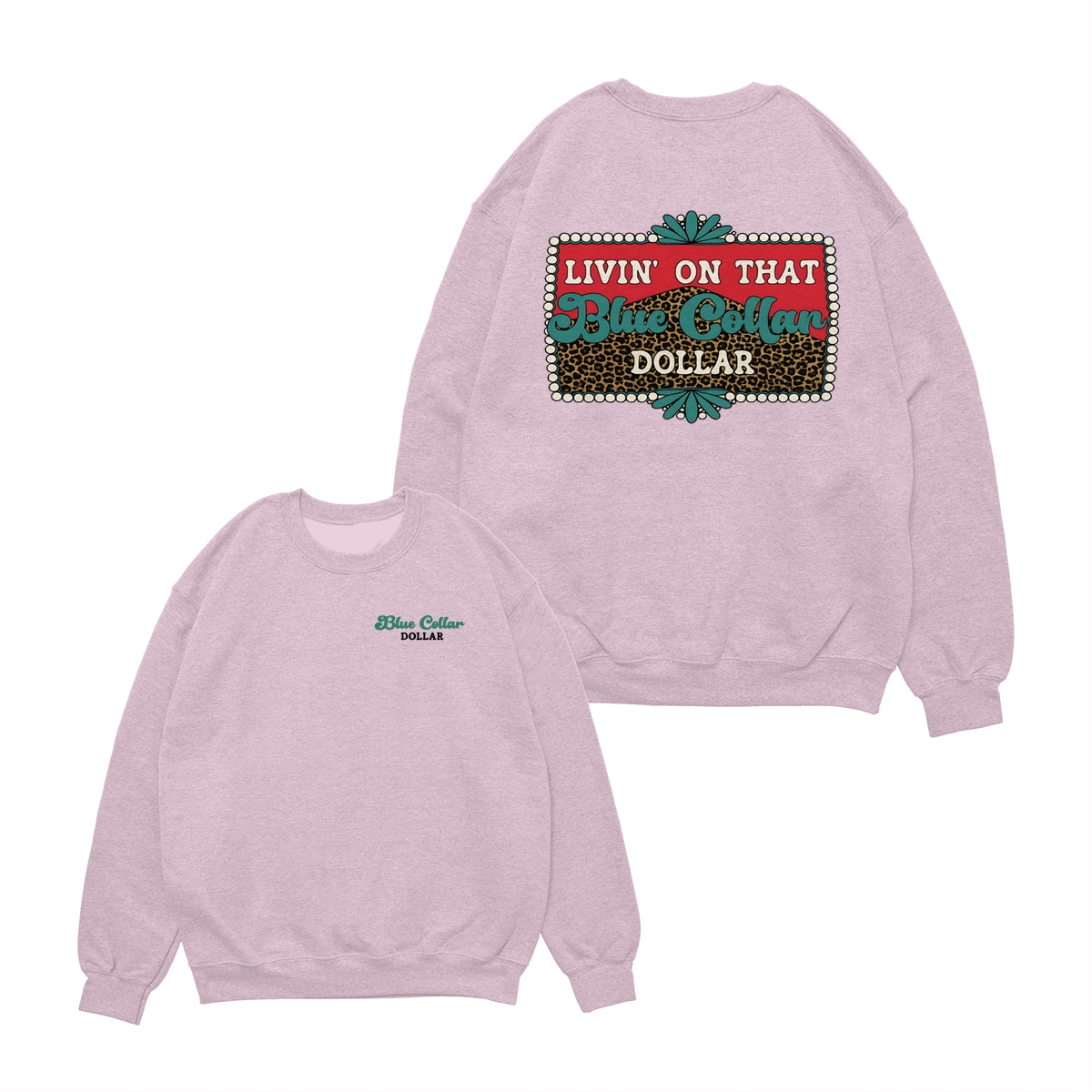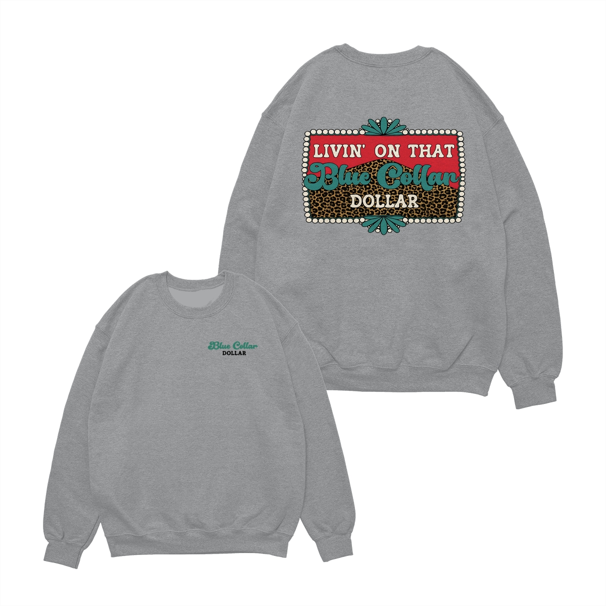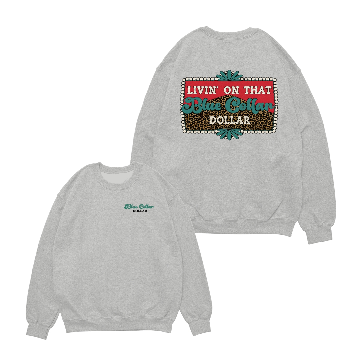 Blue Collar Dollar Brand Livin’ On That Blue Collar Dollar Tshirt Menswear Crewneck Short Sleeve Casual Tropical White 100% Cotton Breathable Comfortable Non-Toxic Ink Direct-to-Garment Printing Made to Order Tops