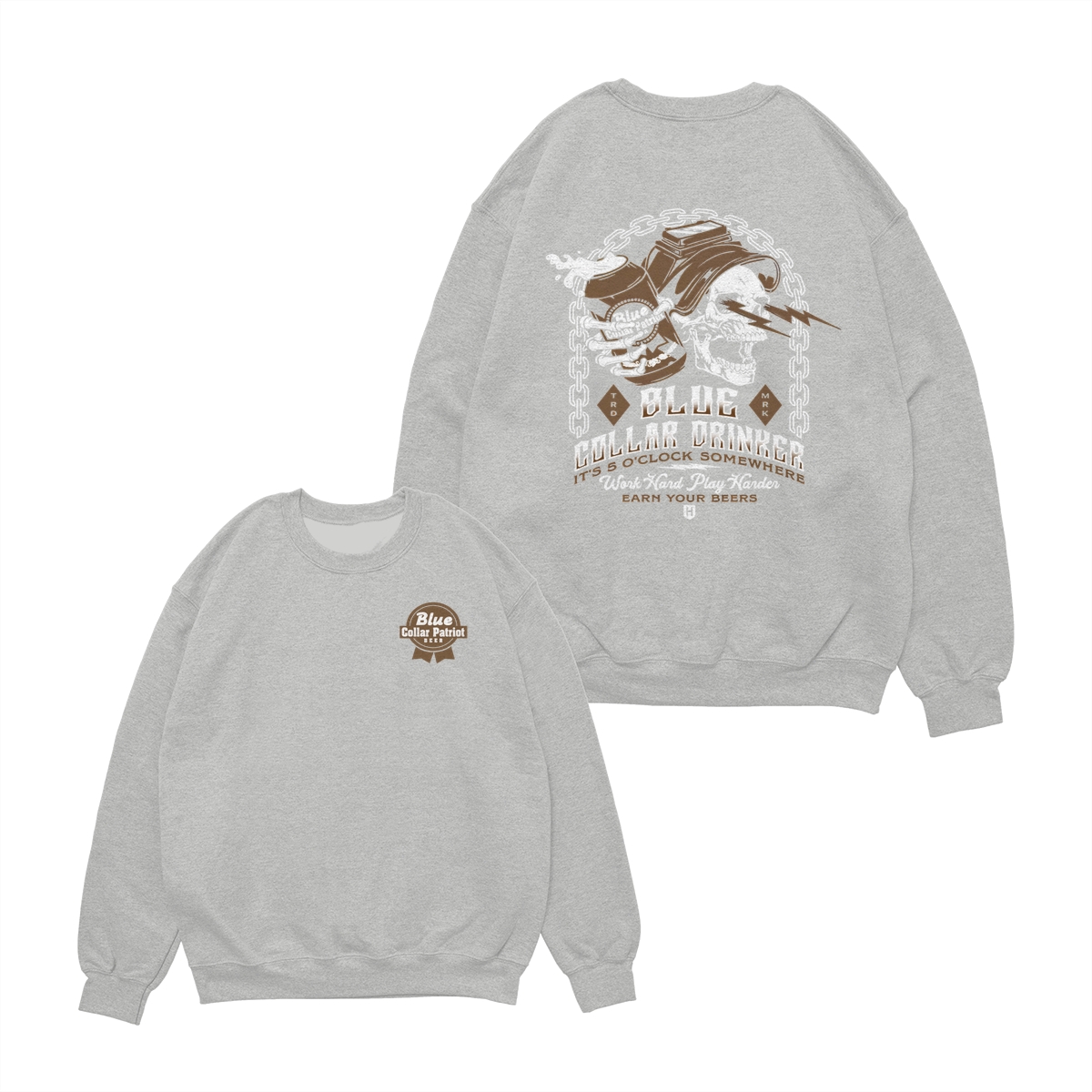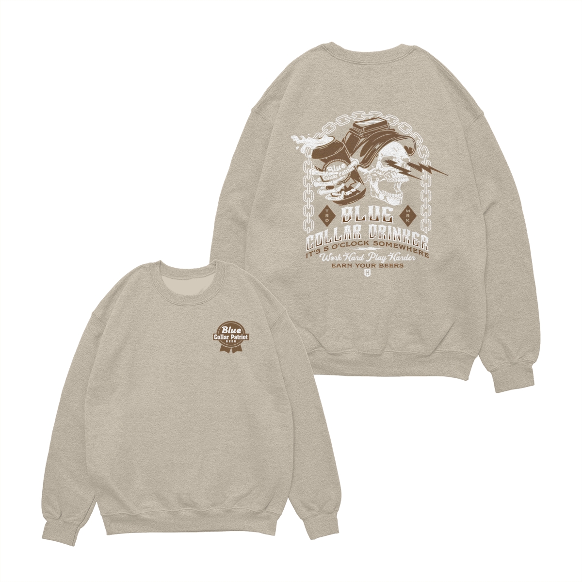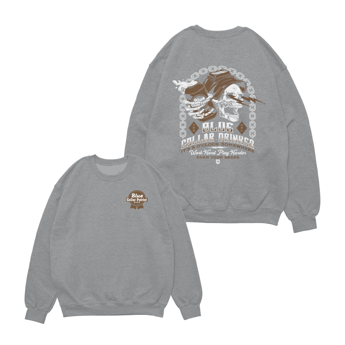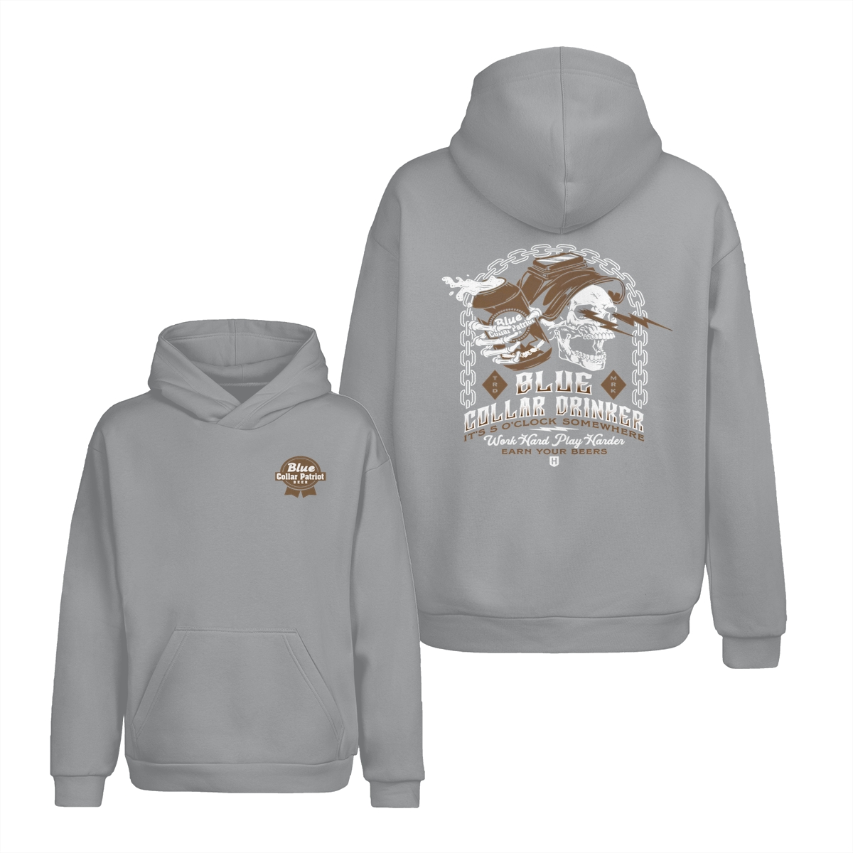 Blue Collar Drinker TShirt/Sweatshirt/Hoodie – “Work Hard, Play Harder, Earn Your Beers” Patriotic Beer Skull Design | Unisex Grit Streetwear, Working Man Style, American Pride Gear, Beer Lover Gift, Patriotic Workwear, Skull Streetwear Hoodie