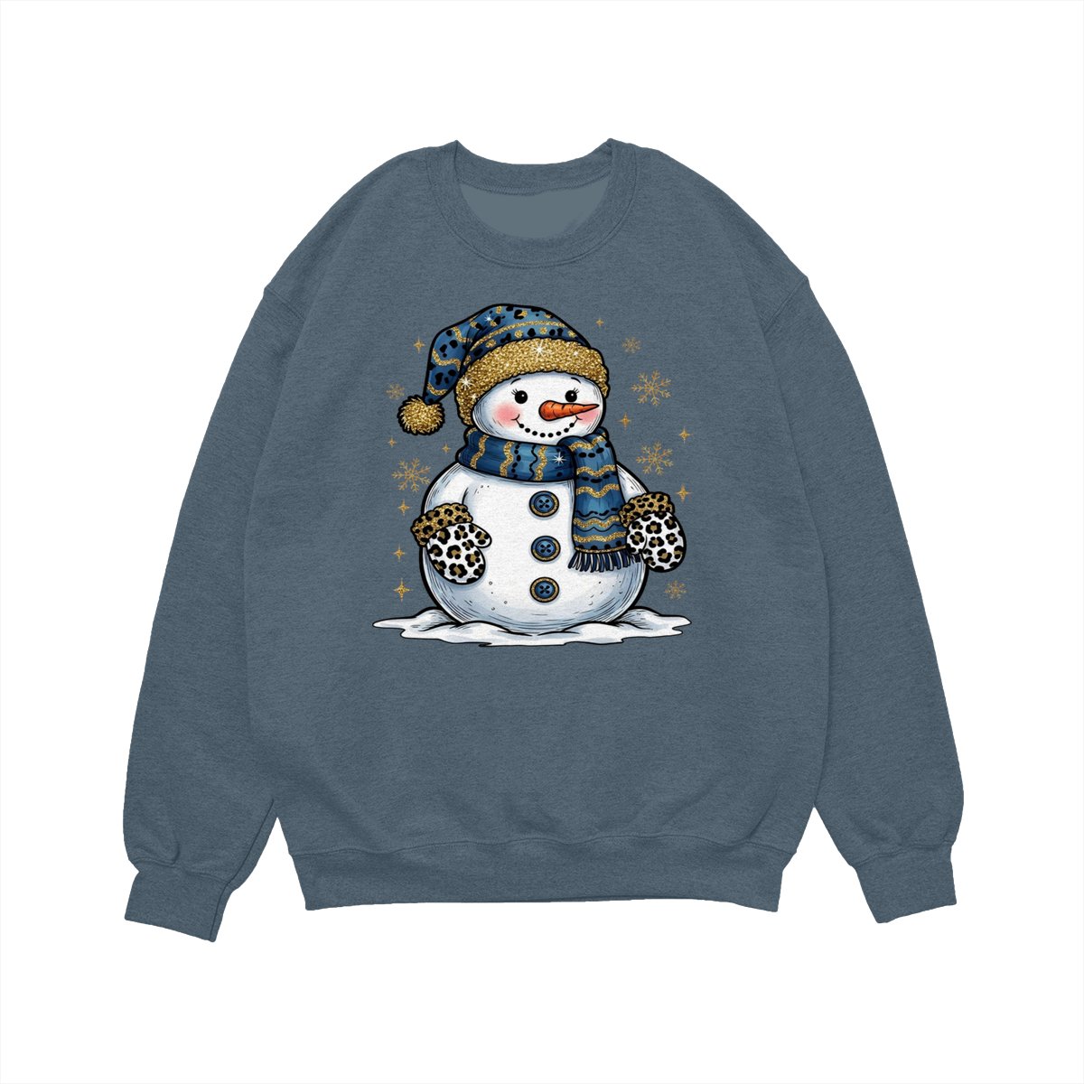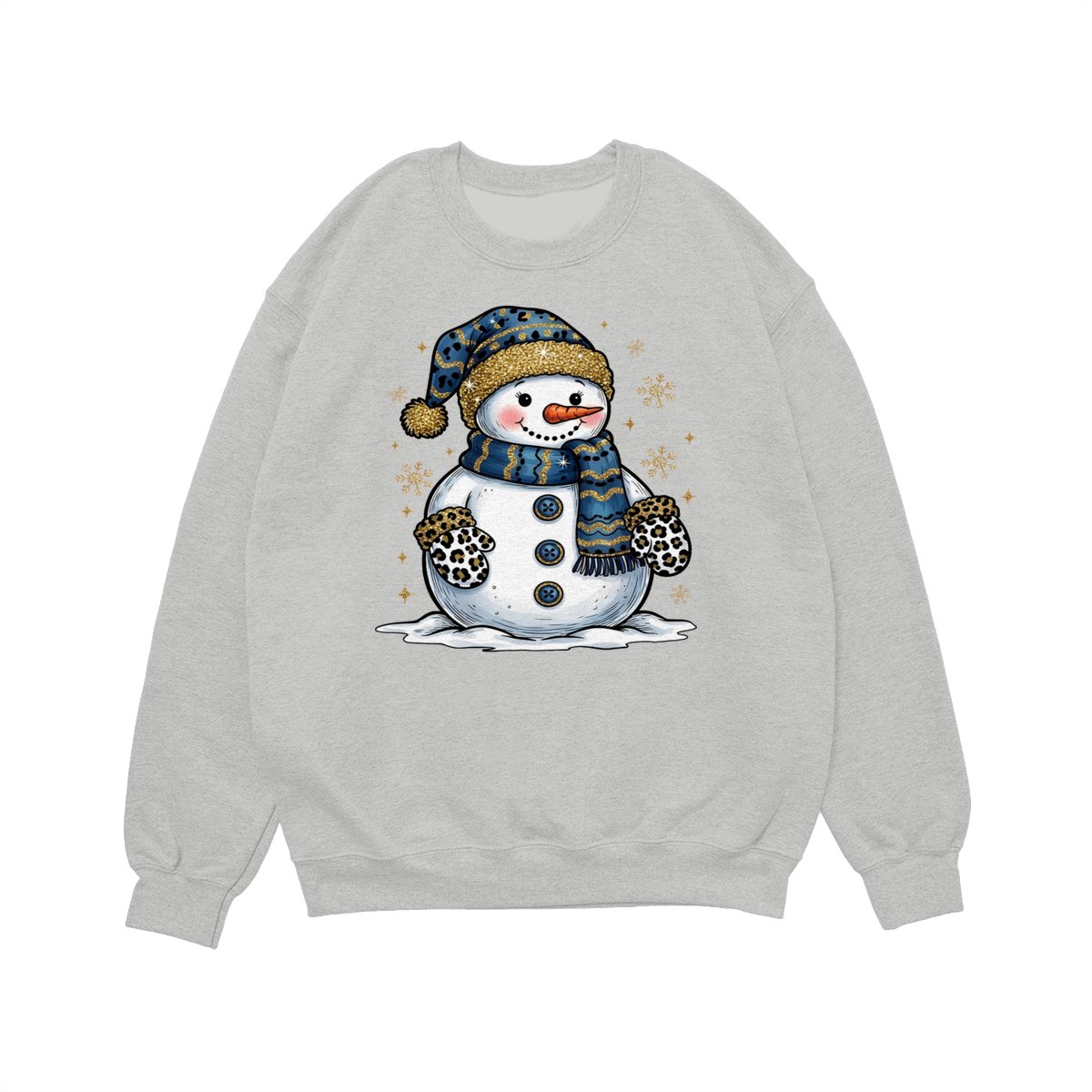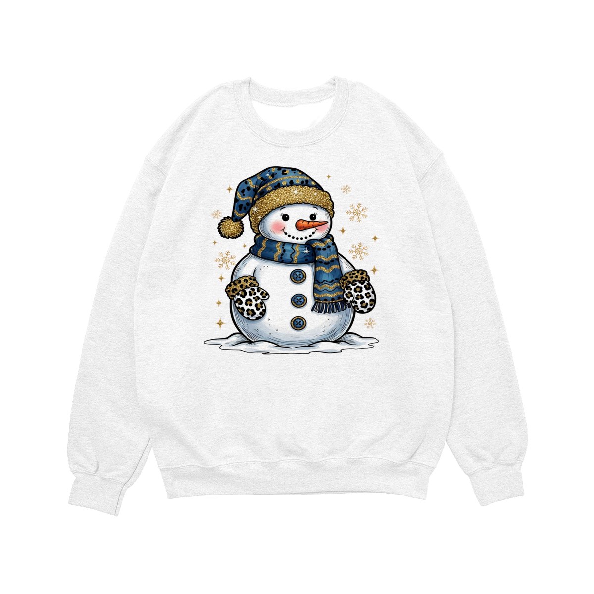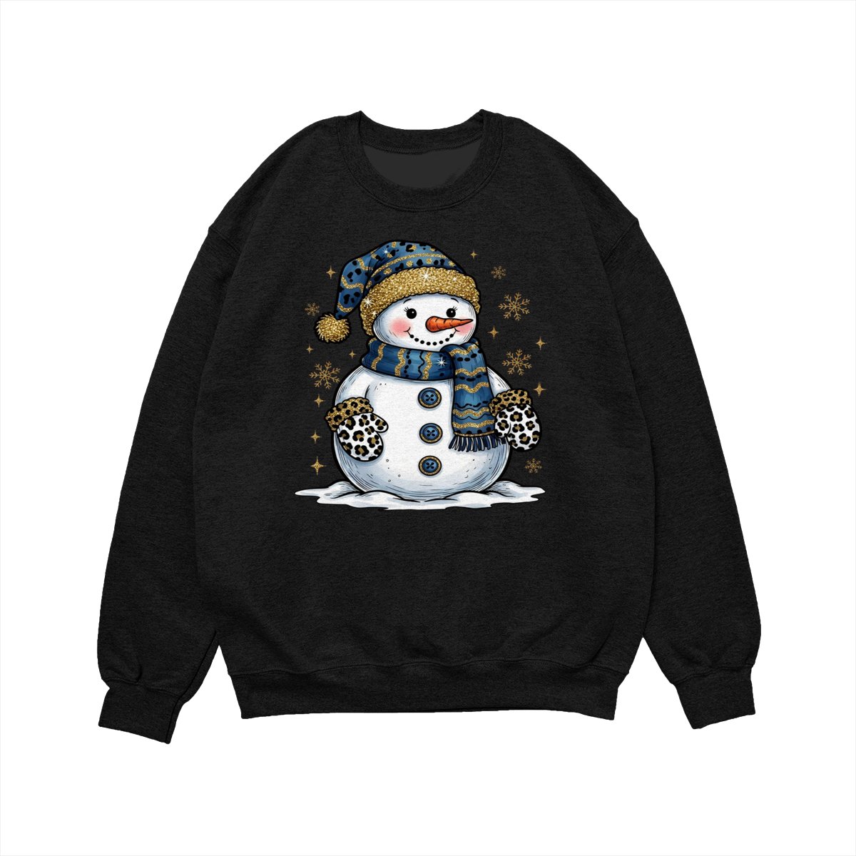 Blue Gold Leopard Snowman Sweat Shirt, Glitter Winter Christmas Snowman Sweatshirt, Cute Trendy Holiday Snowman Tee, Xmas Tee