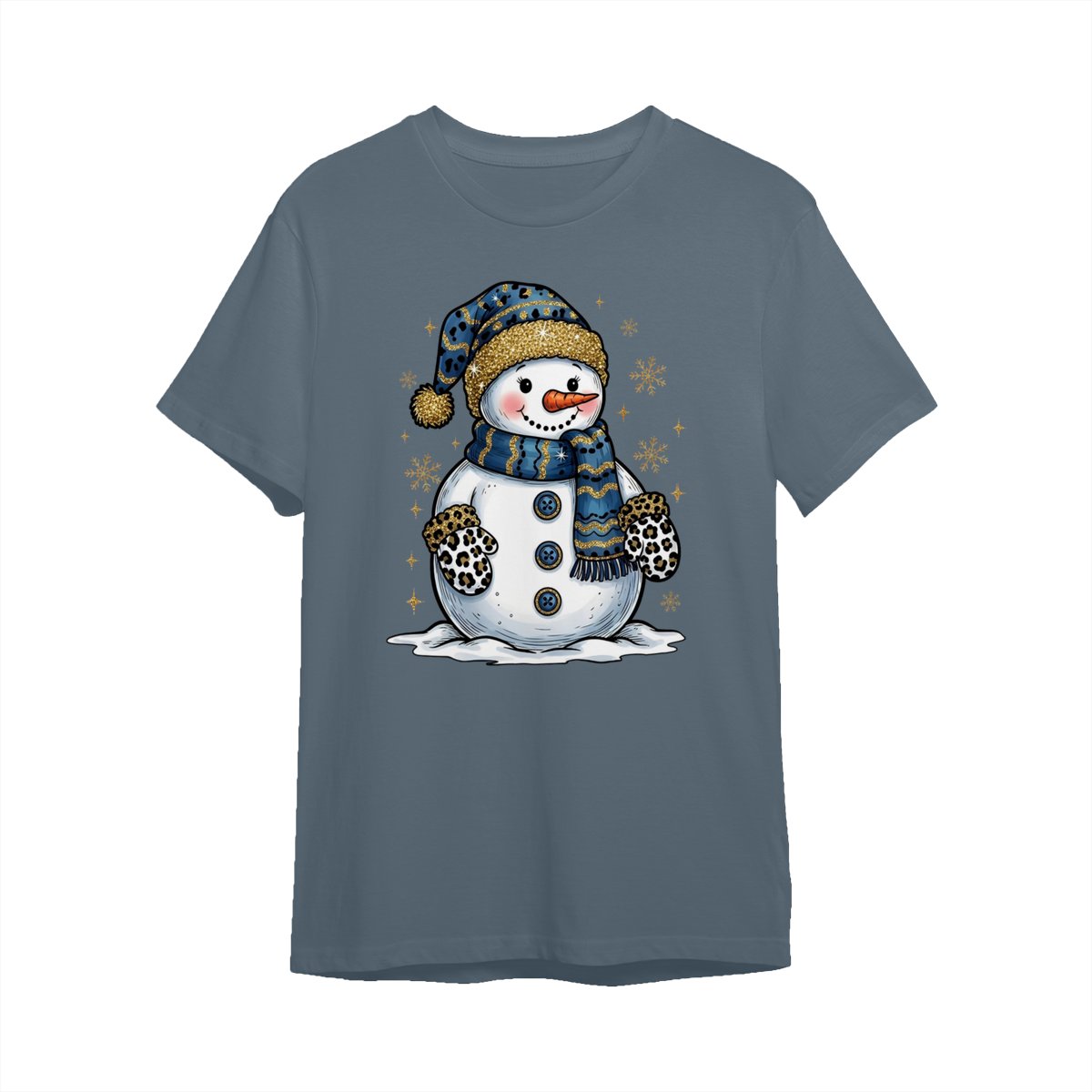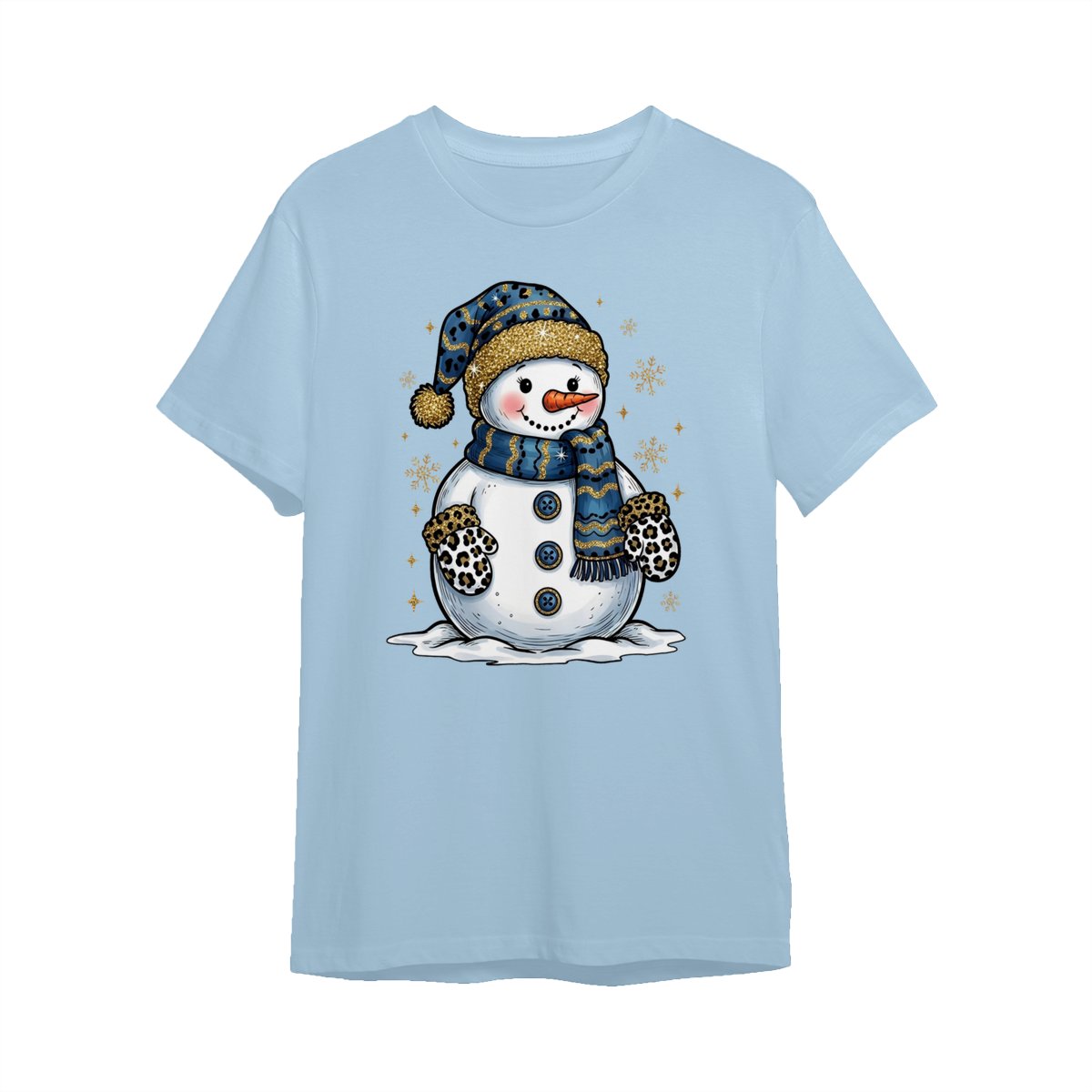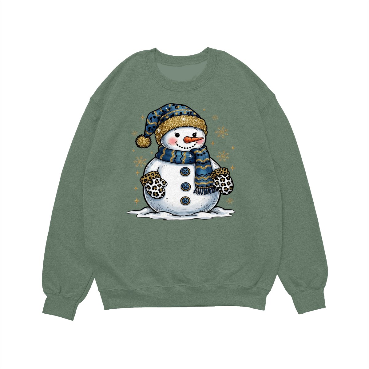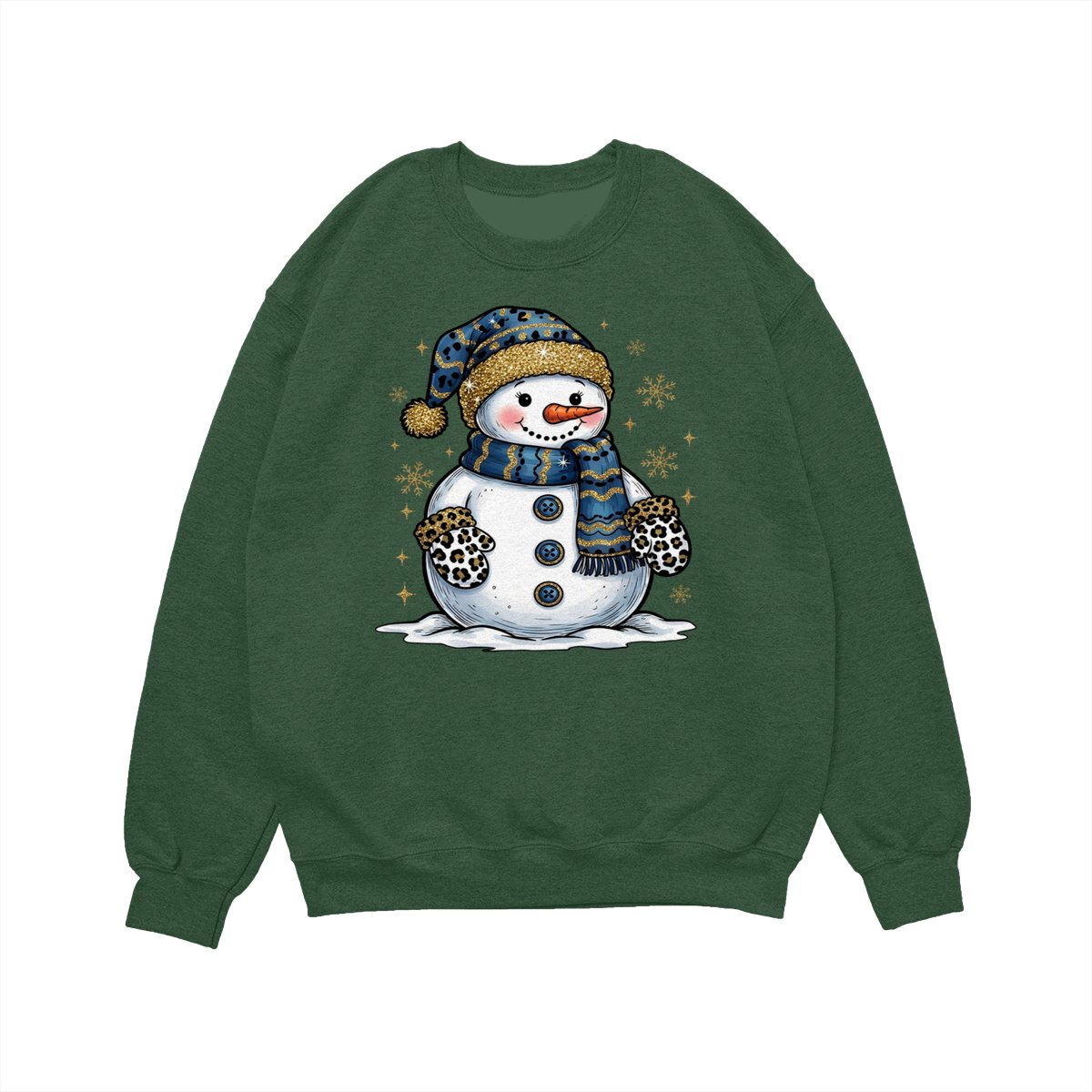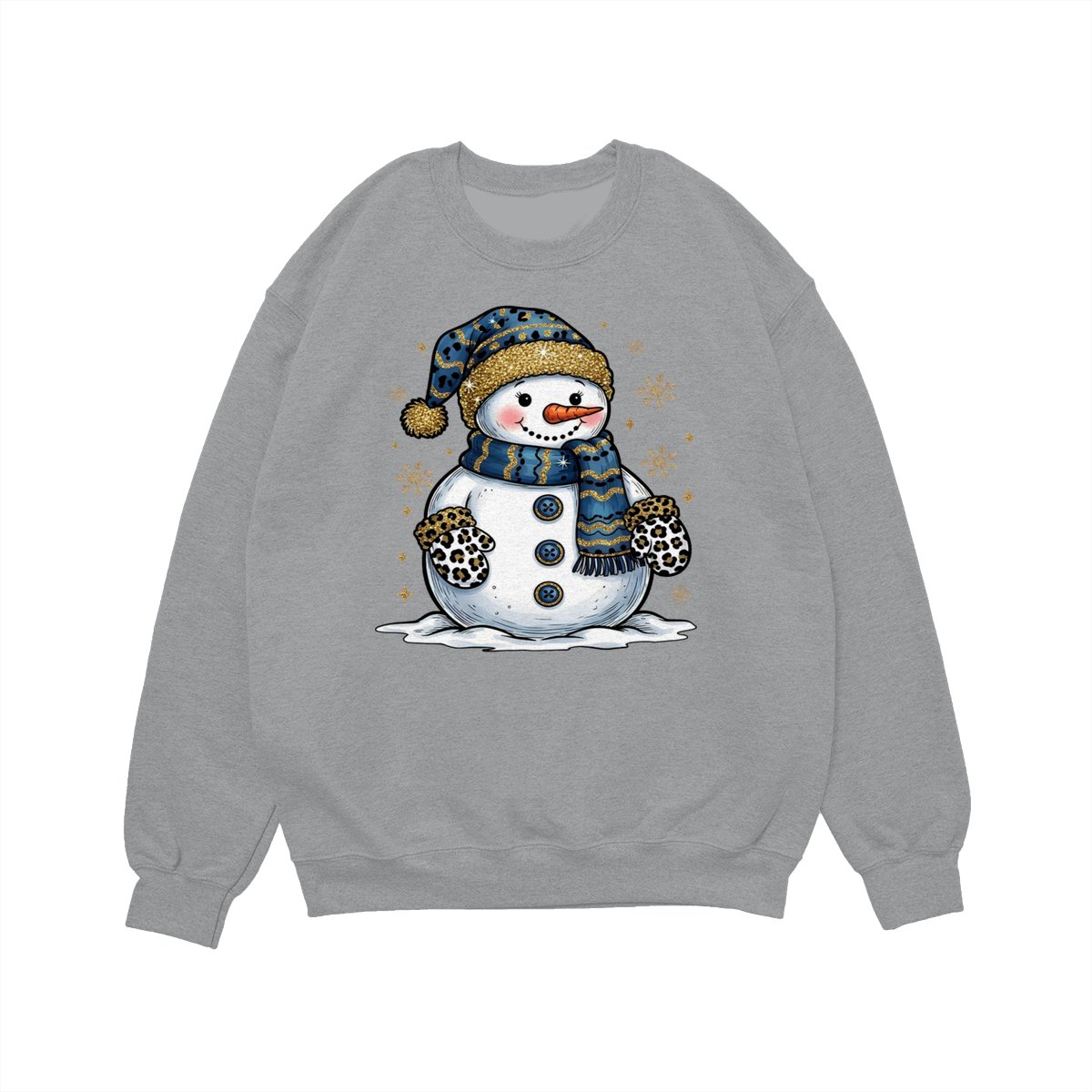 Blue Gold Leopard Snowman Sweat Shirt, Glitter Winter Christmas Snowman Sweatshirt, Cute Trendy Holiday Snowman Tee, Xmas Tee