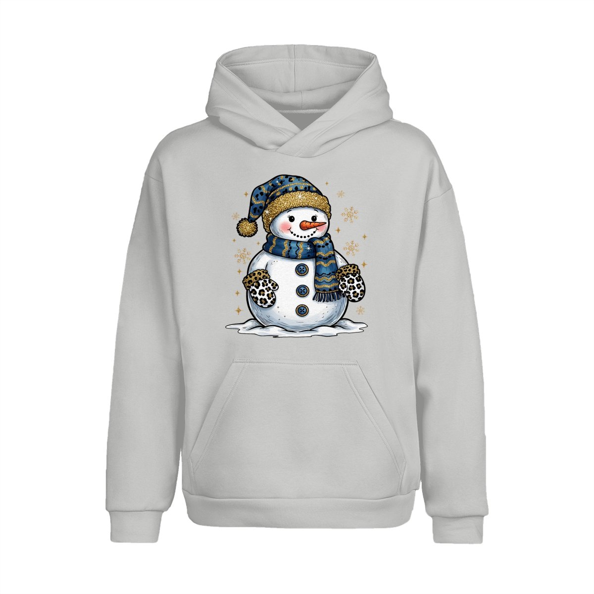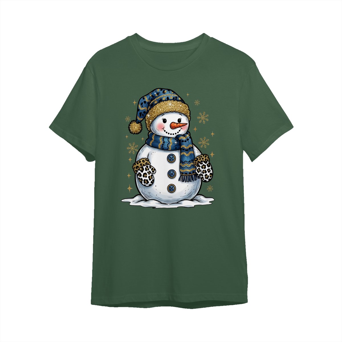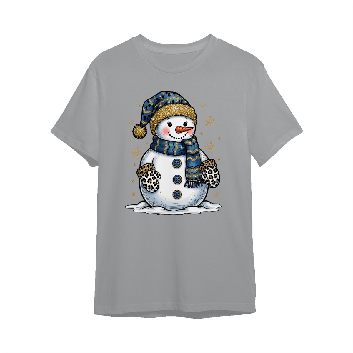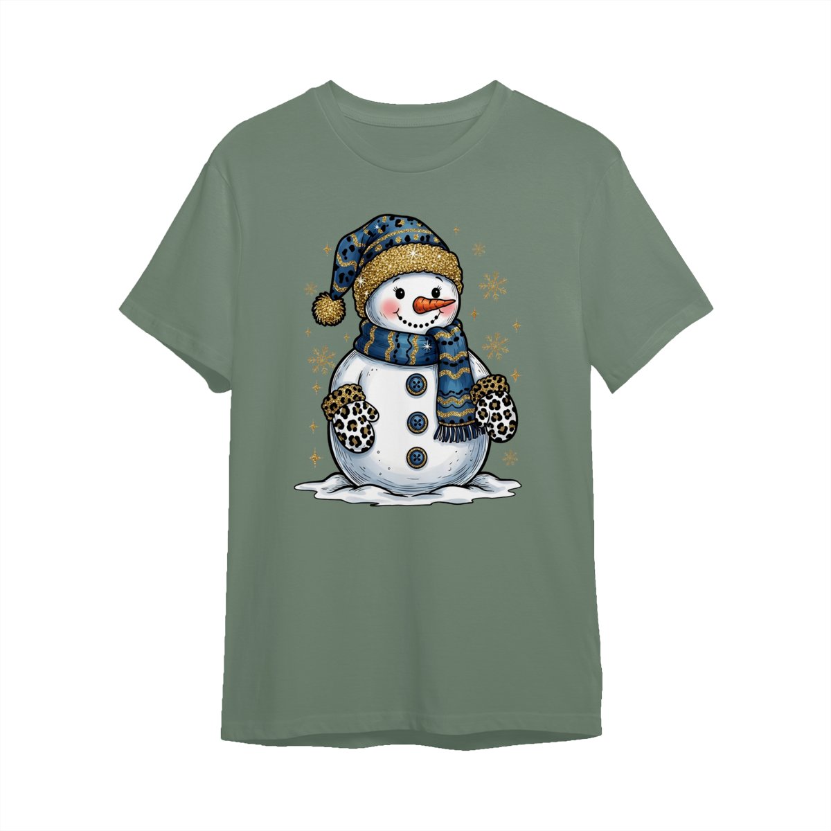 Blue Gold Leopard Snowman Sweat Shirt, Glitter Winter Christmas Snowman Sweatshirt, Cute Trendy Holiday Snowman Tee, Xmas Tee