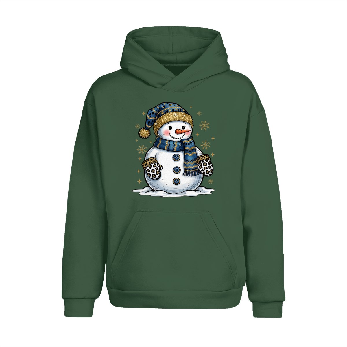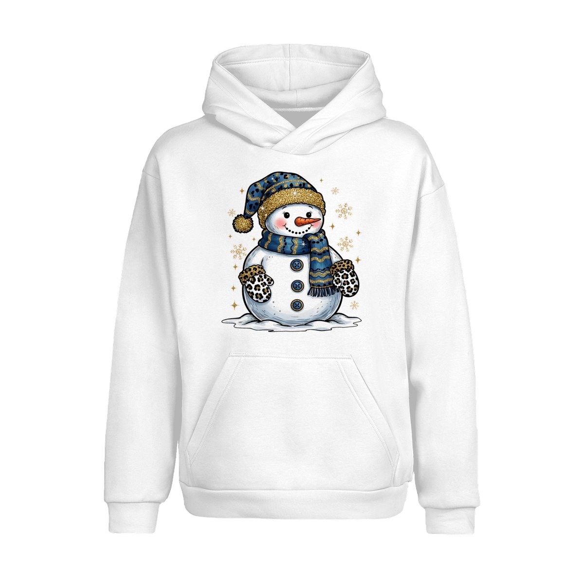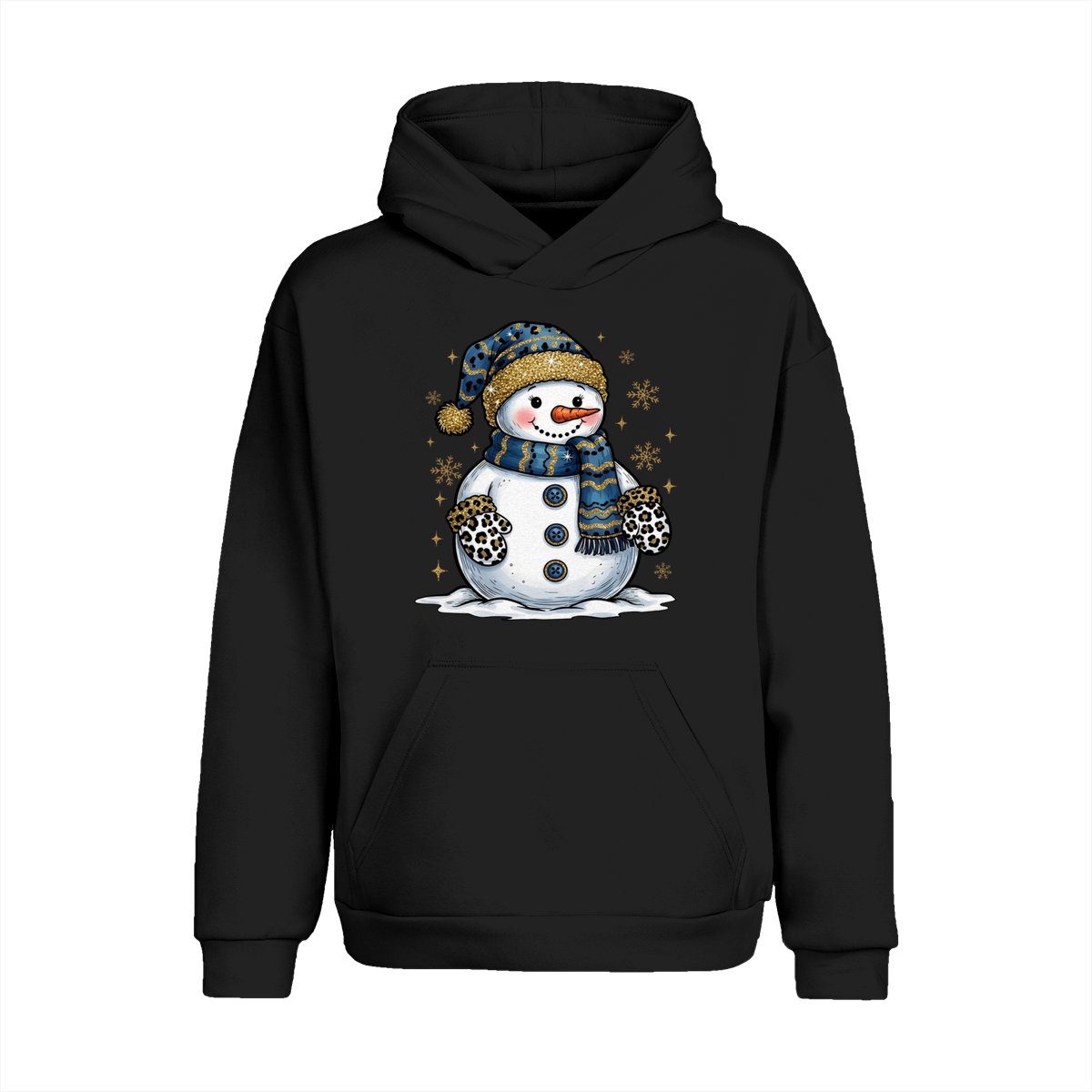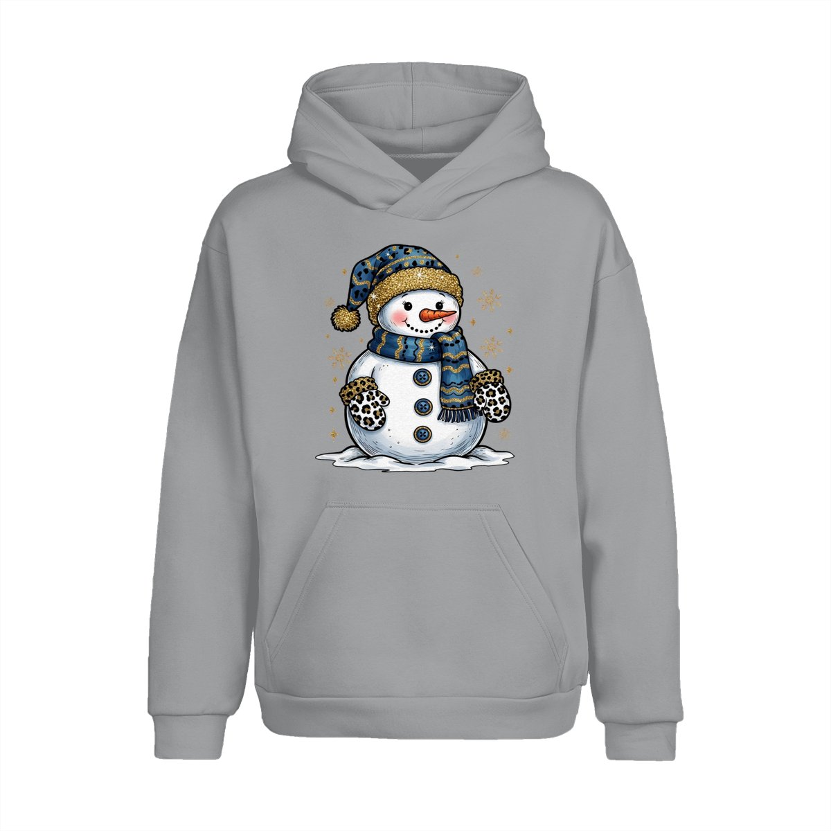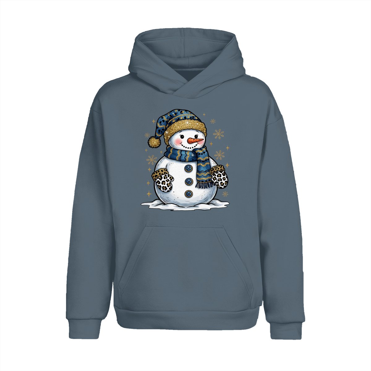 Blue Gold Leopard Snowman Sweat Shirt, Glitter Winter Christmas Snowman Sweatshirt, Cute Trendy Holiday Snowman Tee, Xmas Tee