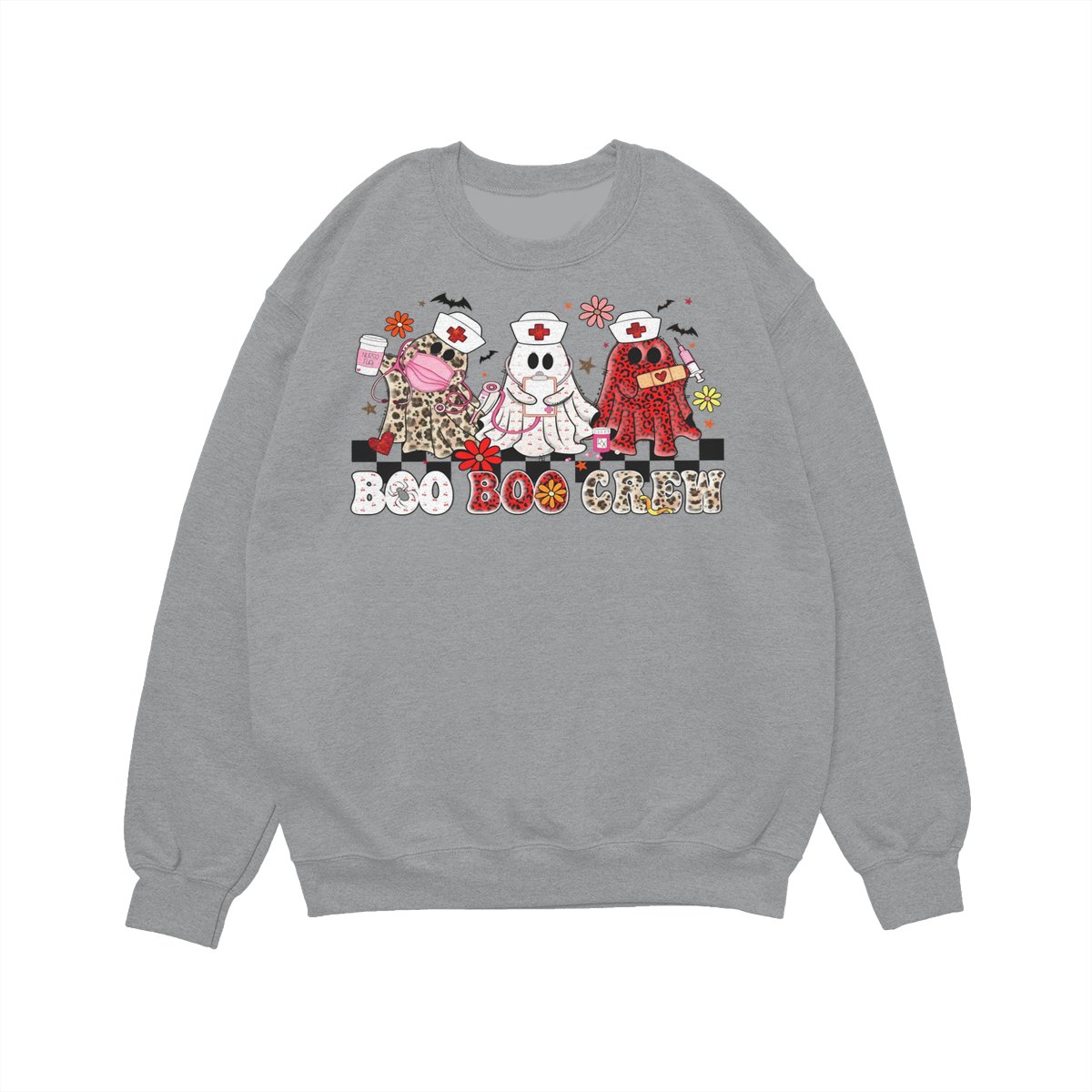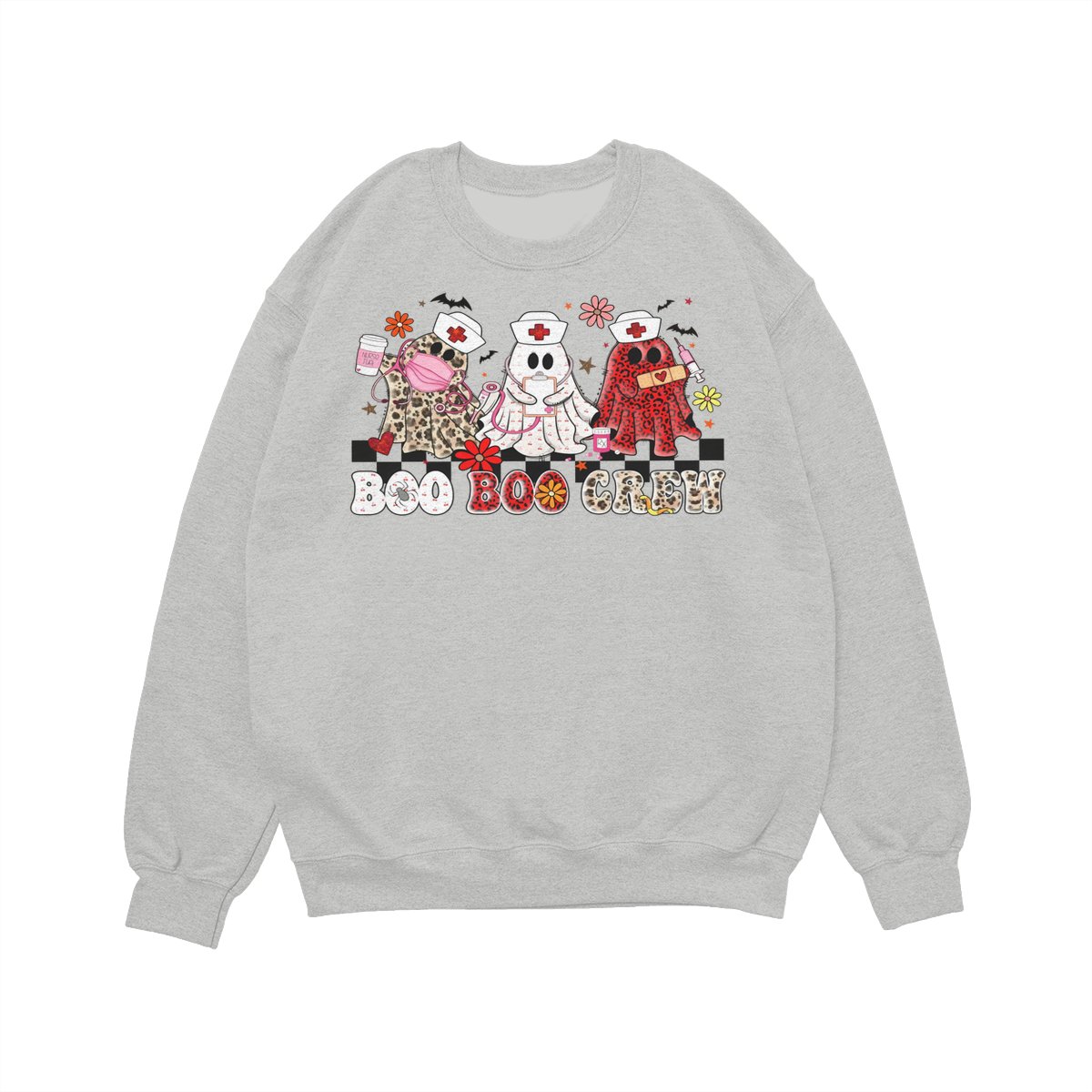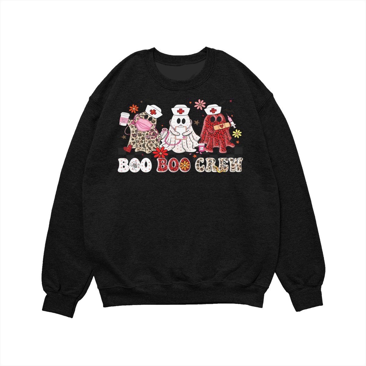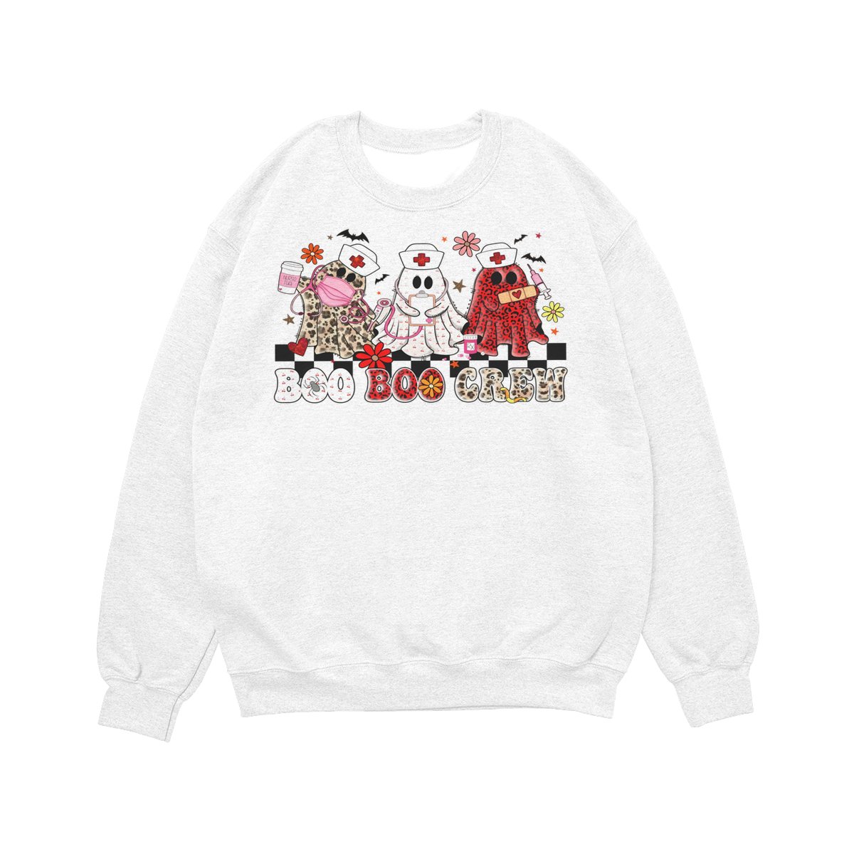 Boo Boo Crew Halloween Nurse Shirt, Leopard Ghost Nurse Sweatshirt, ER Nurse Hoodie, Preppy Nurse Halloween Gifts, Trendy Spooky Nursing Shirt For Her