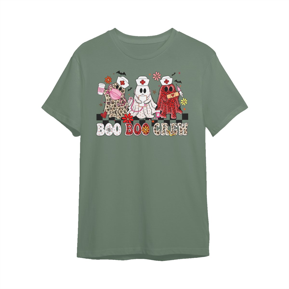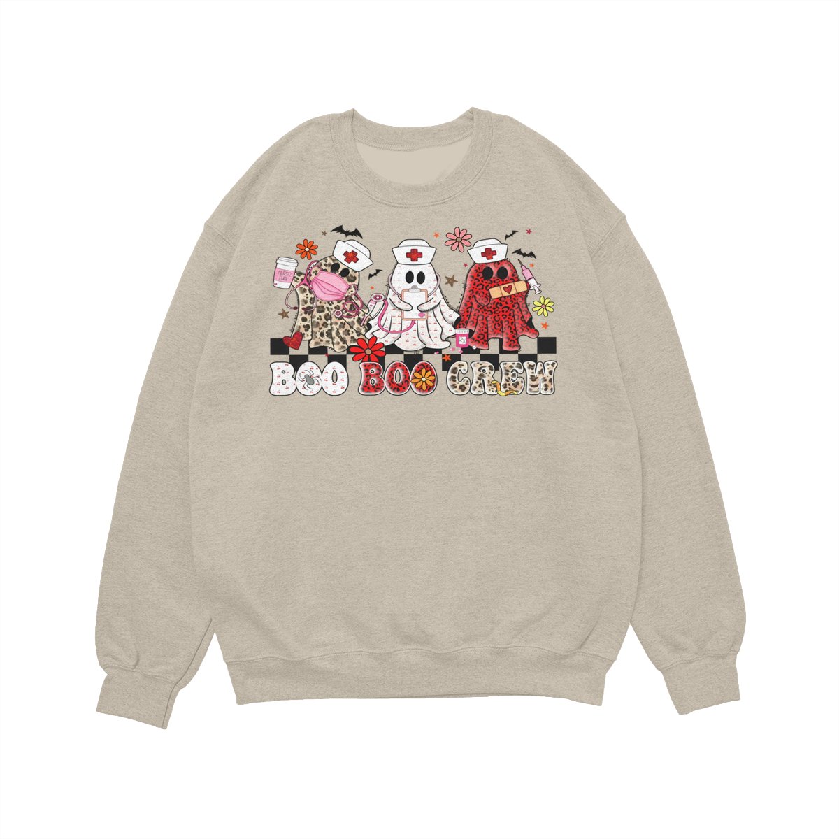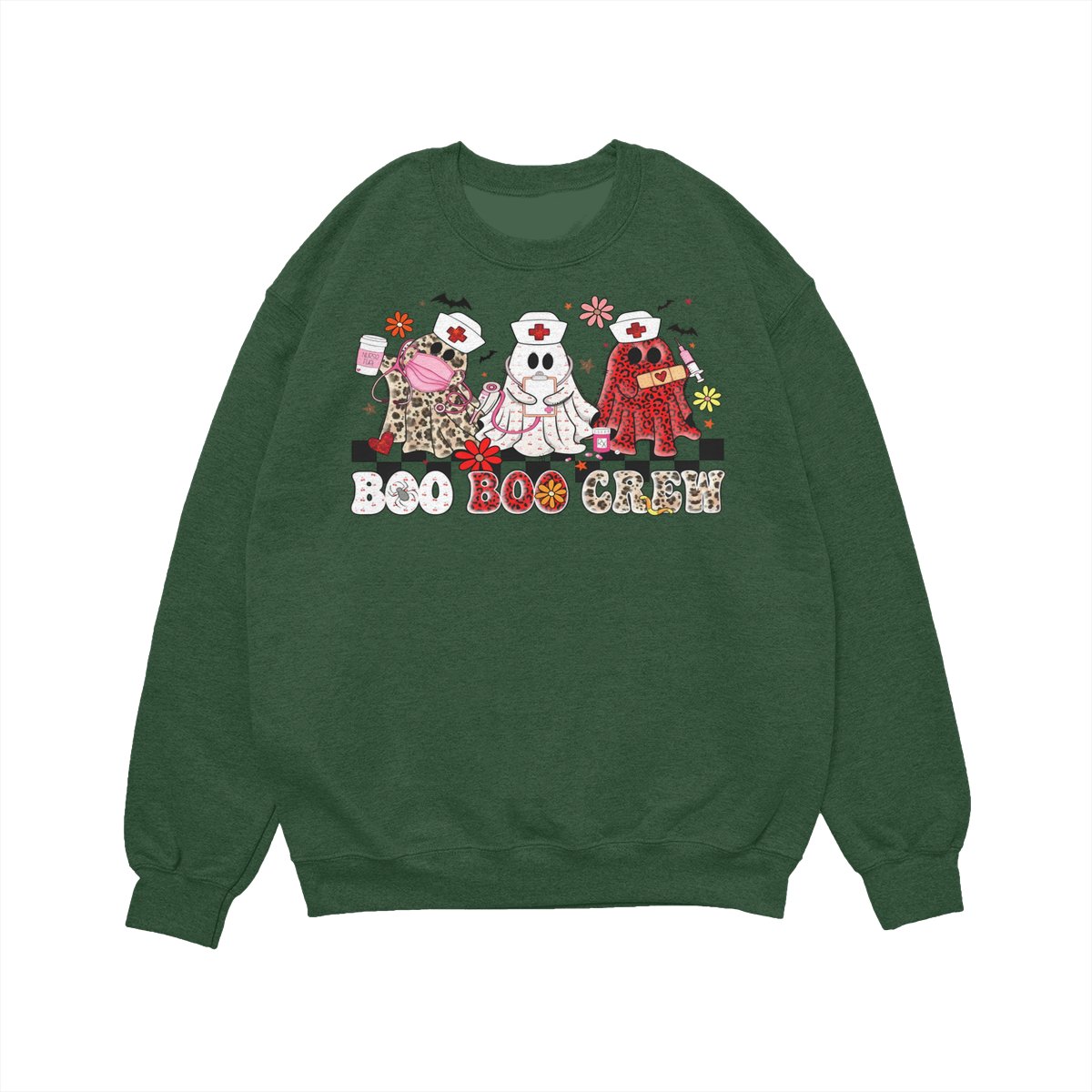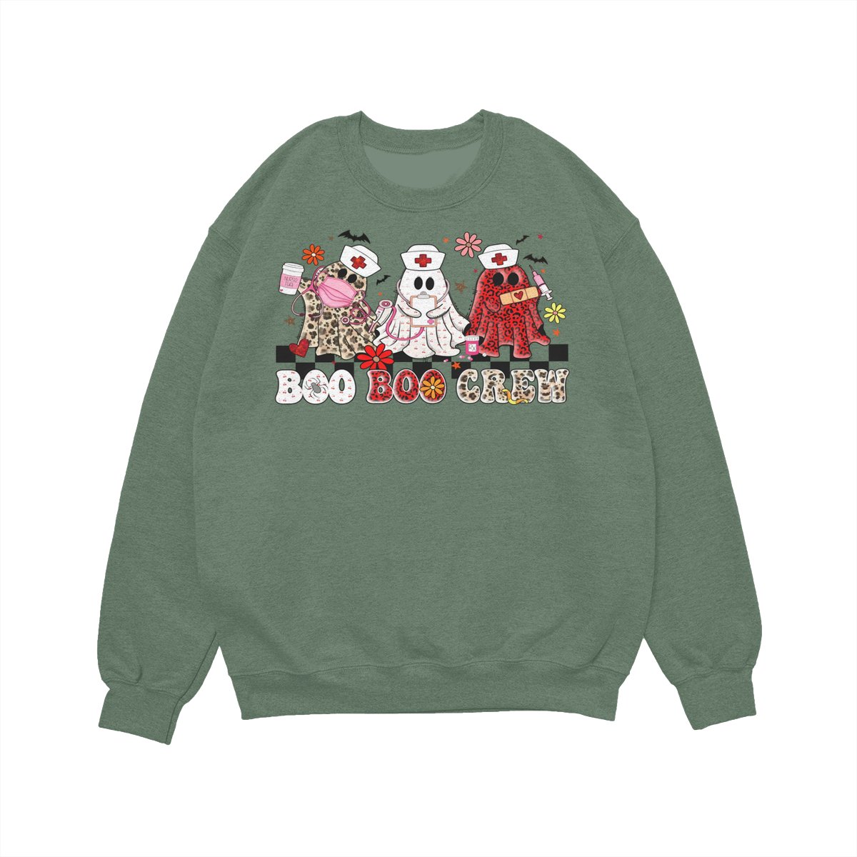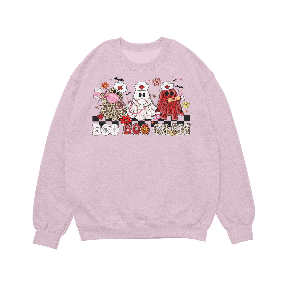 Boo Boo Crew Halloween Nurse Shirt, Leopard Ghost Nurse Sweatshirt, ER Nurse Hoodie, Preppy Nurse Halloween Gifts, Trendy Spooky Nursing Shirt For Her