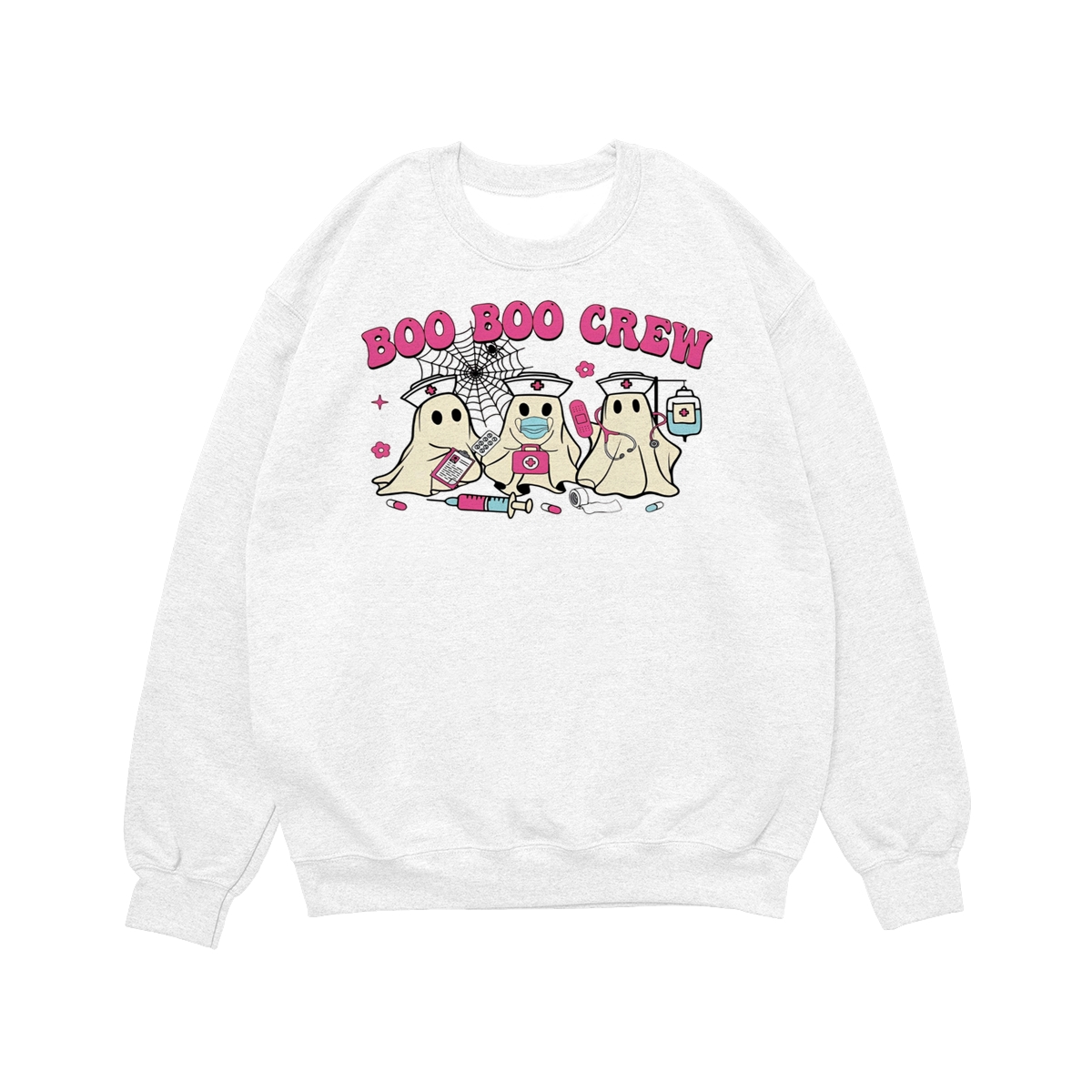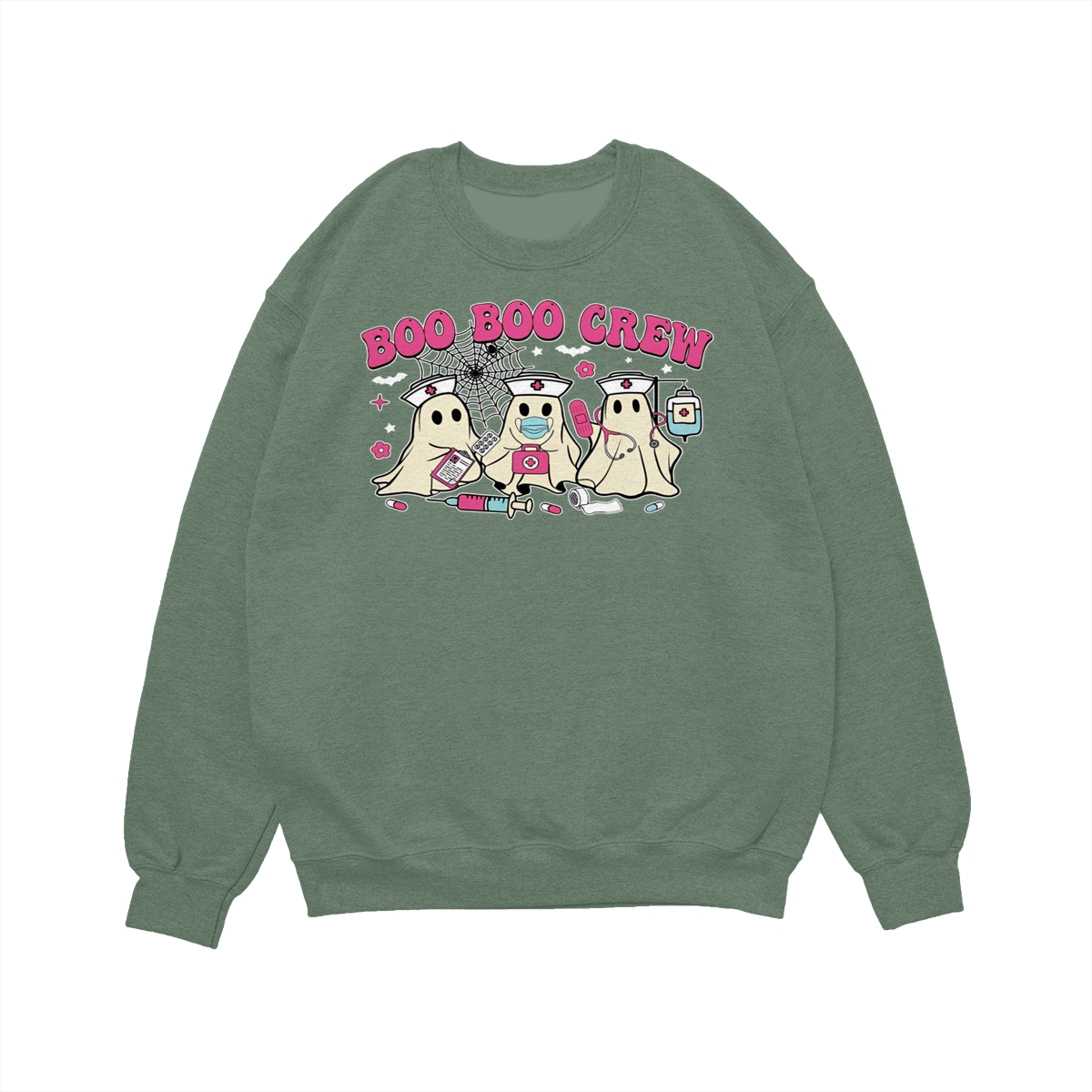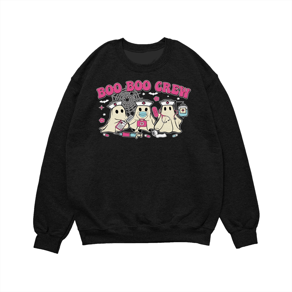 Boo Boo Crew Nurse Sweatshirt – Ghost nurses with medical tools and spider web , Fun spooky design for healthcare workers , Halloween crew style , Cozy fall pullover , Cute long sleeve sweatshirt , Gift for nurse friends Fit Crewneck