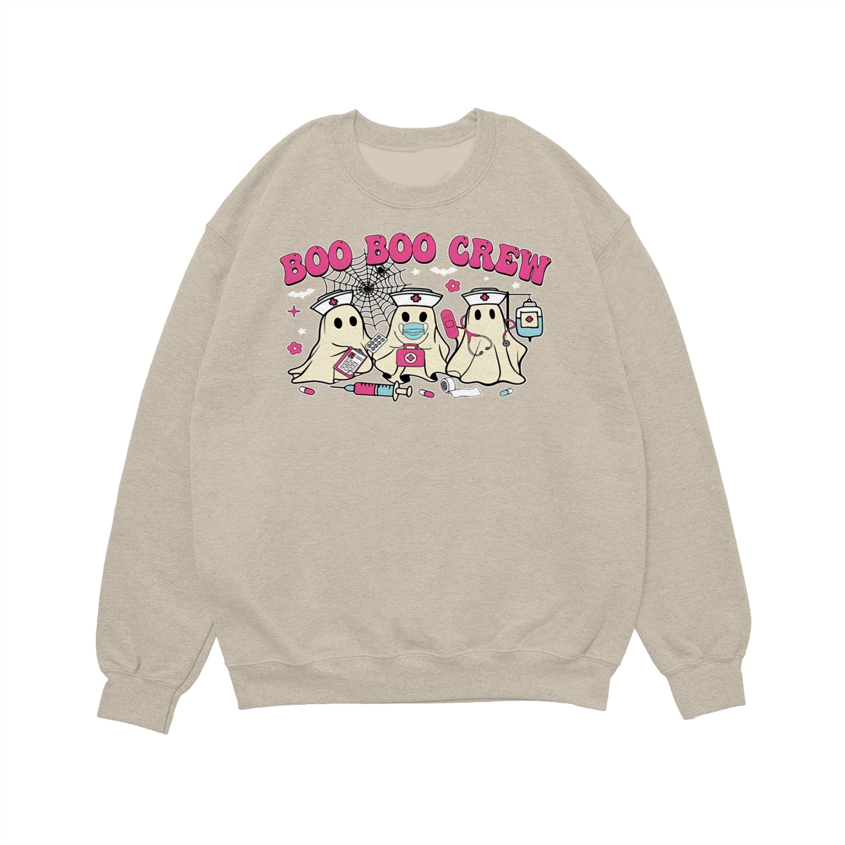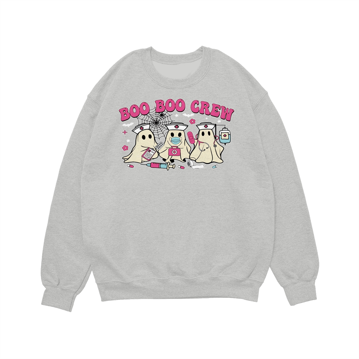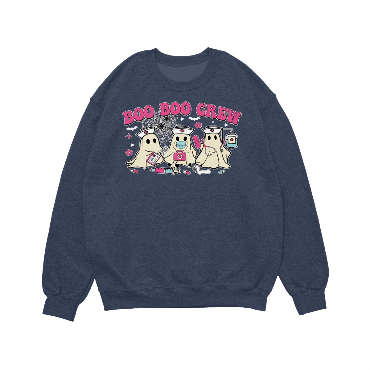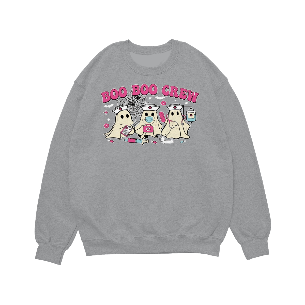 Boo Boo Crew Nurse Sweatshirt – Ghost nurses with medical tools and spider web , Fun spooky design for healthcare workers , Halloween crew style , Cozy fall pullover , Cute long sleeve sweatshirt , Gift for nurse friends Fit Crewneck