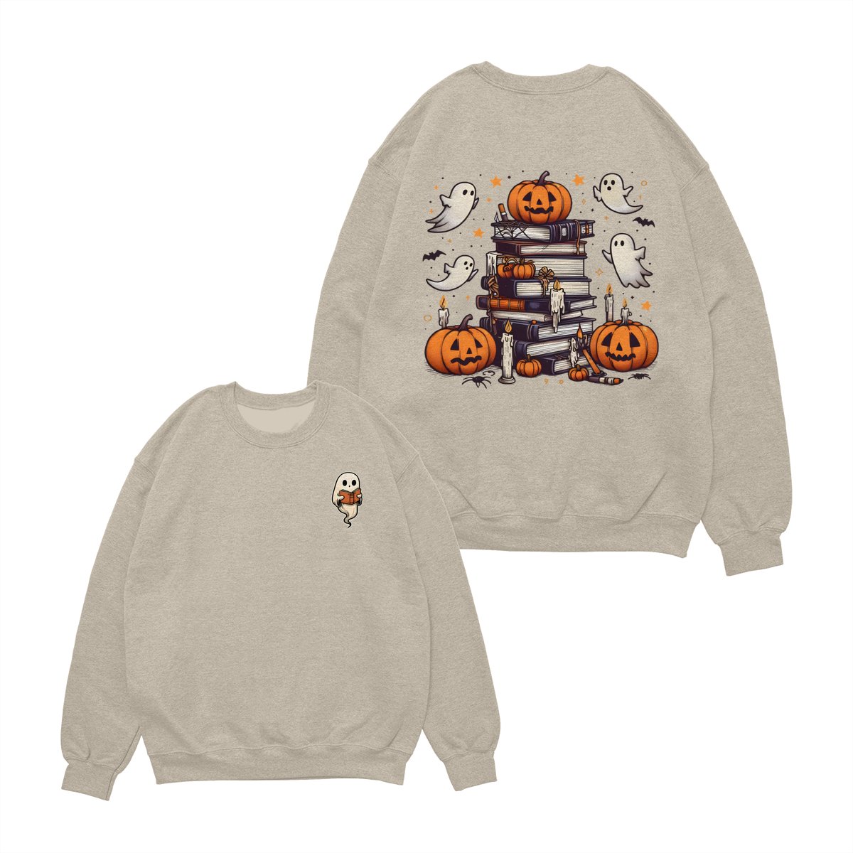 Book Ghost Shirt, Librarian Ghost Halloween Sweater, Halloween Teacher Sweatshirt, Ghost Halloween, Ghost Sweatshirt, Teacher Halloween Gift Shirt, Full Color, For Men, For Women, Classic Fashion, Tee Print