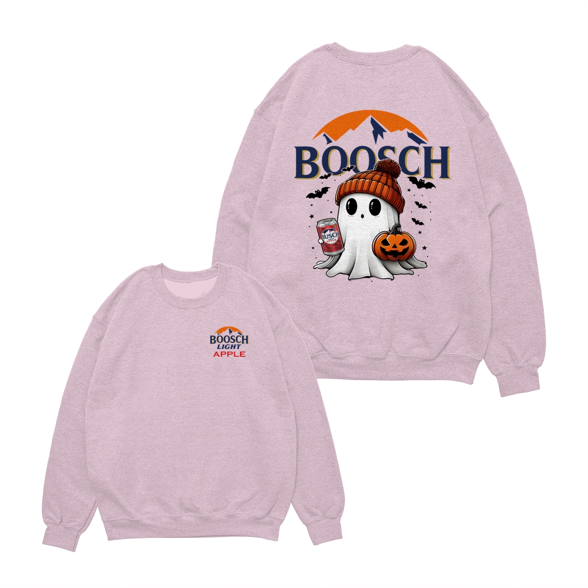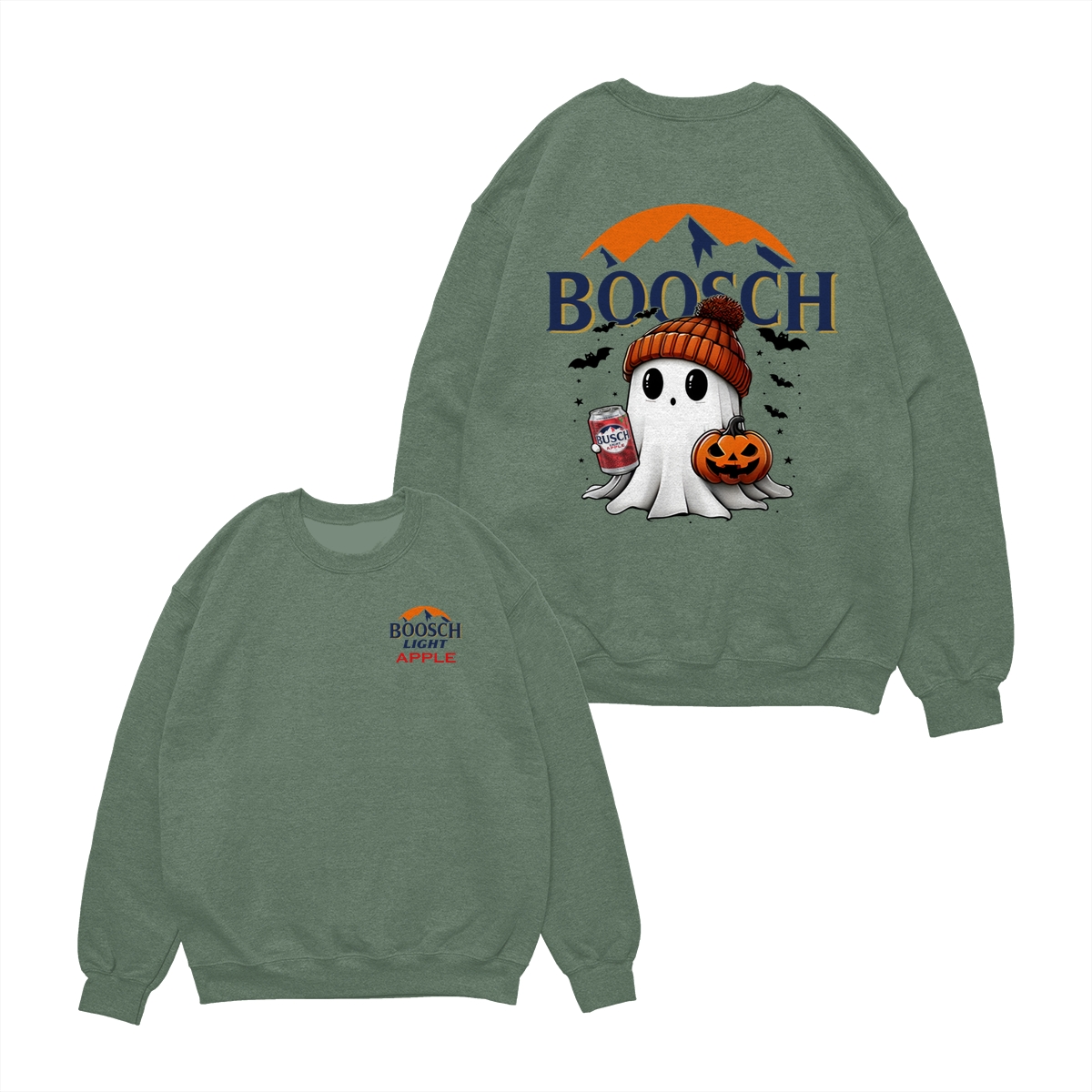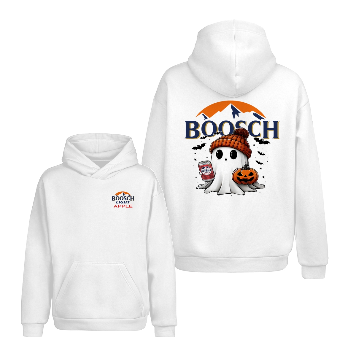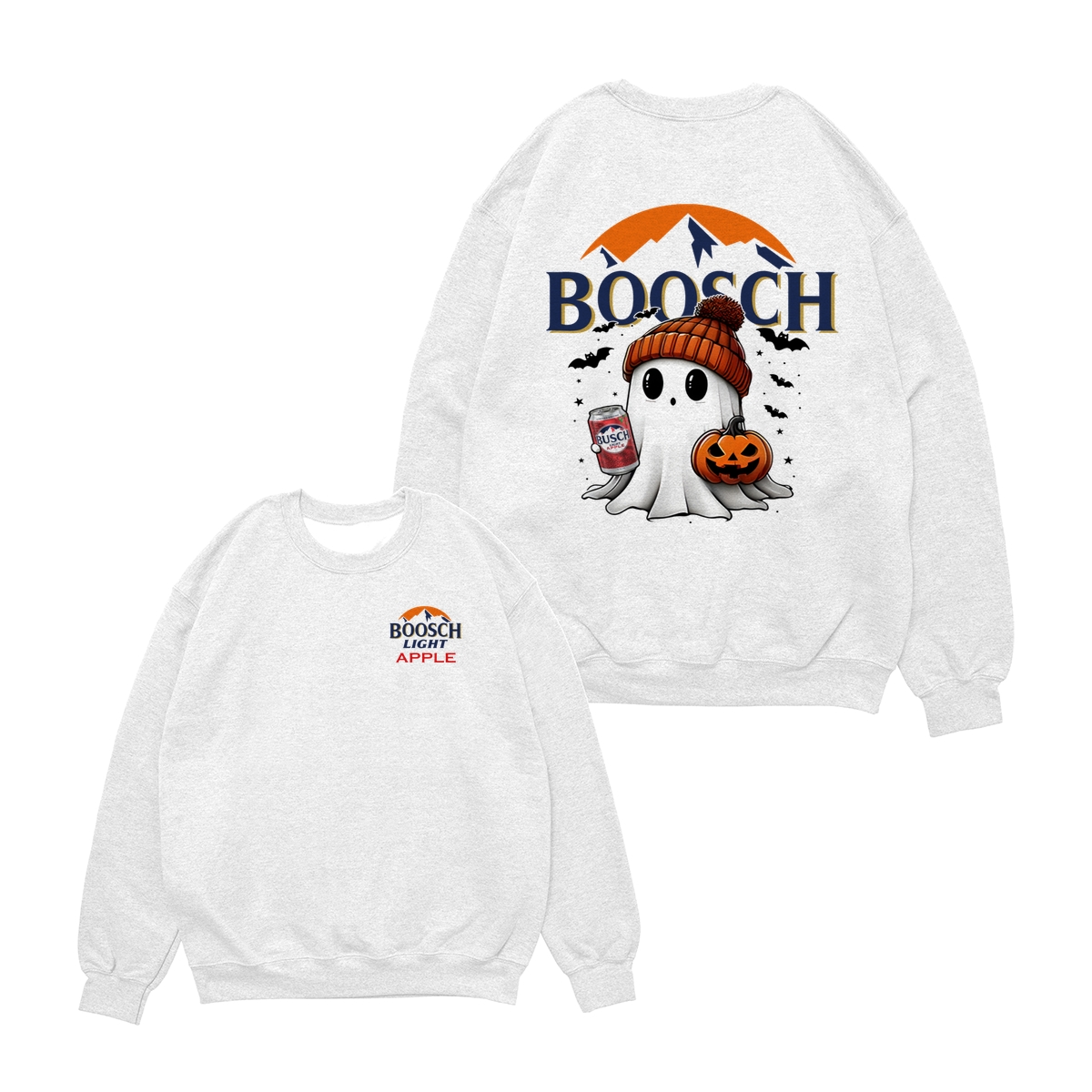 Boosch Light Apple Halloween T-Shirt, Cute Ghost with Pumpkin & Beer Can, Spooky Season 2-Sided Graphic Design Unisex Cotton Tee for Men & Women