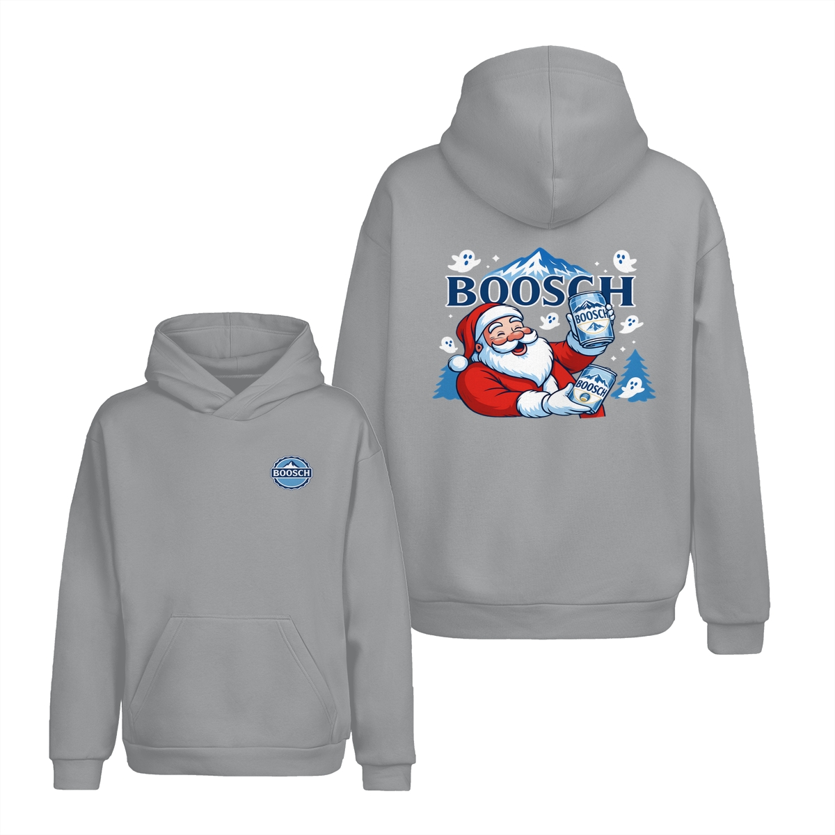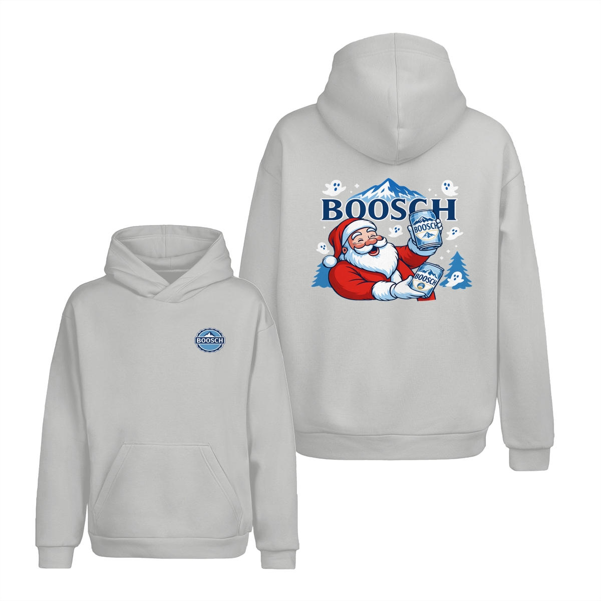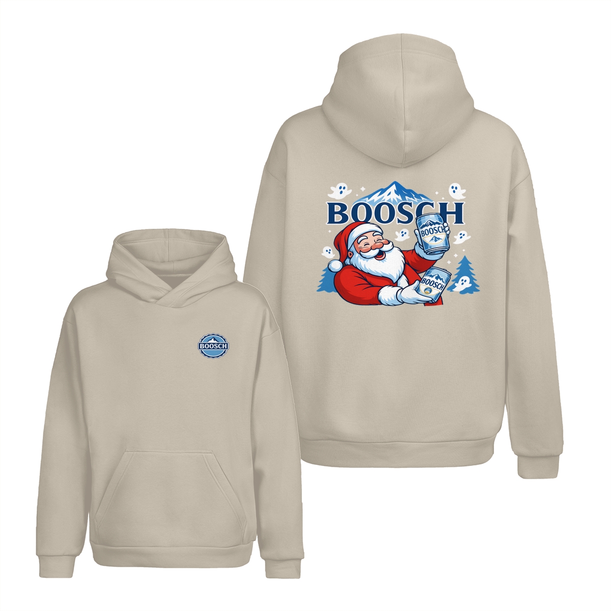 Boosch Santa Hoodie – Funny Christmas Beer Graphic Sweatshirt, Holiday Party Outfit, Cozy Winter Pullover, Viral TikTok Trend Unisex Streetwear, Christmas Outfit Menswear Dress