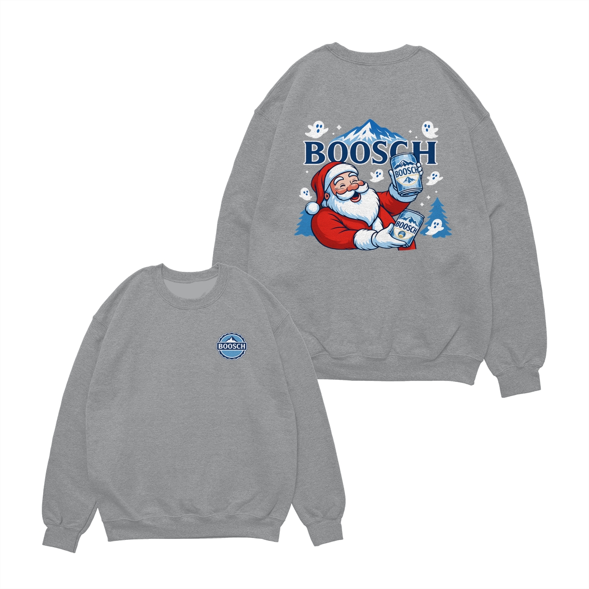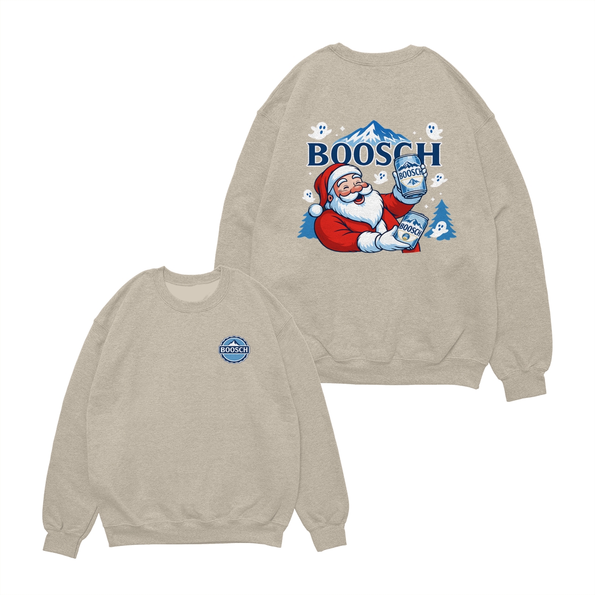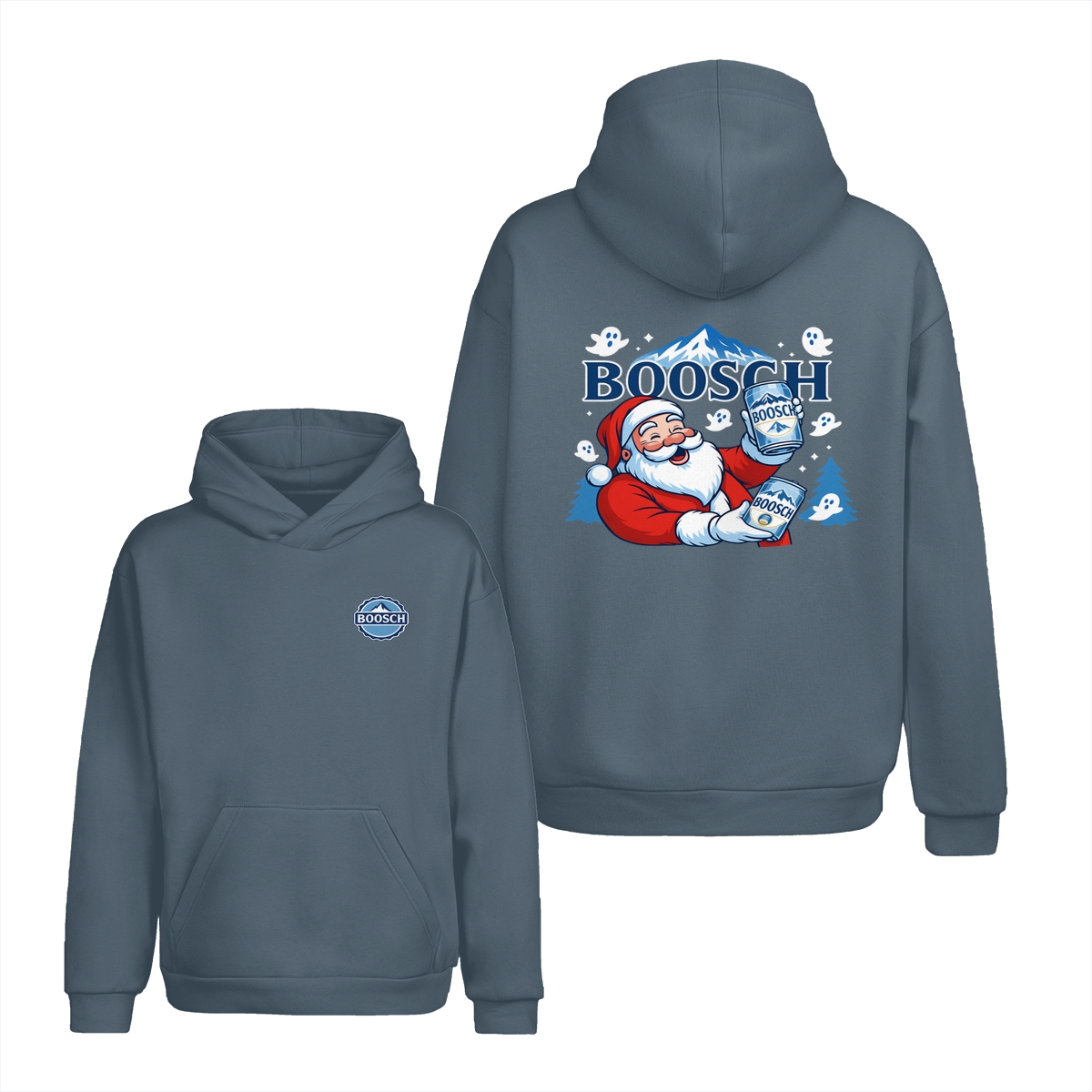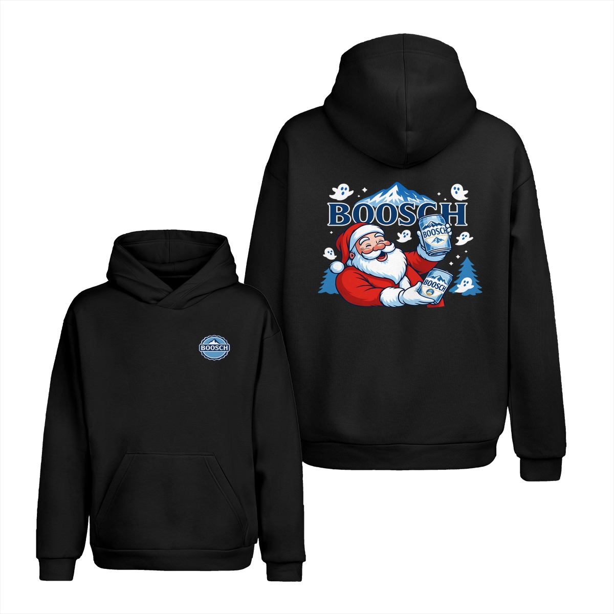 Boosch Santa Hoodie – Funny Christmas Beer Graphic Sweatshirt, Holiday Party Outfit, Cozy Winter Pullover, Viral TikTok Trend Unisex Streetwear, Christmas Outfit Menswear Dress