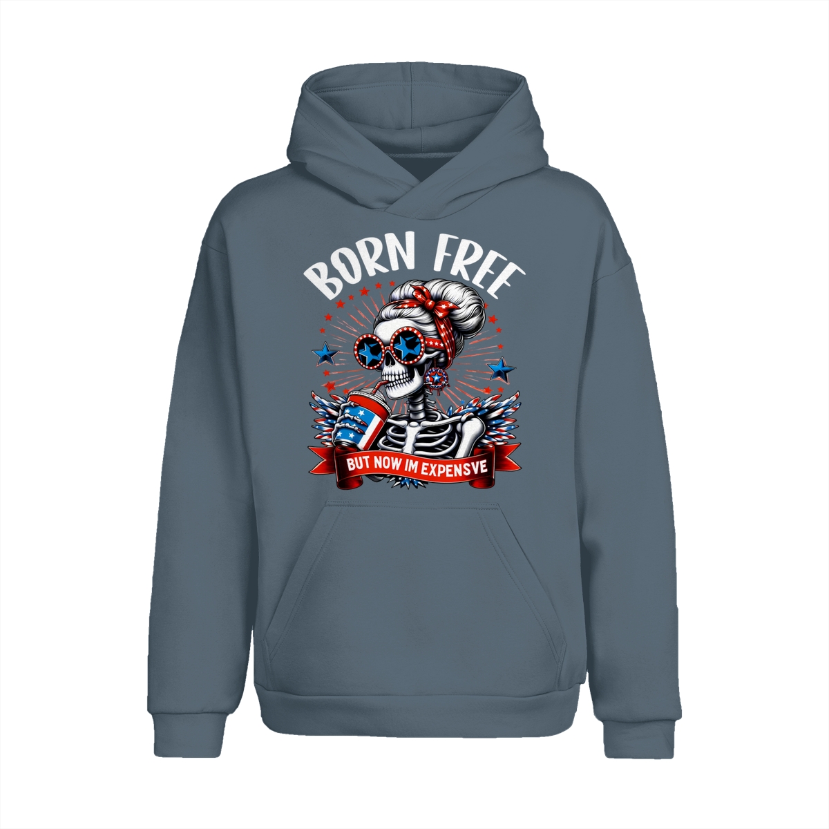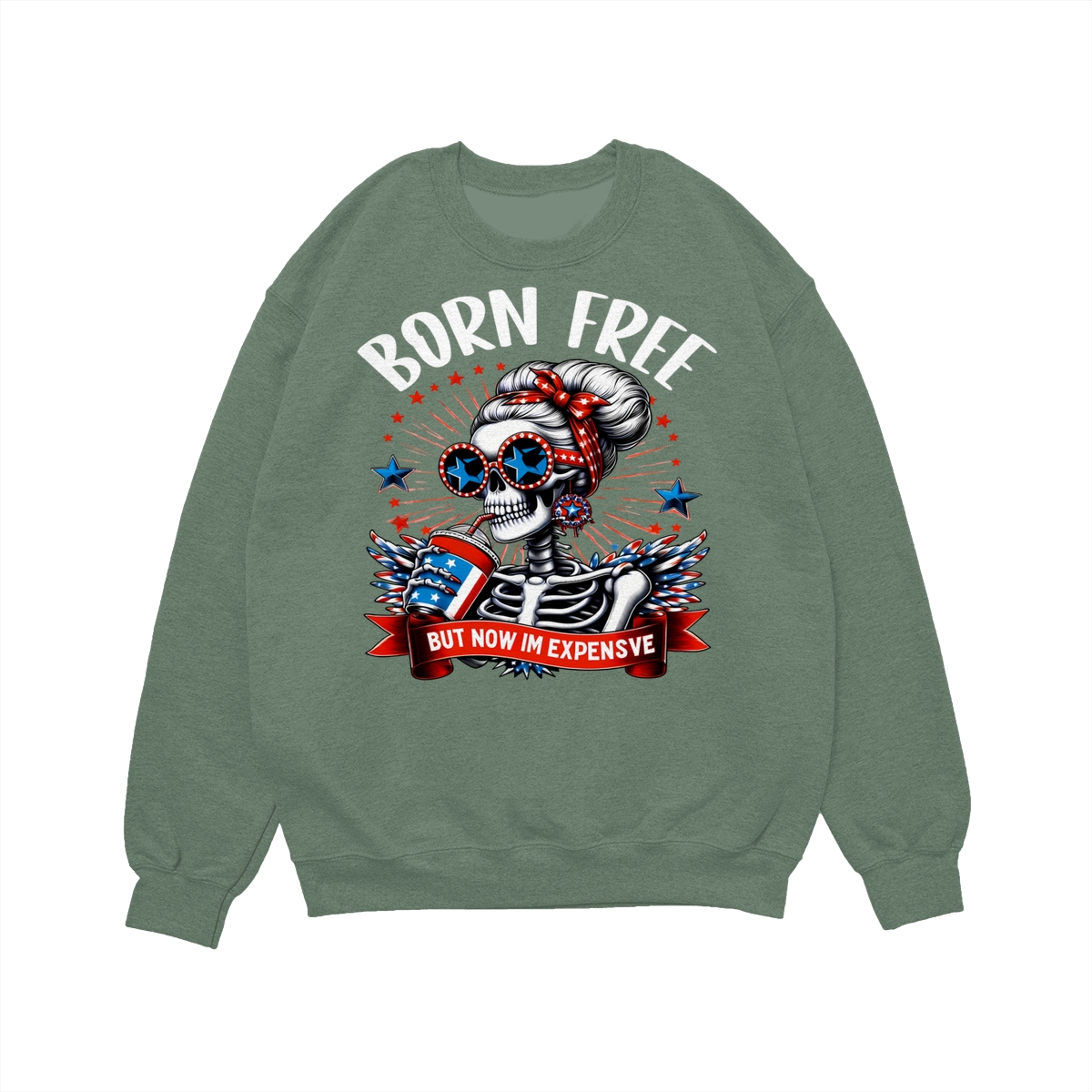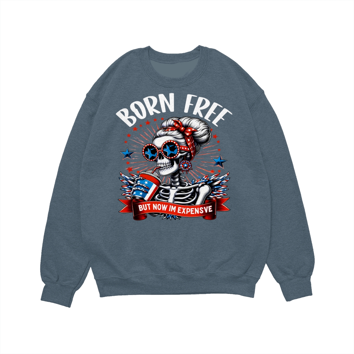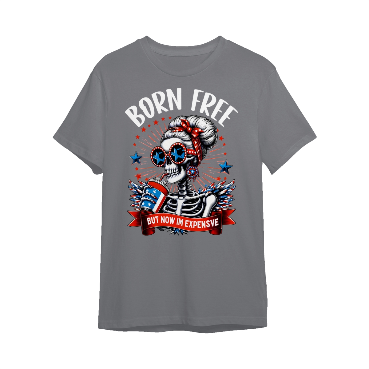 Born Free But Now I’m Expensive Shirt – Funny Skeleton Girl 4th of July Tee, Retro Independence Day Shirt, Patriotic USA Graphic T-Shirt