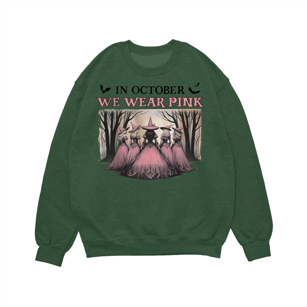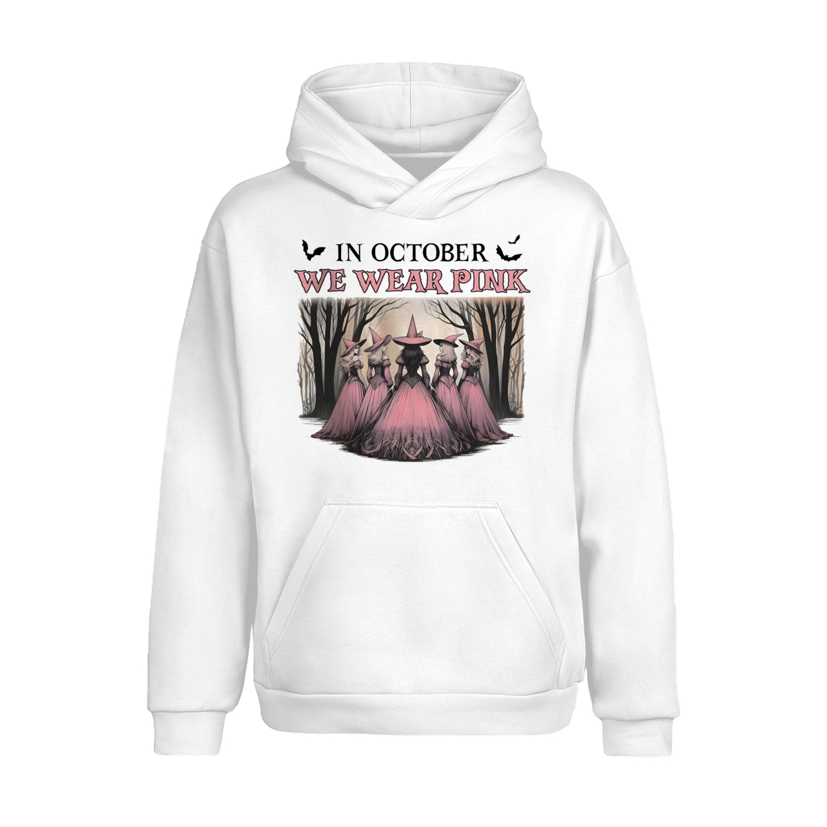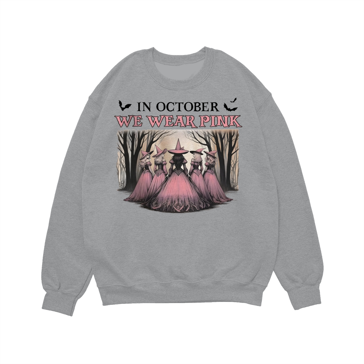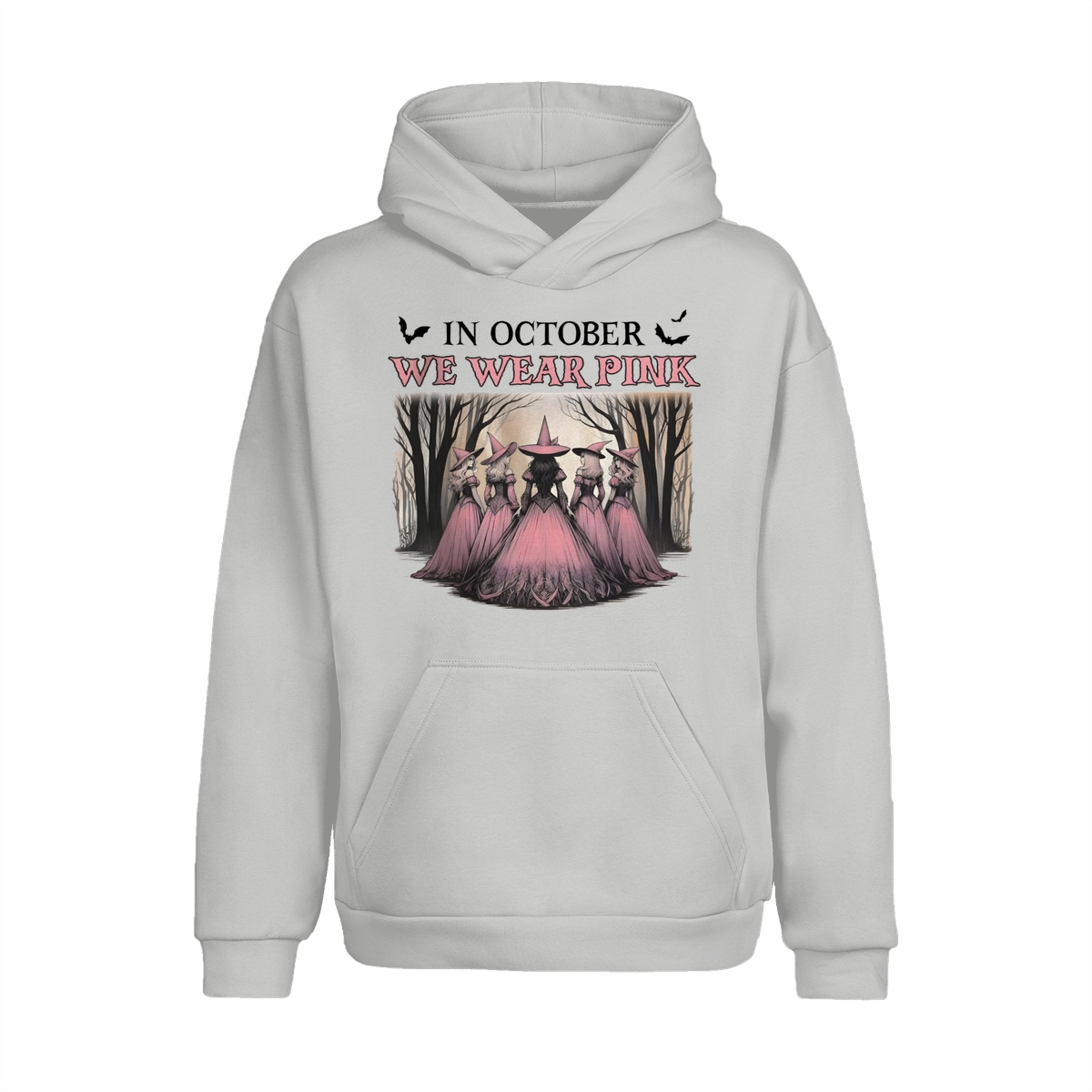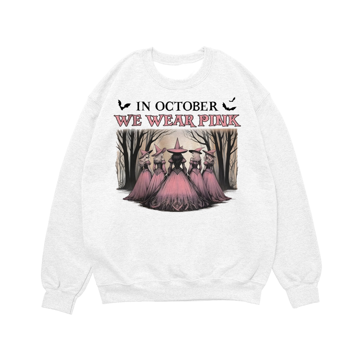 Breast Cancer Awareness Shirt, In October We Wear Pink Tee, Retro Ghost Halloween T-Shirt, Cute Witch Top, Pink Ribbon Support Gift
