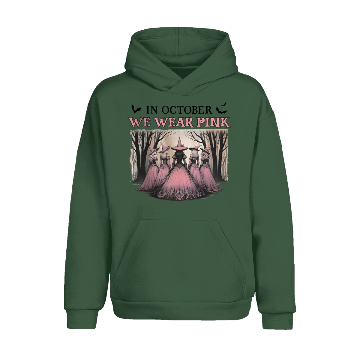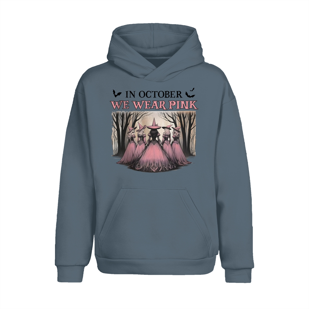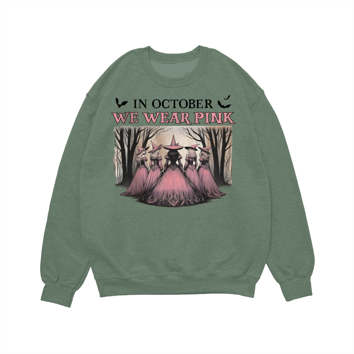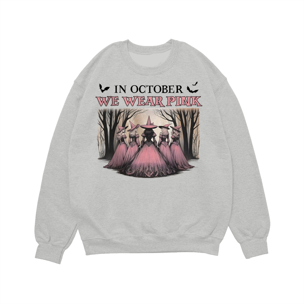 Breast Cancer Awareness Shirt, In October We Wear Pink Tee, Retro Ghost Halloween T-Shirt, Cute Witch Top, Pink Ribbon Support Gift