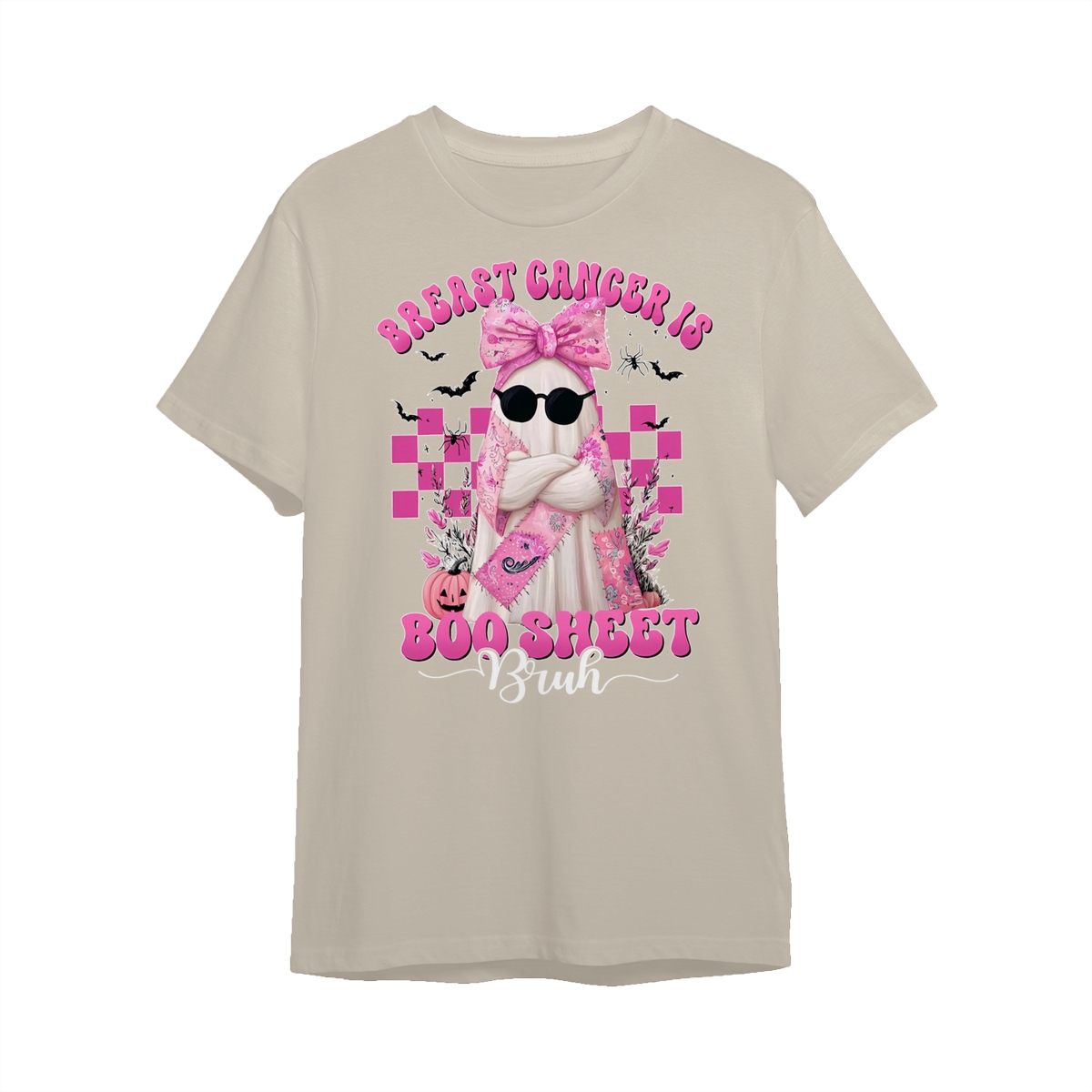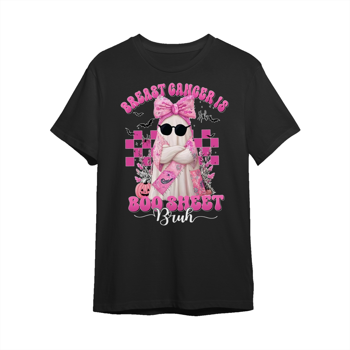 Breast Cancer is Boo Sheet Bruh T-Shirt, Coquette Breast Cancer Gift, Halloween Pink Ghost Sweat, In October We Wear Pink Shirt, Preppy Pink Ribbon Hoodie