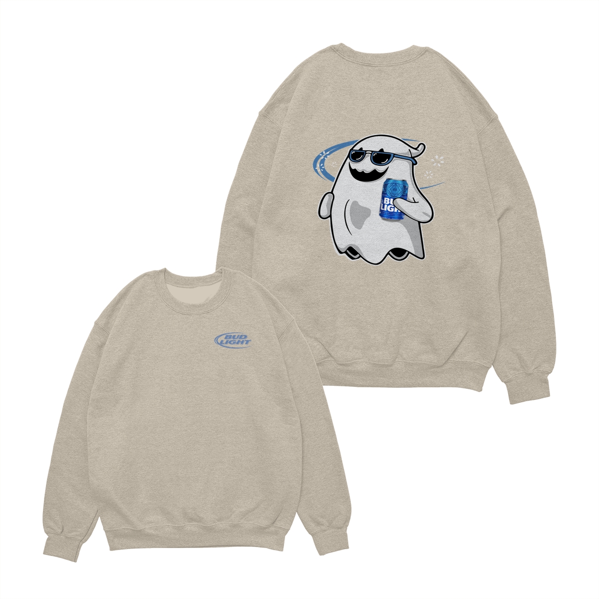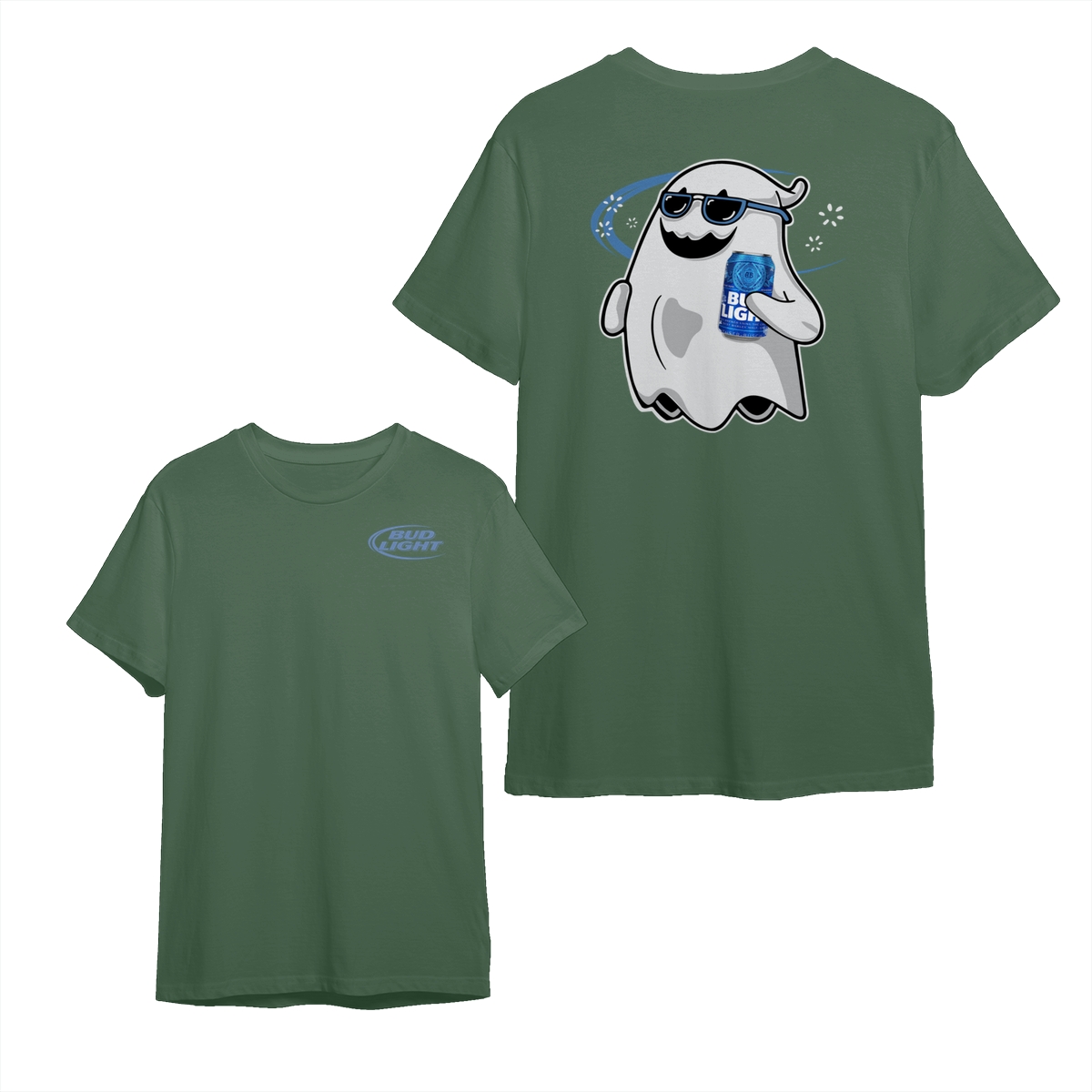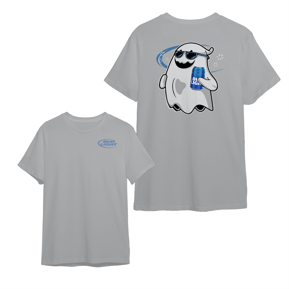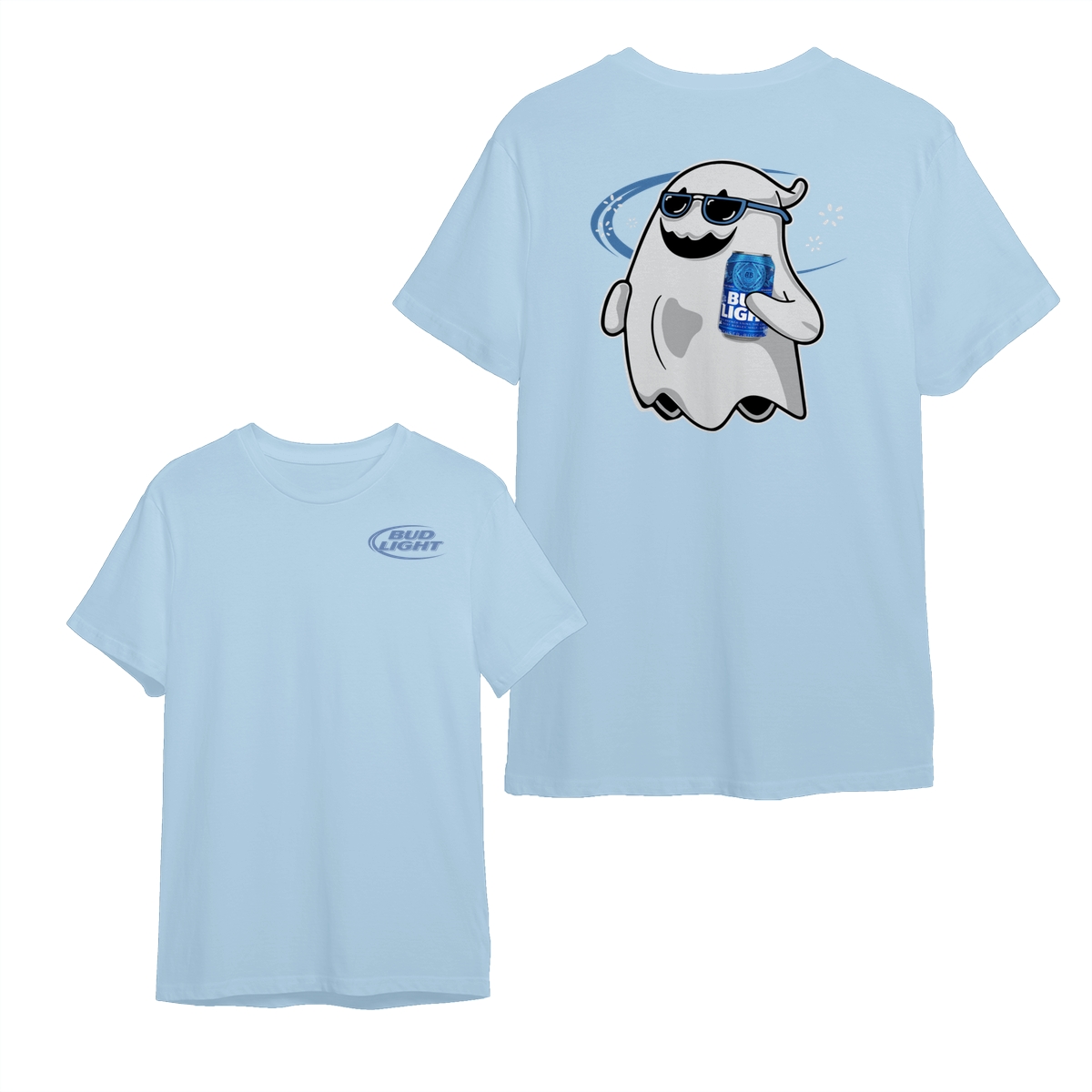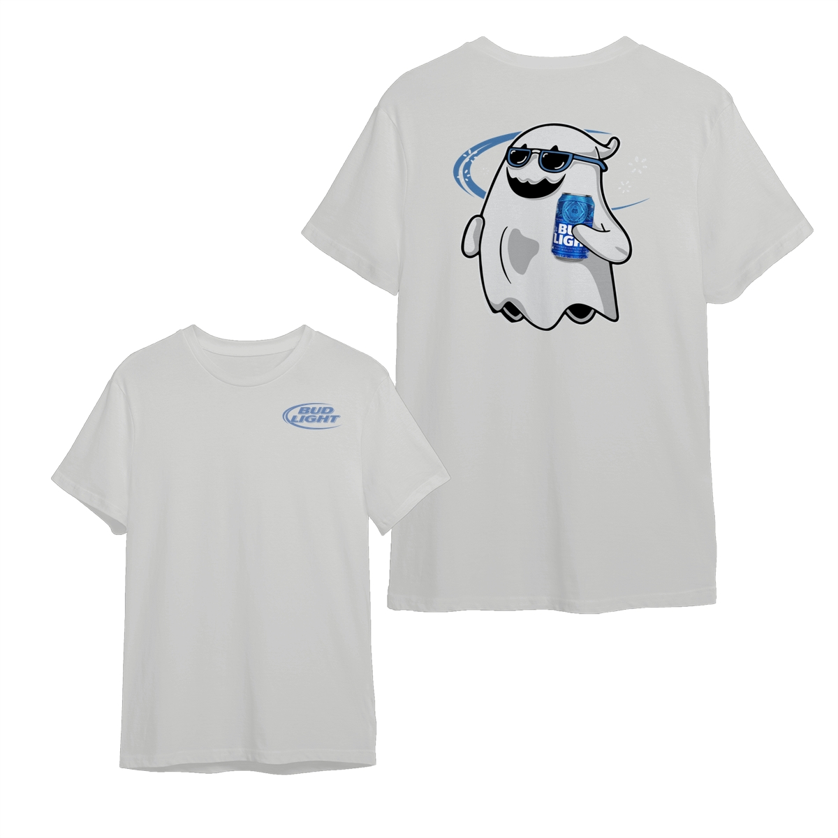 Bud Light Ghost Halloween 2 Sided Shirt, Unisex Cotton Crewneck Tee, Casual Style for Men and Women, Spooky Season Tee